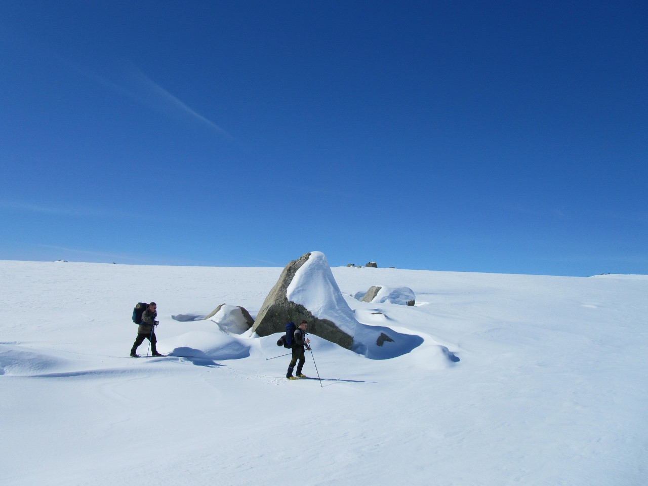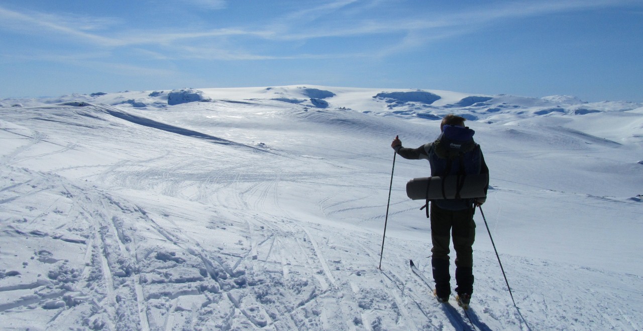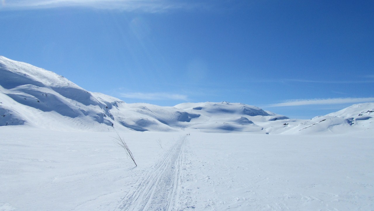 Langbein Rise Skrevet 13. april 2010 Skrevet 13. april 2010 Med solfylte værmeldinger og turglade venner tok jeg toget til Finse for å få snø under skia. Det er alltid trivelig å ta toget og det er plass for å brette ut kartet for planlegging over en øl. Fremme på Finsehytta var det mange andre solhungrige fjellturister. 60 personer måtte ligge på madrass, men det la så visst ikke noen demper på stemningen.Lørdag Morgensola tittet inn over Finse og vimpelen hang rett ned. Selv om temperaturen hadde krøpet ned i -13 °C var det godt å komme ut. Vi startet vestover mot Fagernut. Føret slet hardt på smurningen, så det ble lagt på klister og voks på skia med gjevne mellomrom. Videre fra Fagernut gikk vi inn Larsdalen. Sola varmet etter hvert godt, så mye drikke og lettelser i tøyet ble påkrevet. Når vi kom inn i Såtadalen fant vi en fin solhelling som lunsjplass. Etter lunsj satte vi kursen østover forbi Såta og videre mot Geiterygghytta. Snøen bløtere og klabbene hissigere. Dette krevde diverse omsmøringer av skia igjen for å finne en brukbar smøremiks. Det meste av dagen gikk vi nesten uten å treffe folk. Vel fremme ble en flott dag toppet med en fortreffelig reinsdyrsteik med reinsdyrkjøttkaker.Søndag Det var fortsatt fint vær søndag morgen og planen var å gå gjennom Kyrkjedøra mot Finse. Dagen ble så fin at jeg nesten fikk tårer i øynene og huden fikk en hissig rødfarge av solbrenthet. Det var relativt folksomt i kvistaløypa og alle vi traff hadde det samme solfylte fjellgliset. Vi fant en lun lunsjplass i Kyrkjedøra og koste oss. Man kan bli religiøs av mindre. Ettersom det var lenge til toget skulle gå tok vi en sving oppom Kyrkjedørsnuten også. Det er godt å komme opp av dalene og få litt perspektiv på fjellene. Nedkjøringen til Finse var deilig og det gjorde godt å få litt fartsvind som kjølte ned solbrente og overopphetede kropper. Det ble akkurat tid til øl, mat og dusj før toget gikk ned til byen og pollenslippet. Vis rapporten i Turkartet Vis større kart