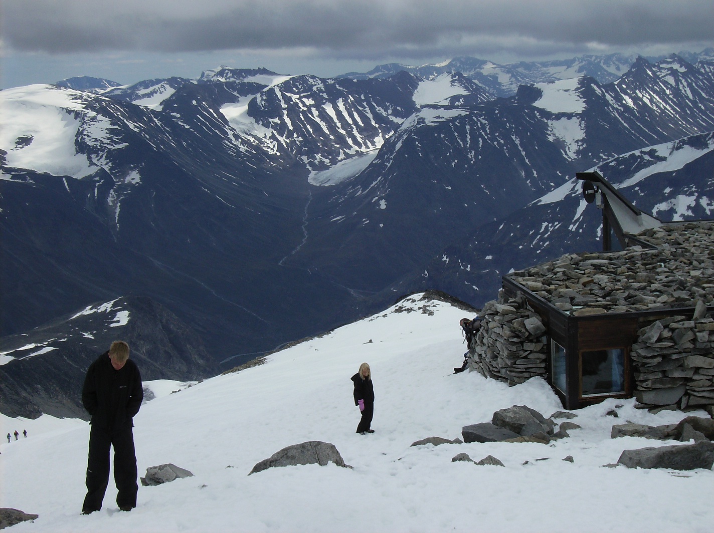 jbl Skrevet 16. juli 2010 Skrevet 16. juli 2010 Jeg har nu syv år på stribe tilbragt en uge af min sommerferie med familien i Jotunheimen. I år var jeg af sted med mine børn, Cecilie på 21, Sebastian på 16 og Amanda på 10, mens min kone blev hjemme med knæproblemer sammen med sin søn. Cecilie havde Galdhøpiggen som hovedattraktion, efter at jeg har haft slæbt hende med på en stor håndfuld mindre befolkede 2000-meter toppe, så vi måtte ramme Spiterstulen i løbet af ugen. Vejrudsigten i starten af vort ophold var dog ikke alt for lovende, så vi valgte at starte med nogle hytte-til-hytte-ture. Vi tog Valdresekspressen til Gjendesheim, herfra båden ind til Gjendebu, hvor vi gik første dagsetape til Leirvassbu mandag d. 5. juli. Det regnede det meste af dagen, men skyerne lå forbavsende højt, og vi fik derfor rigelig lejlighed til at studere de mange flotte tinder omkring Langvandet. En lille forhindring var elven ned fra Uradalen, som var langt kraftigere end for seks år siden, da jeg sidst gik turen. Først måtte jeg selv gå over med rygsækken for dernæst at returnere og hjælpe Amanda over. Vi fik alle våde sokker, men pyt. Tirsdag kunne jeg godt have tænkt mig en mindre toptur til Tverrbotntinderne lige over Leirvassbu. Det havde været en overkommelig tur også for Amanda. Men skyerne lå lavt, og vejrudsigten lovede ikke bedring, så vi besluttede at gå mod Spiterstulen. Fra sidst på formiddagen lettede skyerne dog, og faktisk fik vi turens bedste dag med høj solskin hele eftermiddagen. Ærgerligt vi ikke havde gået Tverrbotntinderne, men nu fik vi en fantastisk flot tur ned gennem Visdalen med udsigt til alle de store tinder. Efter oplevelsen med Uradøla dagen forinden frygtede vi en anelse at skulle krydse Visa-elven på sten. Det viste sig dog ganske problemfrit, selvom Amanda måtte have en smule hjælp. De to store kunne dog ikke dy sig og lavede kapløb over elven med det resultat, at Cecilie vred om på knæet. Vi kølede knæet i det kolde vand og forbandt det, og Cecilie klarede turen frem til Spiterstulen, men da knæet først fik ro, blev det stift, og Cecilie måtte blive på Spiterstulen resten af ferien. Galdhøpiggen fik hun ikke, så vi må såmænd nok tilbage næste år. Onsdag måtte Cecilie blive på Spiterstulen og pleje sit knæ. Amanda trængte til en fridag efter to lange dagsture, så også hun blev nede. Jeg benyttede så chancen til at invitere Sebastian med på Tverråtinden. Jeg har en (ikke ufravigelig) ambition om hvert år at få en ny 2000-meter top til min lille samling, og Store Tverråtind kunne være et flot bidrag til samlingen. Vi fulgte stien op mod Svellnosbræen til hvor den krydser elven. Herfra fandt vi selv ruten videre op mod Tverråbræen og videre langs nordsiden af denne op til Tverråbåndet. Indtil da havde vejret været fint, men nu, så tæt på målet, blæste det op. Vi nåede lige at få et glimt nordpå på den anden side af båndet mod imponerende Skarstind, da skyerne lagde sig tæt over fjeldene og sneen begyndte at vælte ned. Vi ville dog ikke give op efter den lange anmarch og begav os op ad stenskråningen mod Tverråryggen. Vi fandt solbriller frem, ikke for beskyttelse mod solen, men mod hagl og modsne. Oppe på topryggen blæste det fælt, og sigtbarheden var 50 meter. Vi klatrede frem lidt nede på den sikre sydside, da vi pludselig fandt toppunktet lige over os med en lille varde. Men var det nu toppen :) : Vi kunne ikke rigtigt orientere os, men efter at have læst andre turbeskrivelser får jeg den mistanke, at vi befandt os på den 2288 meter høje vesttop og ikke hovedtoppen på 2309 meter. Jeg har vedlagt foto, og eksperter i sagen må gerne kommentere, også om det er negativt. Efter et kort ophold på "toppen" begav vi os nedad. Sebastian følte sig utryg og kunne absolut ikke lide forholdene på topryggen, så, om vi var på hovedtoppen eller ej, var det eneste rette beslutning. Vi fandt en snefyldt rende lige under toppen, og i denne kurede vi 3-400 højdemeter ned i susende fart til stor morskab, og Sebastian kunne atter finde de store smil frem. Dernæst returnerede vi samme vej, vi var kommet op. Torsdag tog jeg Sebastian og Amanda med på guidet tur til Eventyrisen på Svellnosbræen, mens Cecilie stadig plejede sit knæ. Eventyrisen er altid et hit for børnene, og i år var ingen undtagelse. Amanda, som var på isen for første gang, ville gerne gå turen igen om fredagen, og hun havde et fint motiv, da vi havde glemt nye batterier til kameraet og derfor ikke kunne tage billeder på Eventyrisen. Fredag, sidste dag i denne omgang inden busturen hjem til Danmark via Lom og Oslo, blev dog dedikeret Galdhøpiggen. Cecilie gik med fra morgenstunden, men allerede efter 300 højdemeter kunne hun mærke, at knæet ikke kunne holde, og hun måtte returnere. Vi andre tre fortsatte i fint vejr op til Svellnosa, som jeg altid har gået udenom på mine tidligere ture til Piggen, og således fik jeg på sin vis en ny 2000-meter top til samlingen, hvis ikke Tverråtinden kan godkendes. Videre til Piggen over Keilhaus gik det problemfrit, og efter 4½ timer på vej stod vi på Nordeuropas tag og kunne se ned på alle de andre flotte tinder. Fem minutter efter vor ankomst til toppen drev skyer ind fra vest, og vi søgte ly i den lille stenhytte. Efter at have nydt en karton juice var skyerne drevet bort, og vi kunne studere udsigten nok engang, inden vi atter begav os ned til Spiterstulen og Cecilie. Vis rapporten i Turkartet Vis større kart