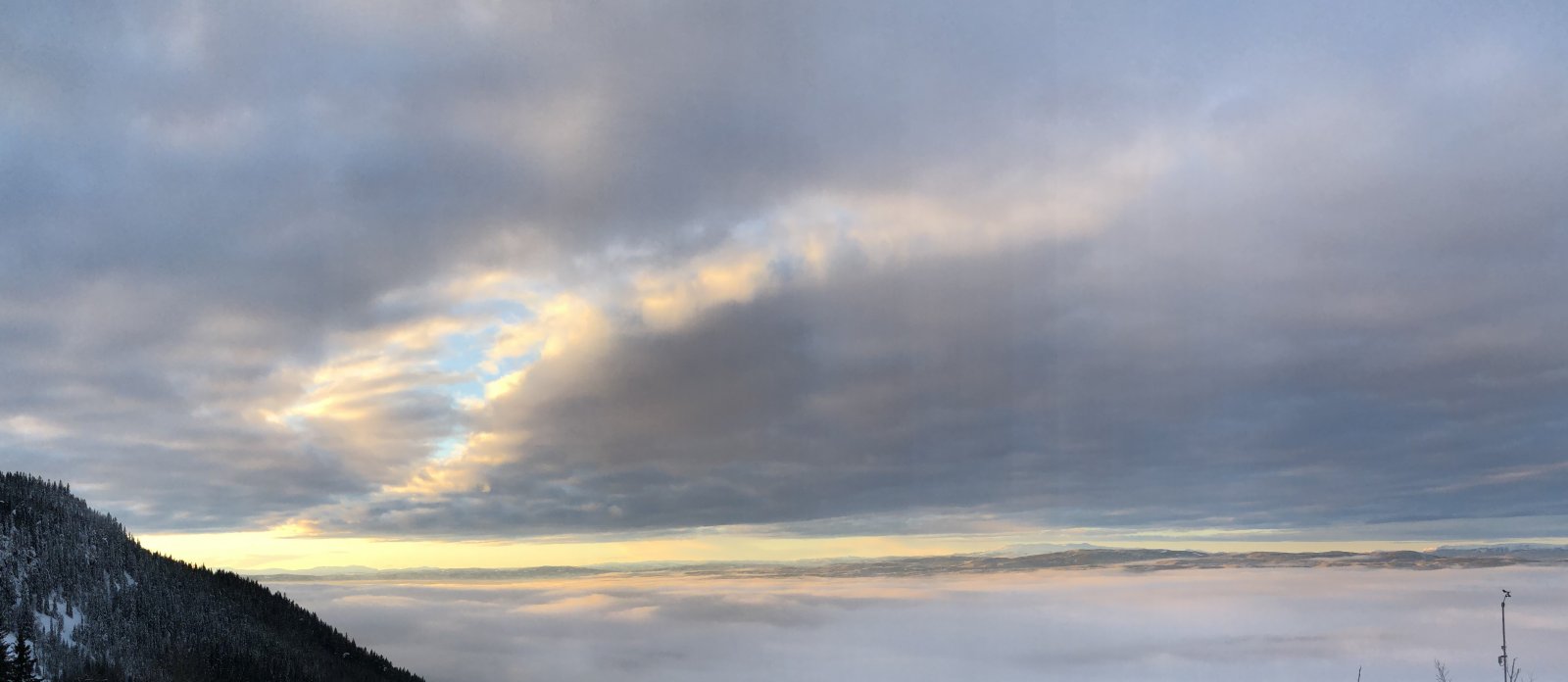 Mens vi satt der kom sola over åskammen og belyste snødekte tre bakfra, veldig synd at jeg ikke hadde med et kamera, et knall motiv😱
