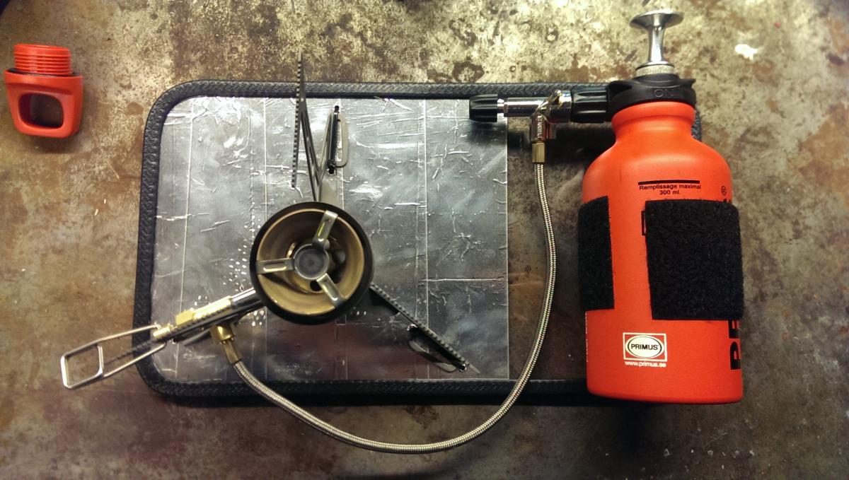 pahatlem Skrevet 15. oktober 2014 Skrevet 15. oktober 2014 Mekka egen til min Whisperlite Universal: 4mm plexiglass, 3mm skruer og (superlimte) muttere som fester. Superlimt borrelås som feste for parafinflaska. Skruene er faset inn i baksiden så de ikke stikker ut. Som første forsøk er jeg godt fornøyd, men skal nok runde av kantene mtp pakking, samt muligens feste på noe aluminiumsbrannisolasjonsstoffgreier (liten bit liggende til høyre i bildet) jeg har liggende. Jada, jeg vet ingen har postet noe her på et års tid, men jeg likte tråden, og håper på en renessanse... 1