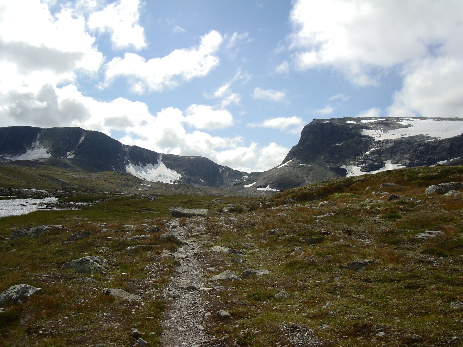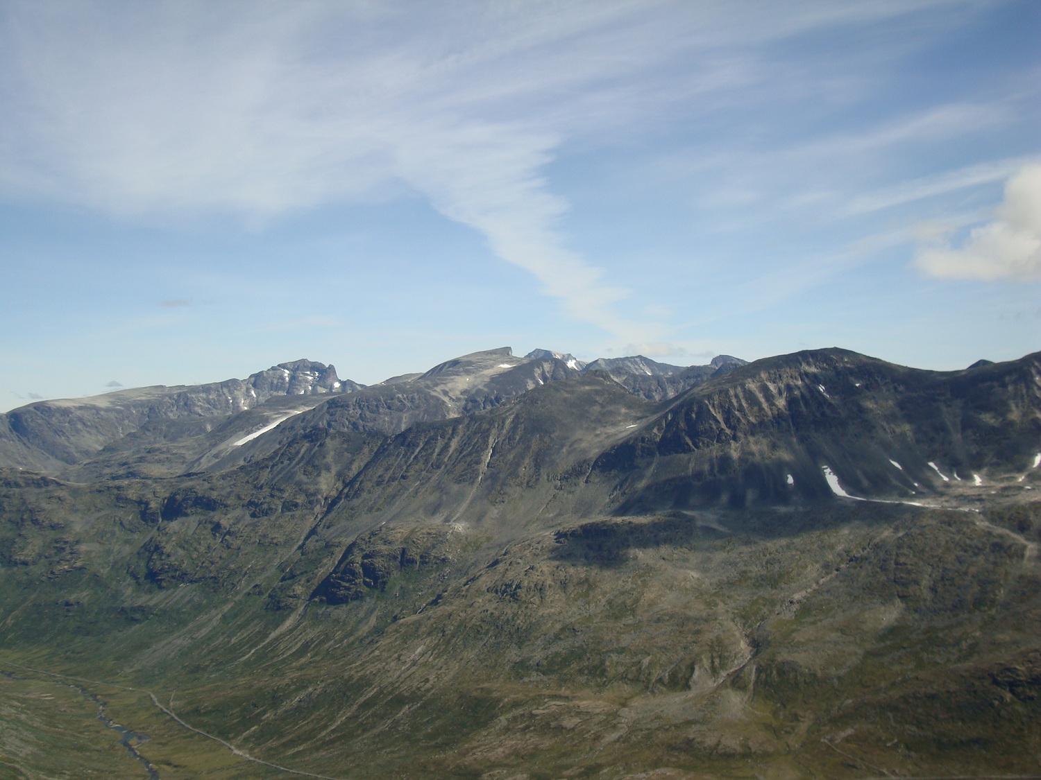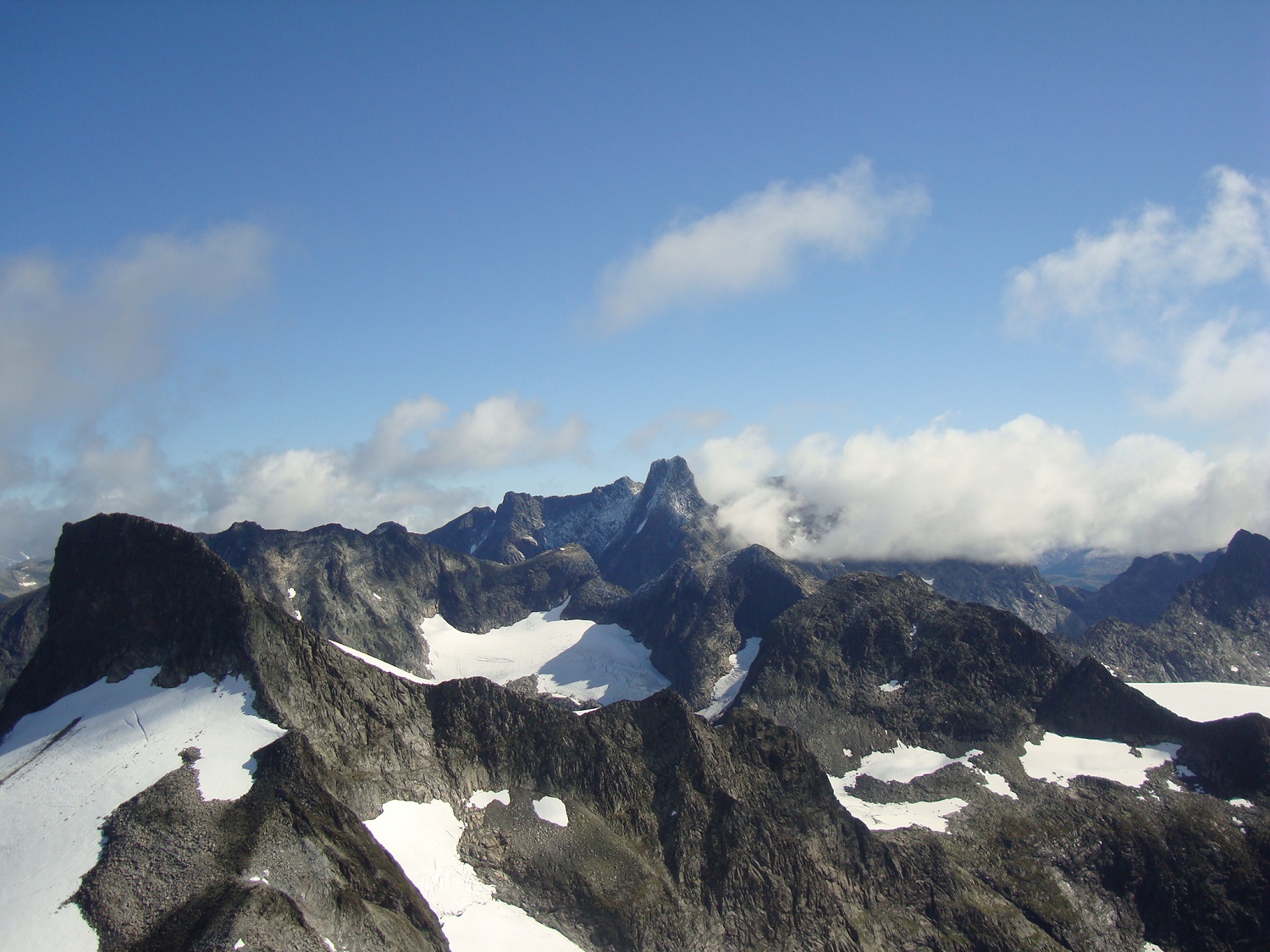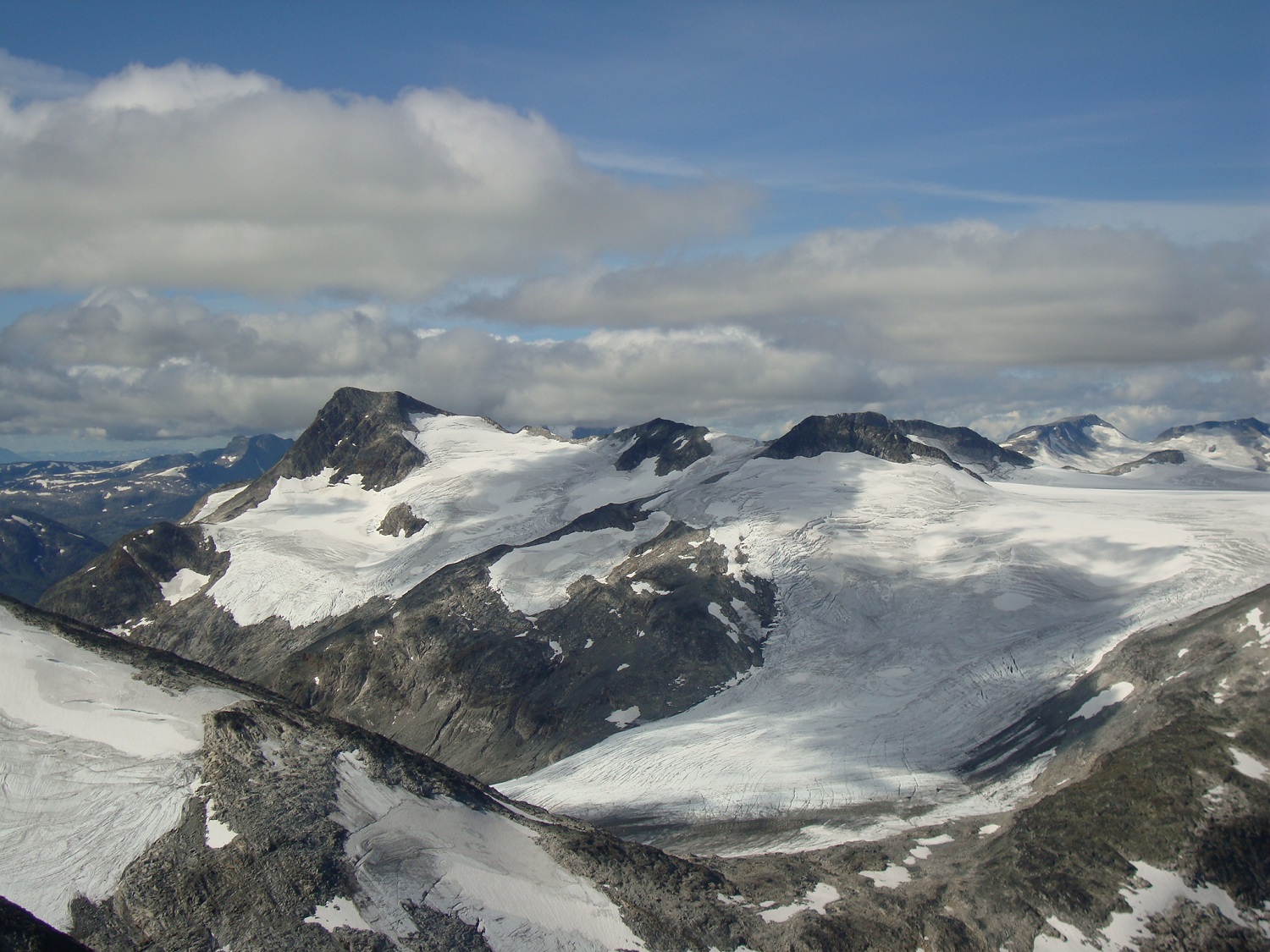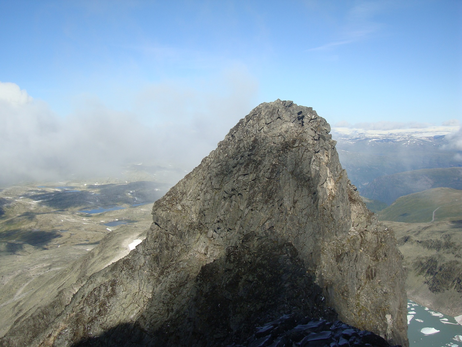 askogvoll Skrevet 15. august 2011 Skrevet 15. august 2011 To fylkestopper og et flott besøk i Jotunheimen 10-12 aug 2011 Etter en liten uke på jobb, hadde jeg enda noen feriedager til gode. Etter å ha fylt kjelleren med ved samme uka, ville jeg ta med Ronja på noen fine turer både i og utenfor Jotunheimen. Første dagen bruker vi til å besøke Folskarsnuten og kjøre til Berdalsbandet. Kjøreturen over fylkesvei 50 er noe for seg selv, og jeg blir stadig overrasket over hvor vakkert landet vårt er. På torsdag møter jeg Morten og to tyskere ved Berdalsbandet klokken 05.00 hvor vi har planlagt å bestige Store Austabotntinden. Samme dag drar jeg til Leirvassbu for trivelig bevertning og flott vær. Jeg tar meg en tur på Stetind i flott vær på fredag 12. august før jeg besøker Fjellsjøkampen samme dag på vei hjem. Kort og godt en god avkobling til jobb og stress.. Folskarsnuten 1933 moh, Buskeruds høyeste topp. 10. agust 2011 Starter turen med å finne ut at jeg hadde glemt termosen med Kaffe på kjøkkenbenken i Tønsberg. Løsningen ble da å stoppe på Geilo og få tak i en ny, og koke en kanne før start. Tenk så kjipt det er å sitte på en topp i nordavind uten noe varmt å drikke. Som tenkt, så gjort, kaffen ferdig trukket og helt på termosen, og Ronja og meg klar for tur når klokka var 12.30. I dag skulle Buskeruds høyeste topp besøkes. Været var på topp, og temperaturen ikke for høy, en flottere dag kunne det nesten ikke blitt. Stien var lettgått opp til Lordehytta som ligger på 1622 moh. Noen lette snødryss på veien opp som smeltet idet det traff bakken, i august er dette egentlig bare litt sjarmerende. Etter en kort visitt inne i Lordehytta gikk Ronja og jeg i en ca rett linje fra hytta og mot toppen på 1930 moh. Lett å gå, med noen varder her og der som viste letteste vei opp. Kom opp til varden ved toppen på 1930 moh, hvor jeg fant ut at det høyeste punktet var ca en km lengre sør, hele tre meter høyere. Jaja, ikke noe å gjøre med det, bare å traske videre. Vi tok oss en kaffe og lefsepause ved den riktige toppen og nøt utsikten mot Hardangerjøkulen i sørvest, og det ellers flotte landskapet som omga oss. Følger en annen sti på vei ned, og jeg antar at jeg går feil det siste stykket, da jeg kommer til noen sva og bratte skrenter som krever tålmodighet å komme seg ned. Det er litt bratt for Ronja et par plasser, men kommer oss ellers greit ned. Er ved bilen klokka 18.30. Data: 6 timer 20 km Vestre Austabotntind 11. august 2011 Etter en relativt kort natt i bilen, kunne jeg konstatere at det var på tide å begynne å tenke på å gjemme bort sommersoveposen igjen, og bytte den ut med noe varmere. Det var rim på bilruten, noe som konstaterte at høsten var i anmarsj. Vi traff på Morten og de to tyskerne i morgenlyset ved Berdalsbandet. Det var litt rim på steinene, noe som gjorde det litt glatt enkelte steder. Det var ellers noen tåkedotter på himmelen, noe som skapte en noe trolsk steming da vi kom til S2 toppen. Ronja klarte seg fint opp til Vesttoppen, hvor vi tok en god kopp kaffe og spiste litt lunsj. Jeg var dog litt spent på hvordan Ronja kom til å klare seg videre. Det var bratt ned i skaret, og det var et punkt rett før man kommer ned at jeg måtte løfte henne, noe som ikke var så altfor populært. Vi kom oss litt over midten på skaret, men det begynte å bli så bratt og kronglete at det var best å komme seg tilbake til Vesttoppen. Morten gikk til Stortoppen mens Ronja og jeg lå og slappet av ved varden på Vesttoppen. Det strømte etterhvert til mye folk, og på vei ned igjen vil jeg annta det var godt over 20 stykker i fjellet bak oss. En flott tur i fantastiske omgivelser. Ronja hadde uheldigvis slitt ned klørne sine i den grove steinura slik at hun hadde det best av å hvile i noen timer. Vi dro videre til Leirvassbu samme dag for å slappe av og hvile kropp og sjel. Jeg hadde tenkt å gå på Stetind samme kveld, men etter å ha gått to kilometer innover grusveien mot Gravdalen fant jeg og Ronja det best å dra tilbake for å hvile. Ronja fikk legge seg i sengen på rommet, mens jeg tok meg en velfortjent dusj og spiste et fantastisk godt måltid. Traff på mye trivelige mennesker samme kveld, og et par nye 2K samlere. Stetind og Fjellsjøkampen 12. august 2011 Stetind 2020 moh Fikk sette fra meg Ronja i en hundegarde ved Leirvassbu slik at hun kunne pleie labbene sine og slappe av etter den harde steinura ved Austabotntindane. Sist gang jeg var på denne toppen var sammen med Mayhassen, og da var sikten betraktelig redusert grunnet tåke og regn. Jeg var litt nysgjerrig på hvordan utsikten fra Stetind var, og det fantes vell sjelden en bedre annledning enn denne dagen å gjøre det på. Data: 3 timer 50 min 12 km Fjellsjøkampen 812 moh, Akershus høyeste topp. Fant ut at jeg kunne ta denne toppen på vei hjem da den ikke var noe spesielt tid eller utstyrskrevende topp. Jeg kjørte på riksvei nr 180 og svingte av på avkjøringen det stod Fjellsjøkampen. Kjørte oppover en grusvei og stoppet ved en rød bom som sperret veien ca 500 moh. Grei og lettgått sti, som hadde markeringer for hver hundre høydemeter man kom opp, jeg så i alle fall skiltene for 600 moh og 700 moh. Flott utsikt fra toppen, dog en del skog. Så Gardemoen, og det meste som var avmerket på platen i utsiktstårnet ved toppen. Jogget lett tilbake til bilen og dro tilbake til Tønsberg etter en liten «miniferie» til fjells. Data: 1 time og 5 min 6 km