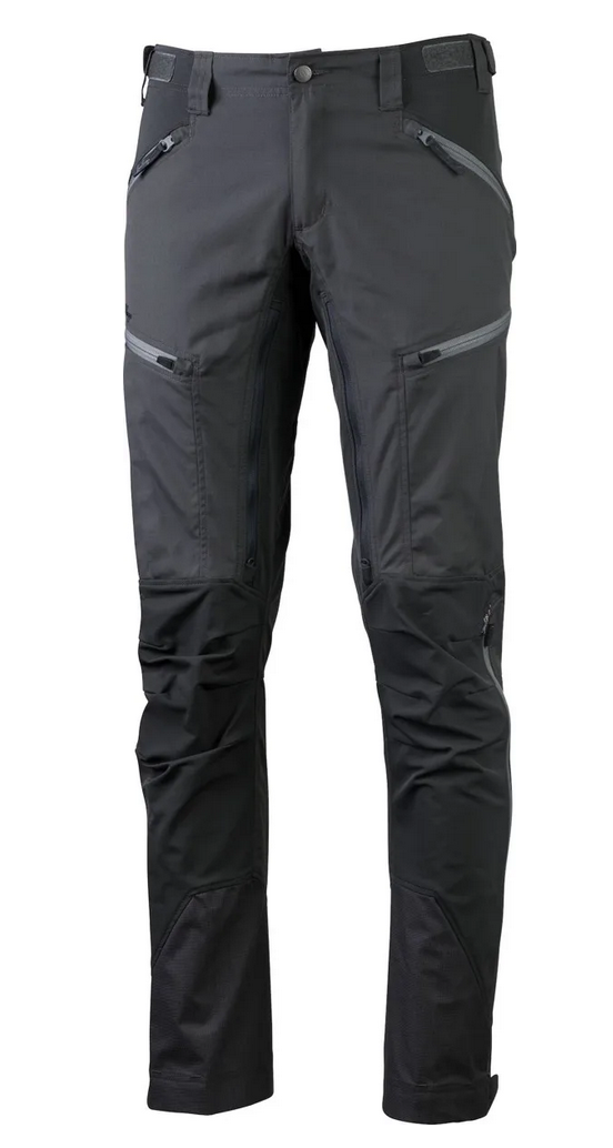 Nytt søk på nett, og da fanget Lundhags Makke min interesse. Bestilte en 50 lang og 52 lang (hhv M og L) (jeg er 185 cm). Åpnet 50-en først og den satt altså som et skudd! Dette kjentes mer ut som en turbukse i stoffet, og med to lårlommer inkl to vanlige lommer, ingen baklomme heldigvis, toveis glidelås på leggen, glidelås på innsiden av lår for lufting, borrelåsstramming for belte, tre knappevalg for innstramming helt nederst.