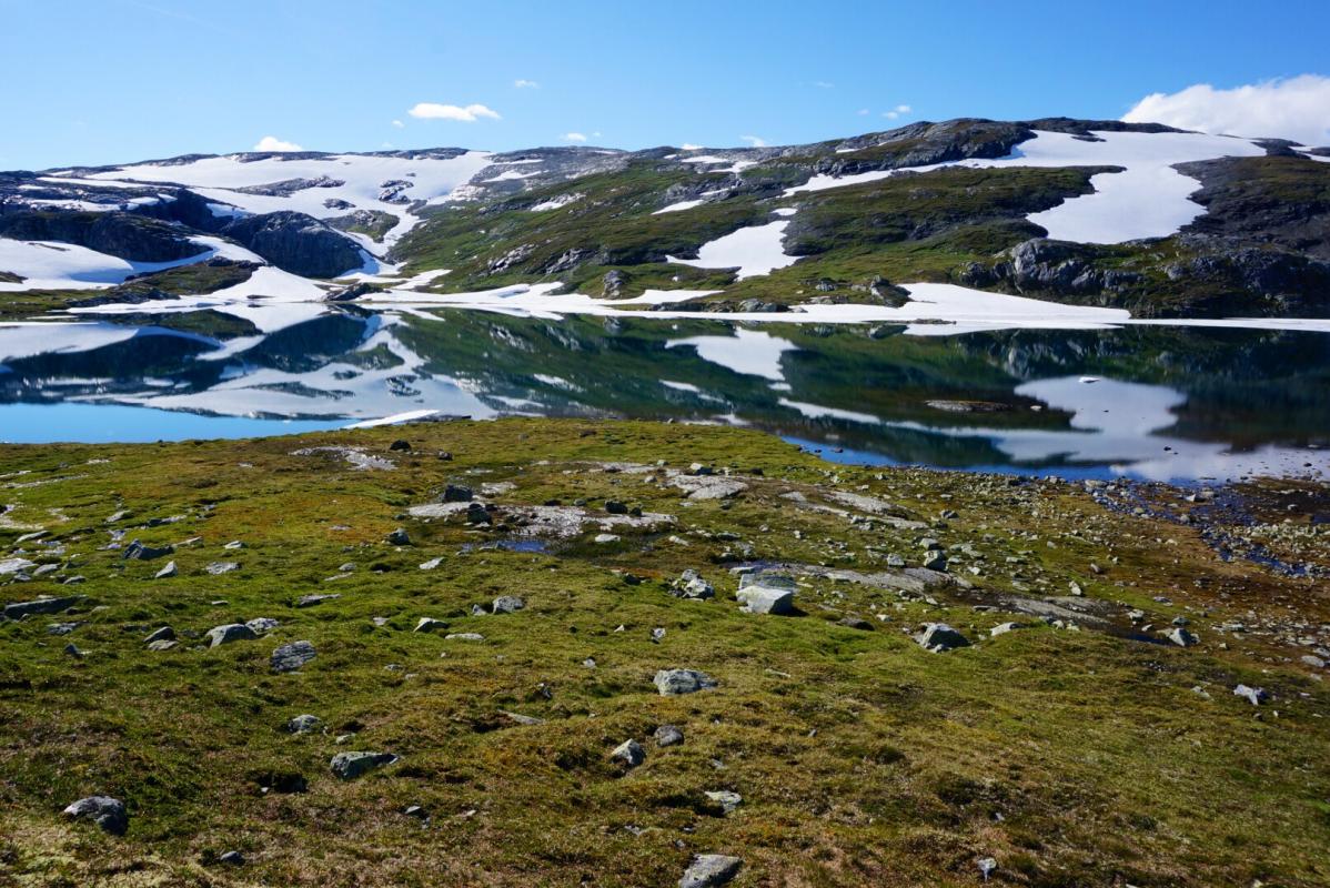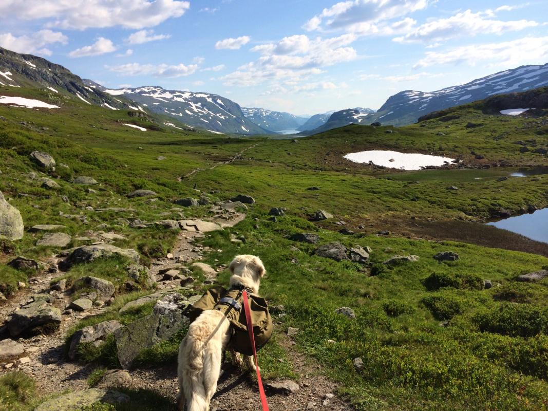 I starten var det skog og høyt gress, mens lenger oppe måtte vi krysse et par stenurer og for å komme oss over Slettedalsreset krysset vi en liten bre.