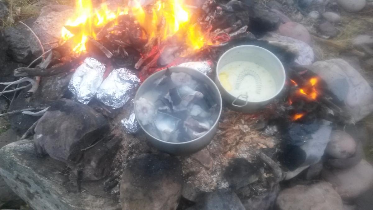 Maden var som det ses, ikke ligefrem pulver mad, man kan godt spise god mad selv på tur :)