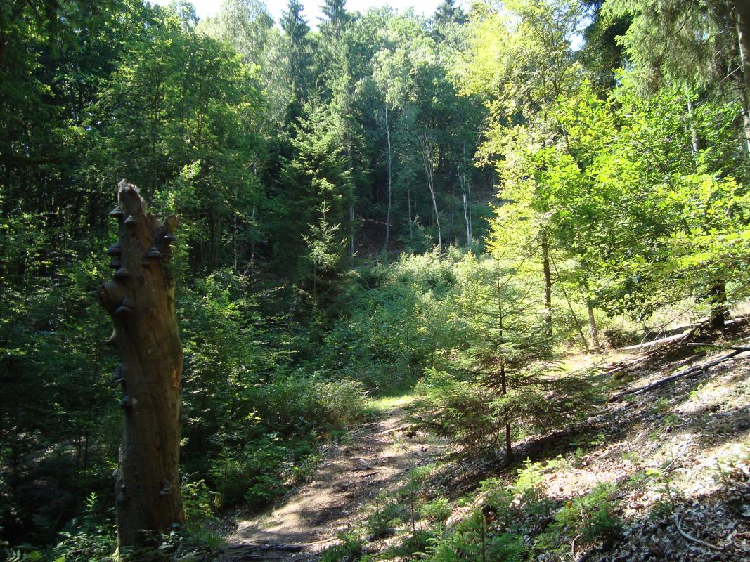 På vei nedover Kaldhusbakkane var det vanskelig å følge stien, den var dårlig markert og flekkvis overgrodd. Jeg tror ikke det så veldig mange som går denne stien.