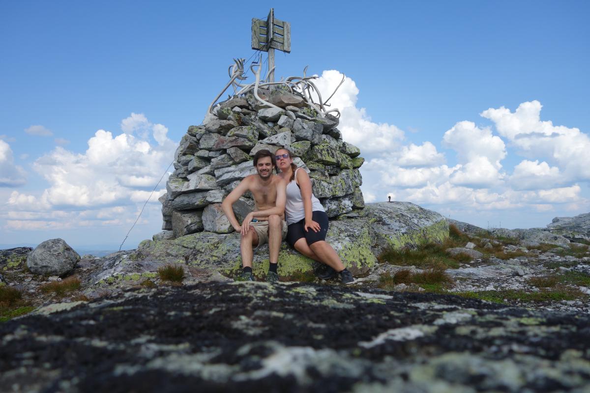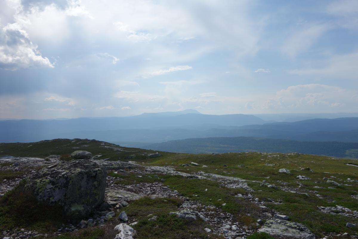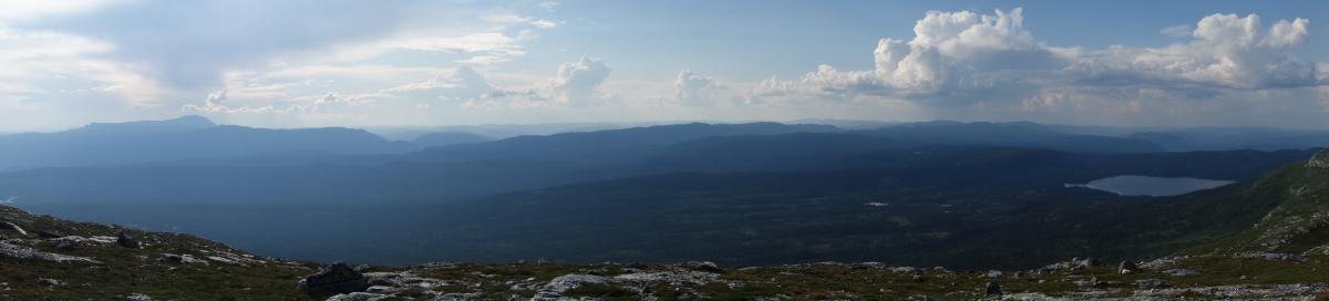 På toppen av reset tok jeg et panoramabilde. Det lille vannet til høyre for midten av bildet er hvor vi stoppet for å spise litt Real Turmat.