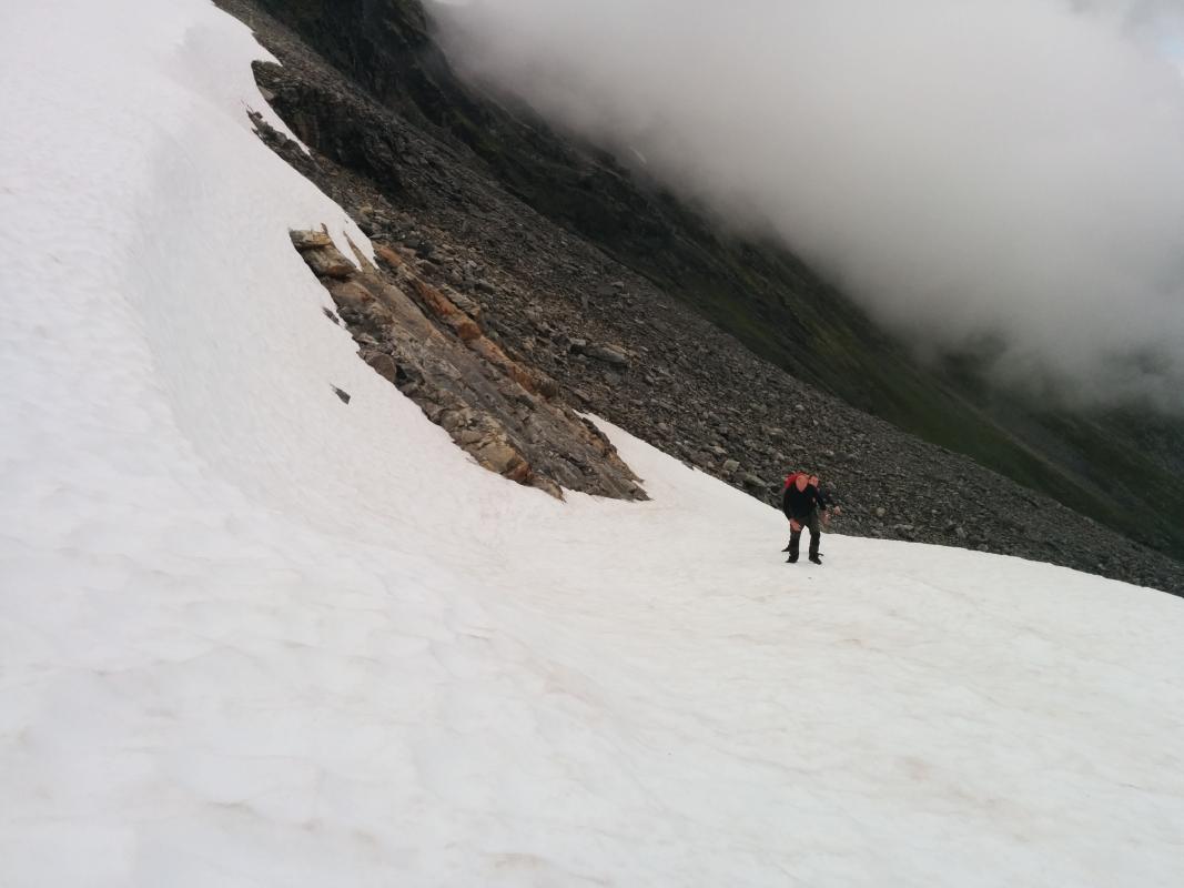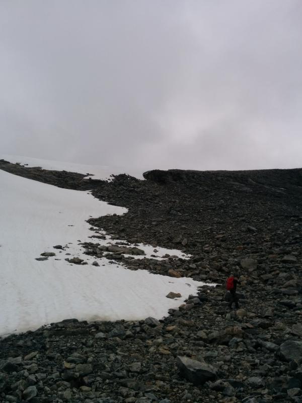 Siste biten gikk vi opp breen, det hadde heldigvis smeltet et lag øverst, så det var ikke vanskelig å gå.