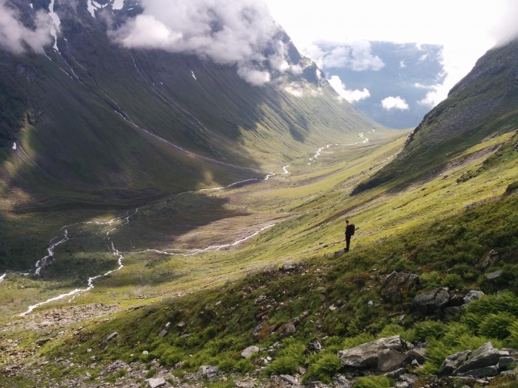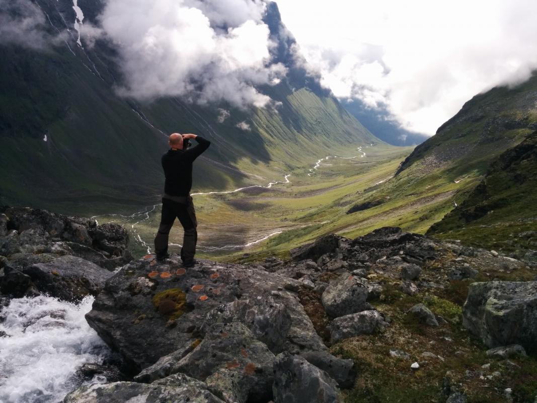 Midt i Vesteråsdalen snudde vi blikket tilbake fra der vi kom, og det var helt nydelig. Pappa måtte ta noen flere bilder herfra.