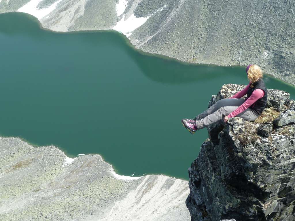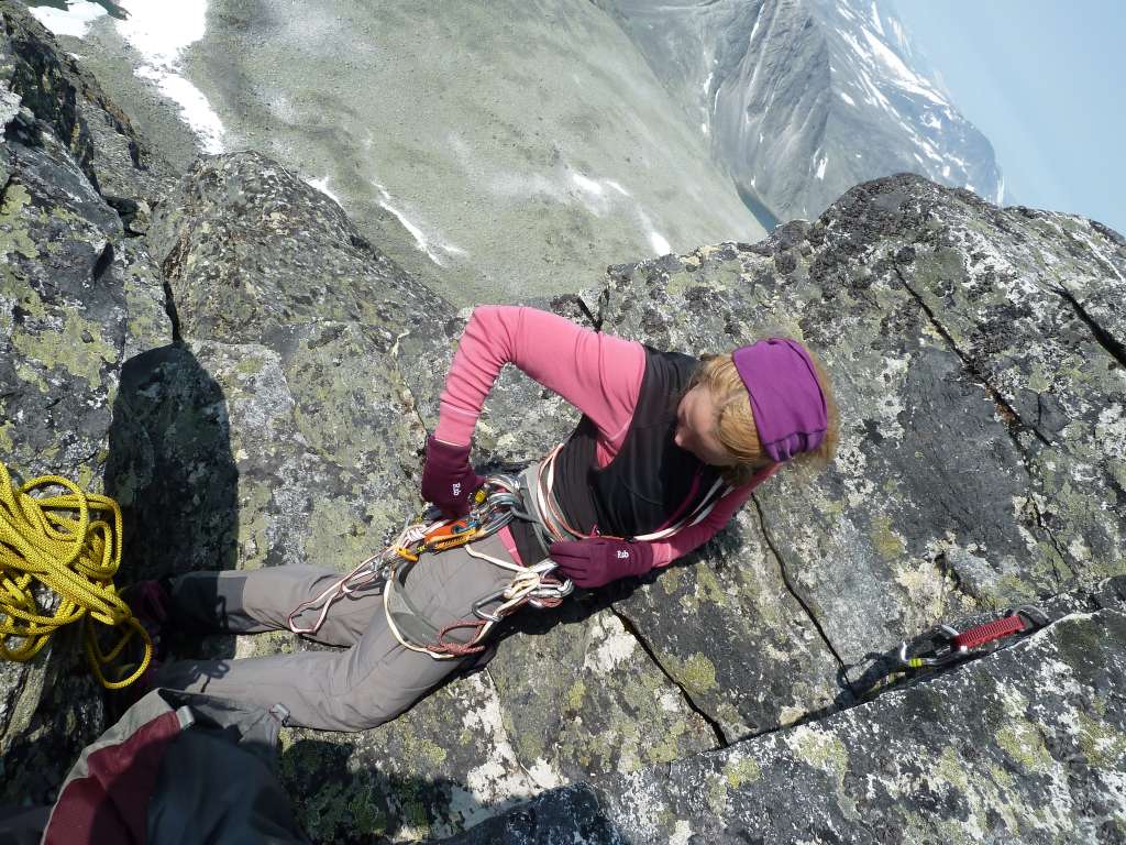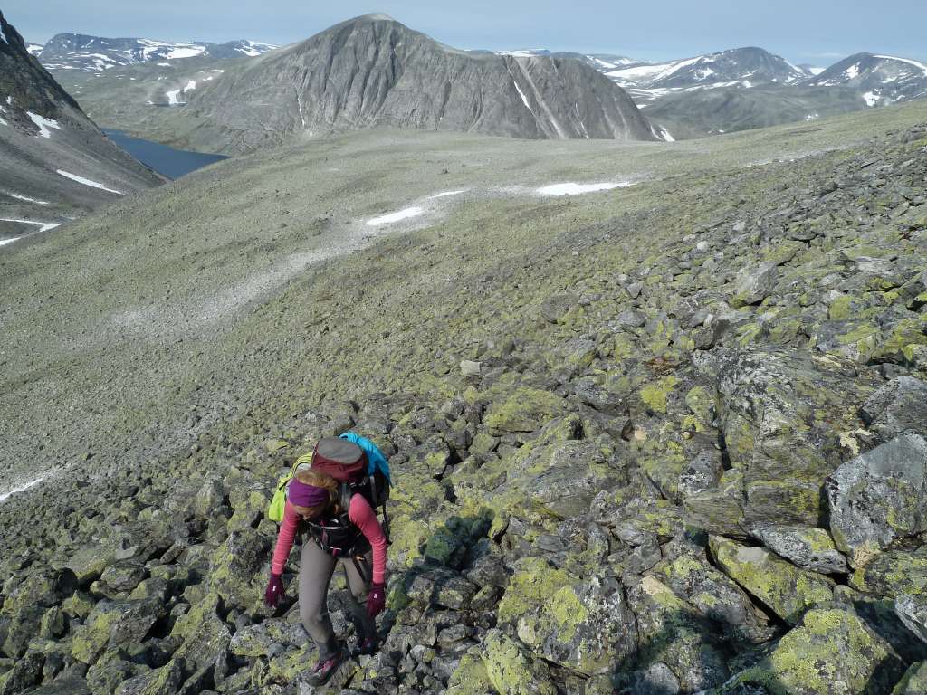 LTP Skrevet 15. juli 2013 Skrevet 15. juli 2013 Utsiktene på notoriske yr gjorde at Syltraversen ble valgt vekk til fordel for Dovre og Larstind, hvilket vi ikke angret på. Og har man fornavn Lars, bør man ha vært på Larstind. Syklet til Maribue og campet i nabolaget onsdag kveld, men plagsomt mye moskusomgåelser underveis (nok en gang) gjør at det trolig blir turisttransporten til Snøheim på kommende 2K-turer. Opp 06 torsdag til rimfrost på teltet, deretter knallvær og varme gjennom hele Svånådalen. Lang anmarsj. Droppet renna og gikk rundt pga. en del snø, lur strategi da vi senere møtte et par som måtte gi opp renna og også gå rundt pga. hard snø de ikke klarte å unngå. Jern og øks ville reddet situasjonen. Fin og luftig egg før vi rapellerte ned i skaret. Lengde ca.15m (som kunne vært kortet ned), returklatringen samme vei ble av fagfolk vurdert til en liten 3'er. Tok den nederste tunnellen og kløv greit til topps. Vindstille og mygg på toppen av Larstind! Bildene beskriver resten bedre enn ord. Vis rapporten i Turkartet Vis større kart 4