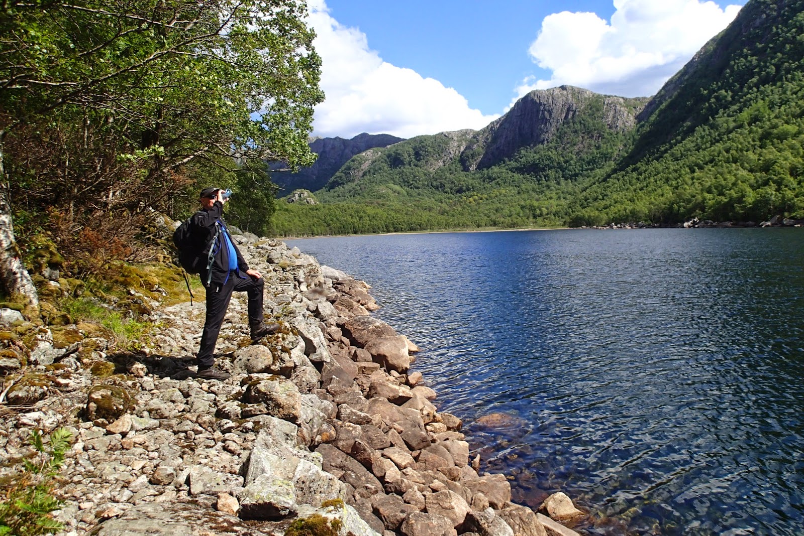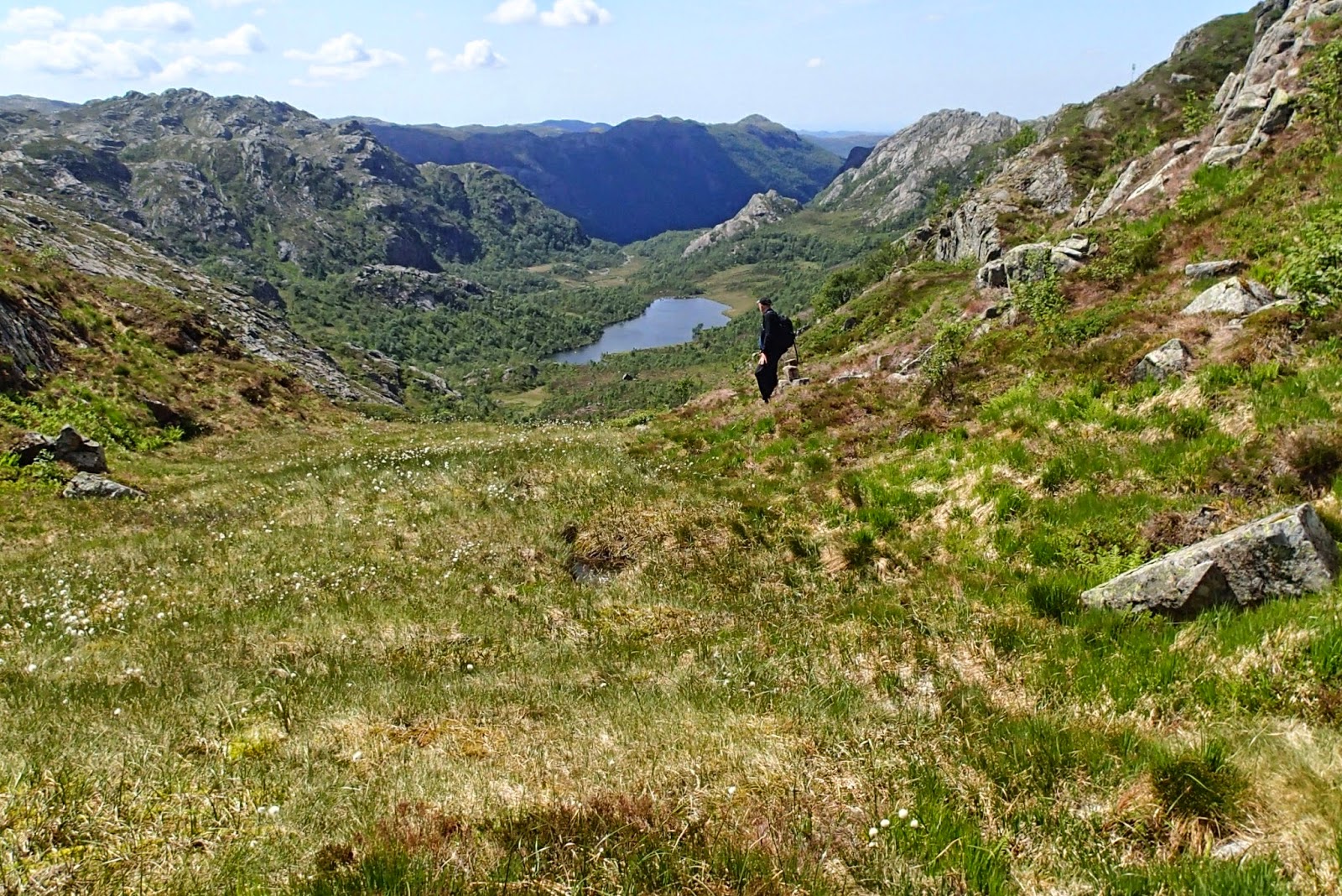 REJOHN Skrevet 9. juni 2014 Skrevet 9. juni 2014 Søndagstur på mandag. Madlandsheiene har mange perler. Videmyr, Hanklatjørna, Vådlandsnutane, Hiadalen, Fossankrå og Tverromdalen. Smak på navnene. De smaker lyng, einer og friskt fjellvann. Sammen med blå himmel, sommertemperatur og lite vind, blir det garantert en kjempedag om turen legges innom noen av disse plassene. Med broderen på sidelinjen på grunn av en fot, ble det muligens en solotur. Bestyrerinnen mente jeg fikk snakke med Bernt. Han har fått innkalling til en større ”bypas” operasjon om noen uker, og jeg regnet med at han ville ta det med ro. Ring, sa bestyrerinnen. Bernt var så avgjort klar for en tur i heia. Vi ble enige om å forsøke Madlandsheia, og vi fikk ta en runde i toppen av Høylandsskartet på turen videre. Vi kom opp de første bakkene, passerte Fisketjønna i god fart og tok fatt på bakkene i skaret. En av mine små spesialiteter er å holde tempo på et nivå tilpasset andre. Vi kom opp til topps, med utsikt til Vådlandnutane rett fram, og stoppet ved skiltet som viste vei til Veen. Begge var klar for en tur gjennom Tverromdalen. Det var riktig mange år siden jeg hadde gått denne turen. Dalen er en ren perle. Det er en gammel stølsdal, med ruiner av høyløer. Men for øvrig helt uberørt av menneskehender. Det er vann og åpne sletter og utsikt nedover mot Gloppedalen. Stien er merket – på et vis -, men nesten usynlig i terrenget. Heldigvis viser nødlingene på avstand, så vi hadde ikke problemer med å finne fram, selv om vi var utenfor stien noen ganger. Fra toppen og ned til vannet er det åpent heielandskap. Videre nedover er det mye bjørkeskog og kratt. Stien er ikke lettgått, og det tar på beina å gå slakt nedover. (Men det er bedre enn å slite seg opp.) Nede ved stidelet mot Veen, går stien gjennom et gammelt le. Det må ha bodd folk her inn en gang. Nede ved Gloppevannet er det strand og plass for et telt. Men denne dagen fristet ikke teltlivet. Vi hadde følge med fluer, i hopetall, og de ga oss ikke mye fred. Langs vannet er det opplødd sti. Noen har brukt mye krefter på å gjøre veien innover mot Veen godt farbar for folk og fe. Det minner ikke så lite om veien mot Viglesdalen. Veien mellom Madland og Veen, gjennom Gloppedalen, var nok mye brukt i gamle dager. Det er tungt å gå på stein, spesielt på slutten av en lang tur. Denne gangen kunne vi i tillegg glede oss til en siste bakke fra Madlandsvannet og opp til parkeringsplassen. Det ble en tung tur opp bakken. Heldigvis for en stor del inne i skogen. I de åpningene vi gikk gjennom var temperaturen over 30 grader. Det er varmt. Nå har jeg aldri før funnet denne stien. Og i stedet gått opp til veien, for så å følge denne til bilene. Denne gangen ble det skikkelig sti og skikkelig bakke. Vi kom selvsagt opp. Og nådde bilen etter å ha brukt 4,5 timer på 15 km. En anstendig søndagstur en mandag. Vis hele artikkelen slik den er på hjemmesiden Vis rapporten i Turkartet Vis større kart 2
