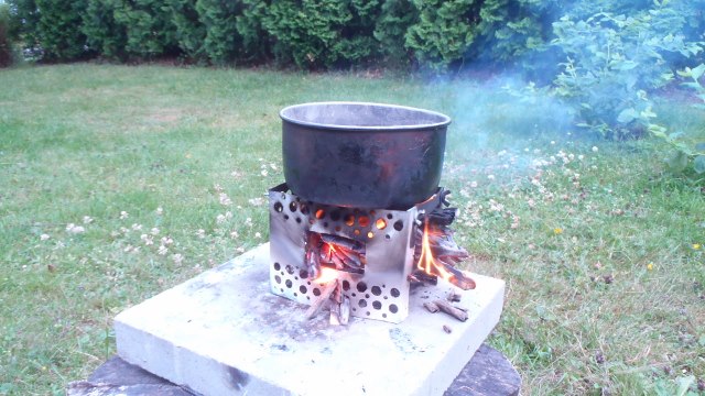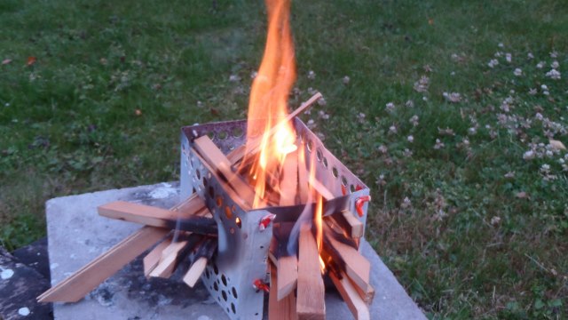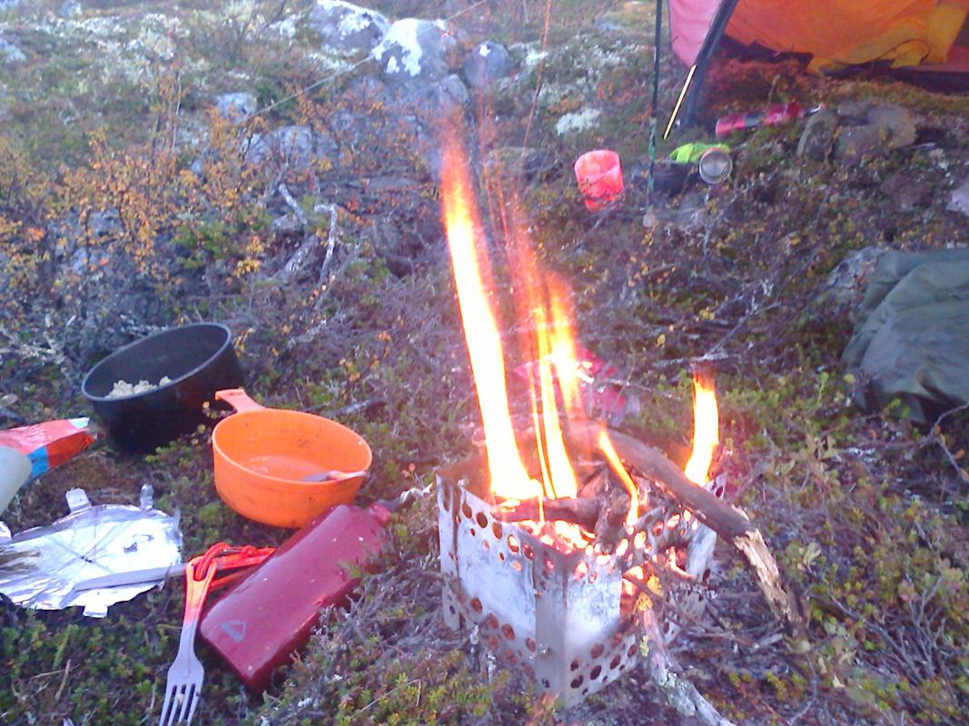 +Tom42 Skrevet 22. september 2014 Forfatter Skrevet 22. september 2014 En modifikasjon av feltovnen. Utgangspunktet. På bilde nr 2 vises ovnen ferdig. i frontendestykke borer jeg først hull slik at det blir lettere å klippe åpning til ved ilegget. Deretter klipper jeg nedenfra et hull for trekkens skyld, men sparer en kant for stabilitetens skyld. Avstanden opp til brenneristen er ca 4 cm. I lufterommet legger jeg også fuktig ved til tørk. #################################### Ved test av ovnen i sitt rette element, ble avstanden fra brennplaten til toppen på 4 cm altfor liten. Dette skyltes det enkle faktor at vier og einer ikke er rette og jevne som de trestykkene jeg brukte hjemme i haven. Først fjernet jeg brennflaten helt. Men satte den raskt på igjen ca 1 cm over bakkenivå, slik at brennkammeret ble på 10 cm. Grunnen til at jeg beholdt brennnflaten var at da kunne jeg flytte ovnen uten at bålet ble igjen på bakken. Ikke minst er dette nyttig når vinden dreier. Ovnen fungerte helt perfekt. Tente opp vha en brikett, og la på ved. Det var helt unødvendig å blåse, fordi flammene hadde sine rammer. Fordi veden er såpass krokete er det heller ikke nødvendig å ha et ilegg på siden. For å holde styr på skruene ofret jeg en liten bit av et liggeunderlag, og "skrudde" skruene inn i det. Siste bilde viser at det er nok ved, også til litt lettsindig kosebål, 1