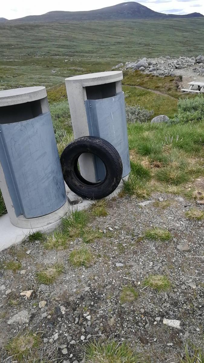 CarlHenrik Skrevet 13. juli 2017 Skrevet 13. juli 2017 Var en tur å gikk på Valdresflya her om dagen. Godt fylt med stein i en bekk var denne plasser drøye 800m fra rasteplass ved veien. Tok med den og noe mer små rask vi fant på ferden tilbake. Virka som mer jobb å plassere dekket i bekken enn å bære det bort til søppelkassene. 1