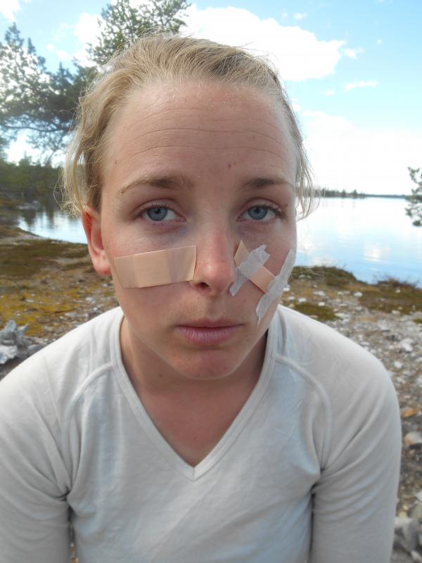 Vi var på en ukestur i Femundsmarka første uka i juni 2014. Vi har aldri hatt så utrolig fint vær på tur før, knallsol alle dagene og deilige temperaturer på dagtid! Til vår store skrekk oppdaget vi at solkremen sto igjen på kjøkkenbordet etter at sekkene hadde blitt pakket om både to og tre ganger.. Det ble litt krise! Vi endte begge opp helt vanvittig solbrente.. Det ødela mye av det som faktisk kunne vært den fineste teltturen vår noensinne.. Kjedelig!! Men nå er vi hvertfall sikre på at vi ALDRI glemmer det igjen :P