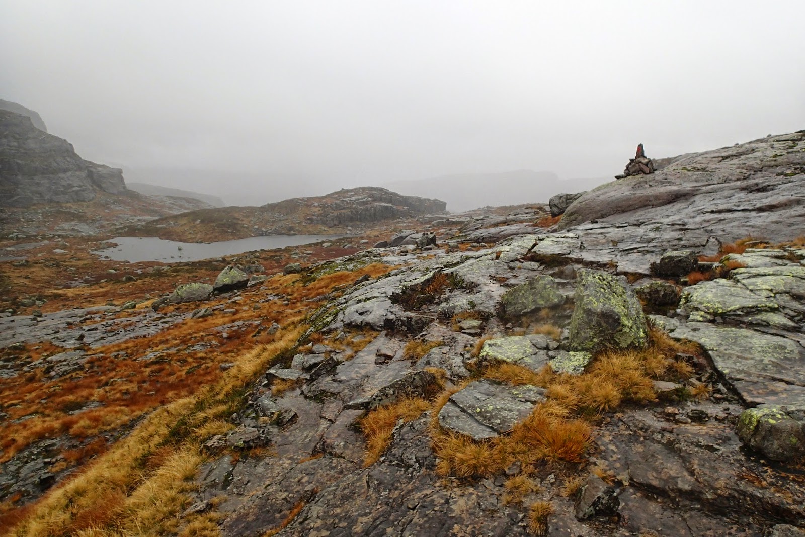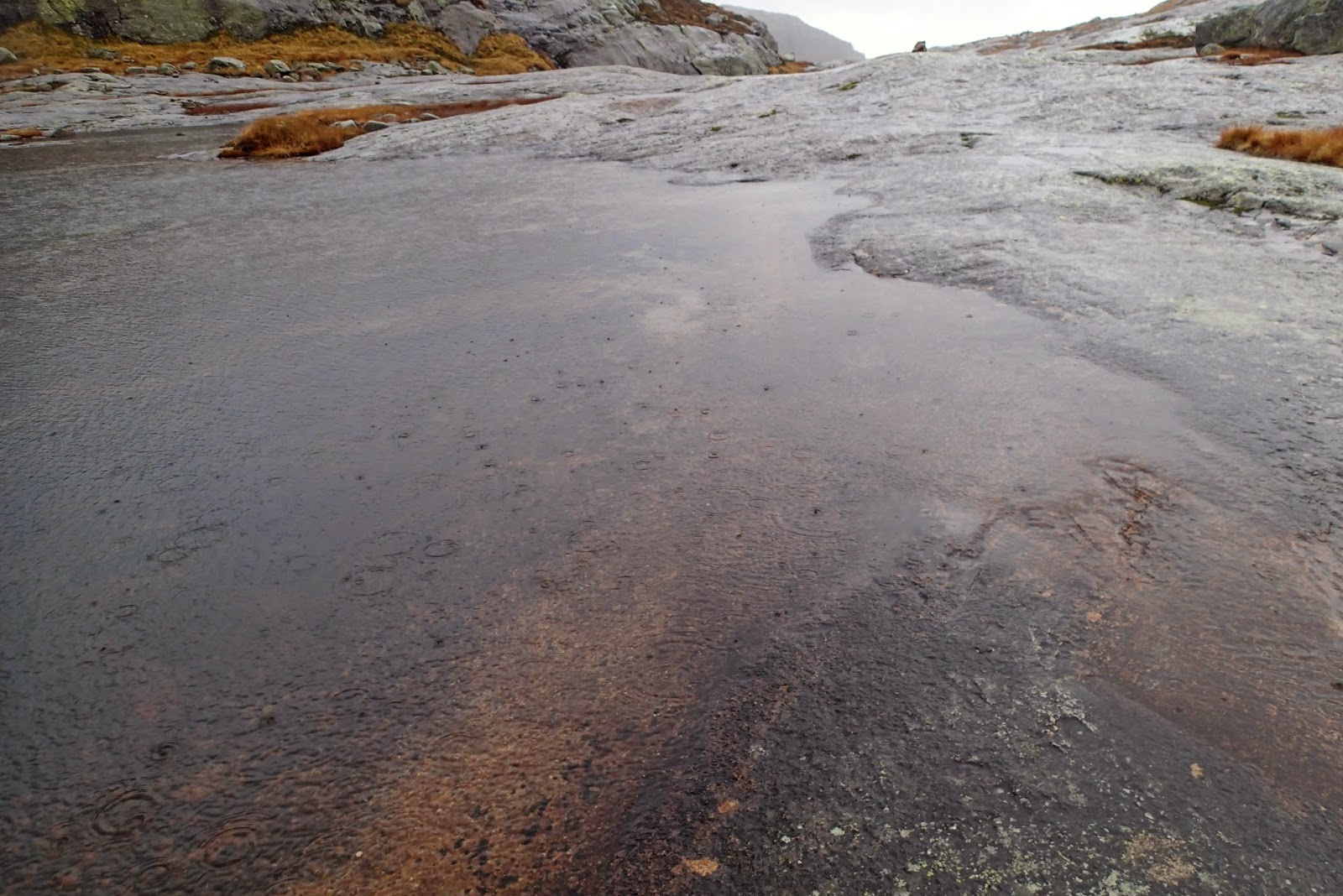 REJOHN Skrevet 21. oktober 2014 Skrevet 21. oktober 2014 Ikke snø eller is, men regn i bøtter og spann. Som vanlig, etter en overnatting på Blåfjellenden må jeg en tur i heia. Og denne gangen valgte jeg å gå innover mot Sandvatn. Det var snakk om regn. Og det kom vann fra oven i mengder. Fra parkeringsplassen og opp Lysebrekka var det faktisk ikke regn. Ikke tørt i bakken. Myrene var søkkbløte, og bekkene gikk store. Ånå ned Lysebrekka brummet fælt, og det var mye vann i kulpene. Nå innbød ikke temperaturen til bading, så vannet fikk strømme i fred. Det var ikke mange folk i heia denne helga. En enslig bil på parkeringsplassen, og det var antakelig en jeger som forsøkte å finne ryper i Valevannterrenget. Bilen var i hvert fal borte da jeg kom ned, og jeg hadde ikke møtt sjåføren. Det ble med andre ord en ensom tur innover heia. Egentlig en vintertur. Vinter på våre kanter, men da helst nede ved sjøen, har ofte dager med regn og vind – og temperatur rundt 4-5 grader. Slik det var på søndag i heia. Nå var været så pass bra at det ikke bød på noen utfordring hverken lørdag eller søndag. Men det var ingen som hadde overnattet på hytta. Den var kald og trist. Det er likevel greit å kunne være inne under tak når matpakken skal ned. Mat må til, spesielt etter to dager med tur. En hvil og mat gjør stor forskjell. Det er adskillig lettere å gå, med noe mat innenbords. Og denne gangen trengtes det. På vei tilbake, fikk jeg været rett i fleisen til å begynne med. Det var en stund litt utrivelig. Ikke langt oppe i første bakken, med pusten på topp, kom varmen og det ble lettere å gå. Innover gikk jeg å tenkte på hvor tungt det kunne bli på tilbakeveien. Det ble aldri riktig tungt. Det ble tvert om en av de turene der det fløt. Det gikk nærmest av seg selv, og føltes ikke tungt i det hele tatt. Det regnet selvsagt, men regnet kom litt fra siden og var ikke så veldig merkbart. Etter en stund glemte jeg hele nedbøren. Da kom det skikkelig regn. Det datt ned så det slo opp fra bakken. Det rant og surklet over alt. Det var fort gjort, og nedbøren gikk igjen over til en stille sildring. Det eneste skikkelige problemet med så pass mye vann er at alt blir glatt. Det var et par plasser jeg bare skle bortover og hadde ikke styring i det hele tatt. Jeg tok det med ro ned bakken. På vei tilbake, så jeg en mann som sto ved en stein et stykke fra stien. Jeg prøvde å hilse, men fikk ikke noen reaksjon. Det så ut som om han ventet på noen. Nede ved Lortabu sto det to karer – sauegjetere. De spurte om jeg hadde sett noen innover. Jeg kunne da fortelle om denne karen jeg hadde sett inne ved Blautevann. Det viste seg at de savnet en mann. Det må ha vært litt misforståelser, for de to andre var gått ned mens en ble igjen – i regnet og vinden. De gjorde seg klar til å ta oppover, men før jeg kjørte fra parkeringsplassen kunne jeg se en skikkelse opp i stien, på vei ned. Det må ha vært den savnede tredjemannen. En vintertur, og muligens den siste innover mot Sandvatn dette året. Litt trist å tenke på, men denne sesongen har gitt meg så mange fine opplevelser og turer i bra vær at det er nok å tenke tilbake på. Det er ikke så veldig mange årene jeg har vært innover så pass sent som i midten av oktober. Værmeldingen fremover gir håp om noen flere turer i år, så da gjenstår det bare å bestemme hvor turen skal gå. Vis hele artikkelen slik den er på hjemmesiden 8 Siter