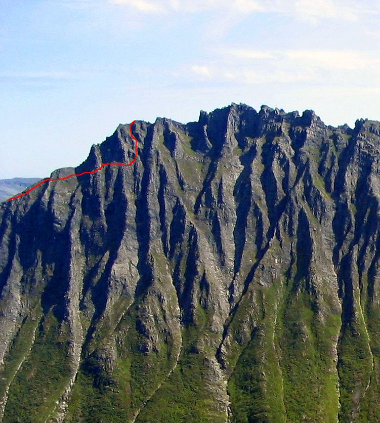 Svein Skrevet 18. januar 2006 Skrevet 18. januar 2006 Ble faktisk i tvil om jeg har markert Hammersettinden rett Når jeg studerer rennene og tenker tilbake på de 3 gangene jeg har vært der (5 år siden sist), så er det nok "nabben" til venstre for.... Jeg har tegnet ruta inn på et mer detaljert bilde. Fin klyverute jeg har brukt å ta i slutten av mai da det stort sett er lite snø opp i der på den tiden.