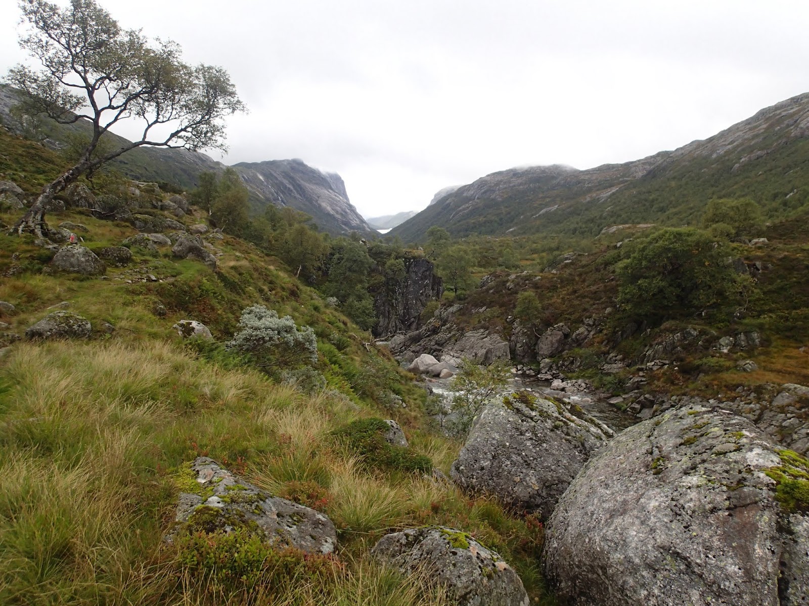 REJOHN Skrevet 21. september 2015 Skrevet 21. september 2015 Endelig en lengre tur - starten. Dette året har vært spesielt. Den hersens fotene har hindret turer, kondisjonen er dårligere enn på mange år og det var snø i hauger og lass på våren. Det har blitt få langturer. Det har ikke en gang blitt anledning til å ta den tradisjonelle turen fra Lyseveien til Langavatn, Blåfjellenden og Fløyrli - før nå. Ikke uten en viss spenning. Ville foten holde, kunne jeg bli liggende oppe i heia med avrevet Akilles. Selvsagt ikke. Alt gikk helt greit. Værmeldingen tidlig i uka vartet opp med godvær. Det hold selvsagt ikke. På båten innover Lysefjorden var det regn på ruta. Det var mørke og tunge skyer over fjorden, og det så ikke greit ut for en tur i høyden. Jeg har planlagt og gjennomført denne turen mange ganger. De fleste gangene med god værmelding, og nesten alltid med regn og vind innover mot Langavatn. Og det fikk jeg denne gangen også. Hetta opp deler av turen og hansker på. Det er nå ikke lange biten å gå. Fra veien og inn til hytta tar bare noe over en time. Tilstrekkelig til å bli varm og svett, men ikke trøtt. På hytta var det 4 stk. De hadde fått en del fisk fra noen jegere. Fisken var tatt like uten for døra, og ble forrett til middagen - fersk stekt bekkerøye. Det er ikke morsomt å høre regnet sile ned, nesten hele natta… Lørdagsmorgen var det fortsatt tåke og grått. Eller var det noe lyst nede i horisonten. Et par ville til Kjerrag, og da de gikk, datt det ut av meg “det vil vel antakelig klare opp snart”. og jeg fikk rett. Det kom ikke nedbør i det hele tatt på turen ned mot Blåfjellenden. Sorpe derimot… Det var glatt og sleipt, og det krevde konsentrasjon for å unngå å falle. Det er en kjekk tur fra Langavatn til Blåfjellenden. Det er tydelig at isen har arbeidet med landskapet. Enkelte plasser er utsikten formidabel. Det er fra en plass, mulig å se langt nedover i Fidjadalen. Jeg gikk å så etter sau. Den første sankingen er over, og nå er det ettersankingen som står for tur. Det er fortsatt sau i fjellet, og på turen nedover dalen kunne jeg telle 7 dyr. Og noen mennesker. Et stykke nedenfor Blåstøl satt det et par. Behagelig på liggeunderlag med primusen i gang. Varm tomatsuppe med kokte egg på tur. Ikke dårlig forpleining det. De hadde ligget på Blåfjellenden og skulle videre til Langavatn. På en så pass kort tur er det tid til gode pauser, og her har jeg noe å lære. Tretimers turer går stor sett uten pause og stopp. Selv på turer som varer vesentlig lengre blir det sjelden til at jeg stopper for annet enn å drikke vann fra en bekk. Hva som haster har jeg aldri riktig fått tak på, men det er viktig å komme kjapt fram… Neste stopp Blåfjellenden. Vis hele artikkelen slik den er på hjemmesiden 4 Siter