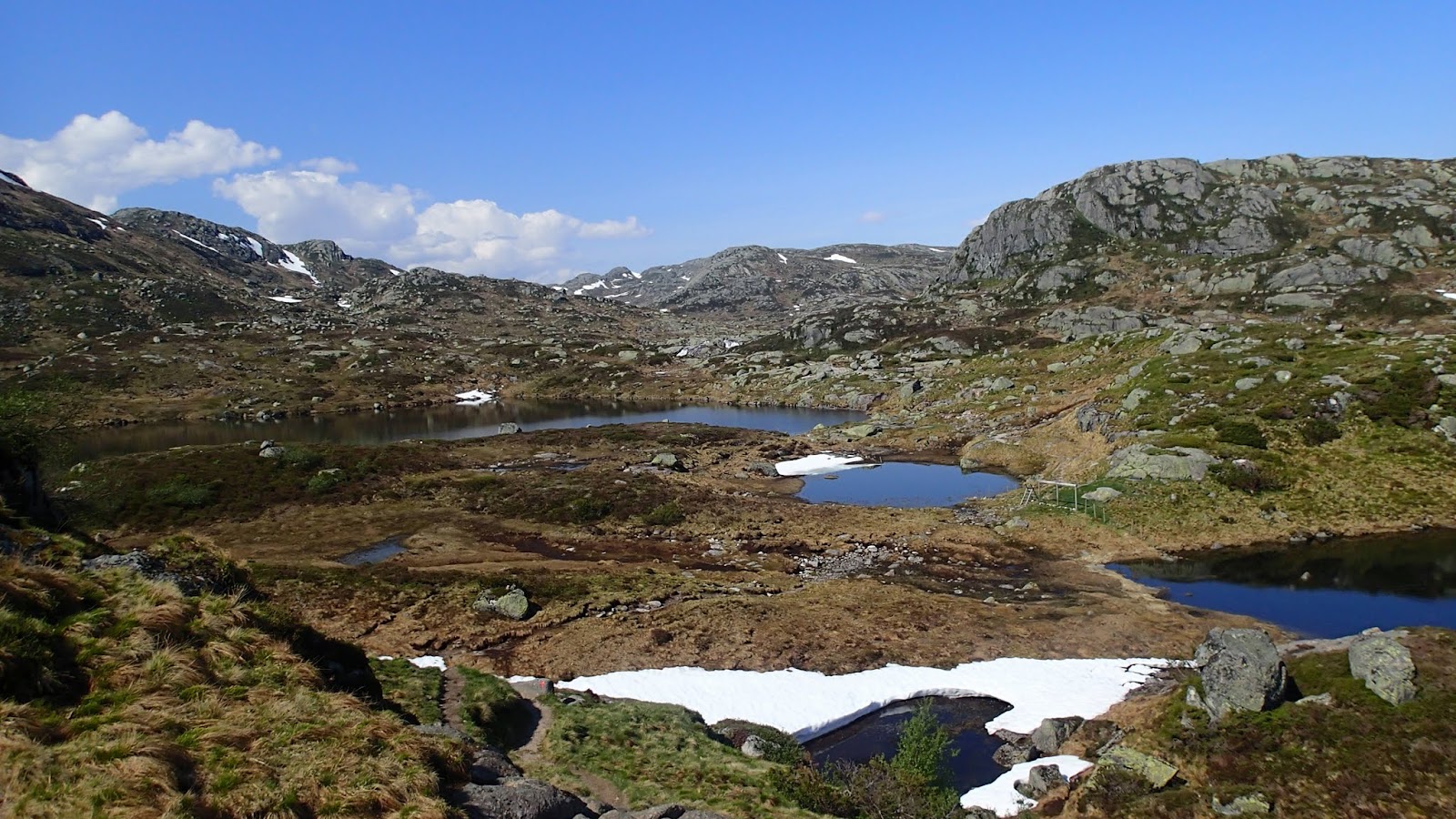REJOHN Skrevet 6. juni 2016 Skrevet 6. juni 2016 Nesten alene i finværet. Med bestyrerinnen på tur til hovedstaden, var det ingen hindringer for en langhelg på hytta. Men hindringer oppstår uansett, muligens. Torsdag regnet det hjemme, men i mengder oppe i fjellet. Veien til Hunnedalen ble sperret av jord og steinras. Mulig omkjøring – Sirdal – minst en time ekstra. Jeg tanket bilen hos GP`en på Sinnes. Det ble senere enn normalt før jeg var klar til å ta fatt på turen innover heia. Jeg slo også av en prat med en gjeng som nettopp hadde kommet ned fra heia og Blåfjellenden. De hadde først fått beskjed om ras og sperret vei på parkeringsplassen, og hadde et par timer å vente på transport. Noen ord om været. Sommer og sol. Flere ord om været. Det var et fantastisk vær hele helga. Sydentemperatur på dagtid, litt kjølig på morgenkvisten. Speilblankt på tjernet utenfor hytta om natten. Men noe vind om dagen– heldigvis, og bare noen få skyer. Hva med snø? Fortsatt fenner, men de hadde minket betraktelig i løpet av en uke. Nå er det bare noen litt lengre snøpartier helt øverst. Selv om Saftbekken fortsatt forseres på snøbru, er det bare dager før denne bekken kan steingås nede ved vannet. Ura rett etter Saftbekken er nok noe mer utsatt. Her ligger det fortsatt en god del snø, men det er greit å komme fram i ura. Jeg gjenoppdager den nødla stien hver vår her. Inne på hytta var det ikke folk i det hele tatt. Tomt. Og det kom ingen så lenge jeg var våken. Morgenen etter var det et telt rett utenfor hytta. Et par, nylig flyttet til Stavanger, og på oppdagelsesferd i våre heier. Været var i hvert fall innen hindring. Det ble litt jobbing, men rundt lunch kom det to karer som hadde startet på Flørli den dagen. De ville ned Fidjadalen. Det var nettopp Fidjadalen som var i skuddet denne helga. Alle som var innom hytta, kom enten opp dalen eller skulle ned dalen – utenom to jenter. Det tok turen opp på lørdagen for å gå tilbake søndag.Jeg trodde lenge jeg skulle bli alene på hytta natt til søndag også. Helt greit det – å være alene på hytta. I finværet skulle flere ha vært på tur. For fint vær? Det kom en gjeng nederlandske gutter – ungdom på rundt 20 skulle jeg tro. Ikke spesielt turvant og ikke kjent med ubetjente turistforeningshytter. Det kom omsider et par fra Hunnedalen. De kunne fortelle at veien gjennom Øvstebødalen var åpen, og at det ikke var nødvendig med omkjøring. Litt for sent til at jeg kunne ta ut – det fikk bli en natt til på Blåfjellenden. Sent på kvelden kom det to jenter opp dalen. Det hadde brukt mange timer i det fine været. Litt usikre på om det var mulig å gå over til Brådlandsdalen og ned. Det ble til at de tok samme vei tilbake.Det ble et par hyggelige timer i selskap med jentene. Det var litt mindre varmt på søndagsmorgenen. Jeg var oppe tidlig og fikk spist frokost, vasket og ryddet før andre sto opp. Før 10 var sekken på ryggen og jeg klar til å ta ut. Helt greit å gå. Merkbart mindre snø enn da jeg gikk inn. Ikke en kjeft å se, men sauene og sauefolkene på Fidjastølen var på vei inn. Sporene var tydelige. Det var antakelig uvandt å gå i varme – jeg glemte å drikke, og nesten nede kjente jeg at kreftene liksom manglet. En kald pepsi max i bilen ordnet den saken.En kjekk og fin helg var over – i strålende vær - hele tiden. Les hele artikkelen 8 Siter