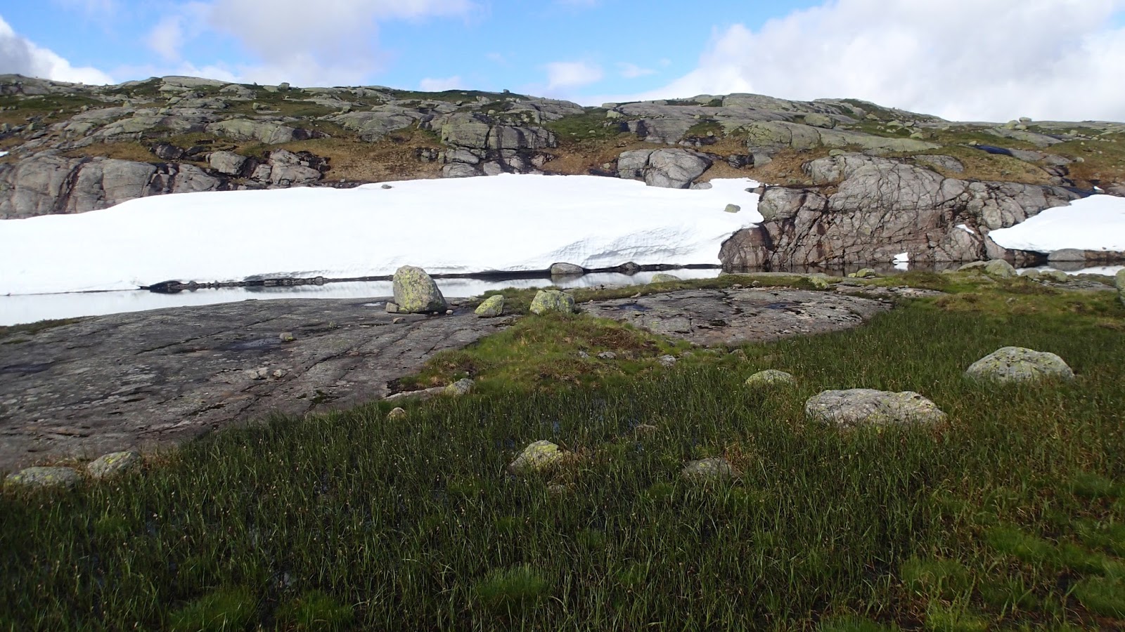 REJOHN Skrevet 28. juni 2016 Skrevet 28. juni 2016 Frem og tilbake- til erstatning for søndagsturen. Det ble ikke tur på søndag. Flere gode grunner – det regnet hele dagen. Og når værmeldingen er raus med godværet på tirsdag hvorfor ikke flytte turdagen? Det er slik vi pensjonister kan gjøre… Nå ble ikke været så bra som de meldte. Det var sol – inne i mellom, men også regn inne i mellom. Og det var litt vind. Med temperatur på rundt ti grader ble det egentlig litt kaldt uten jakke, men det er jo sommer for søren. Jeg hadde valgt langbukse, og takk for det, men blusen fikk være kortarmet. Jeg gikk en tur innover for et par uker siden. Den gang uten å tenke på å nå hytta. Denne ganger var det ikke tvil. Jeg skulle selvsagt inn. Nå var det smeltet mye snø på 14 dager eller så, men fortsatt var det en del fenner som måtte forseres. Det er egentlig små fenner som lettest lager problemer. Og jeg gikk gjennom et par ganger. Stort sett er det nå snøfritt. Jeg sjekket mot tidligere år. I fjor var det vesentlig mer snø 25 juli, altså en måned senere. I 2013 lå det fortsatt fenner i august. Det var nok også mer snø i månedsskiftet juni – juli det året også. Jeg var innover i begynnelsen av oktober i fjor, og fikk da hilse på en gammel kjenning – fjelltjæreblom. Og samme plante dukket opp på dagens tur. Omtrent på samme stedet. Det er kjekt å se at blomstene kommer frem. Og da andre enn myrull, multeblom, og tettegras, som finnes overalt. Lengst inne og høyets opp var det ikke lenge siden vinteren hold favntaket på naturen. Det ble mer fenner, og nær hytta var det klart at det bare var dager siden snøen hadde forsvunnet på flaten. Men nå er sommersesongen også kommet her oppe på 900moh. Det var selvsagt ikke en kjeft på hytta. Hvem skulle være ute og gå en helt ordinær tirsdag? Lærere og andre med lang sommerferie? Jeg har alltid hevdet at hyttene i Frafjordheia er Norges best bevarte hemmelighet når det gjelder hytter i juni-juli. Ubetjente og selvbetjente hytter med bare noen timers avstand. Alle godt utstyrt. Jeg kan ikke skryte av været, men regner og blåser gjør det da andre plasser også. Natt til mandag hadde hytta to gjester, Til min store overraskelse møtte jeg et par som var på vei til hytta. Det vil med andre ord være folk også denne natta. Her er det ikke snakk om lange avstander og turer mellom hyttene. En del av stiene går helt opp på 1100 moh, og med en helt unik utsikt. Turene i høyden går på det som blir betegnet som «det subkambriske peneplan» - granitt, mer enn 600 millioner år gammelt. Ødslig og uten mye vegetasjon. – det heter ikke «Strålaus» for ingen ting… Denne dagen skulle ikke jeg opp i høyden, men ned til bilen. Mørke skyer i sørvest (Sydvest..) betyr regn. Og jeg fikk litt over meg, men stort sett var det opphold og greie forhold. Jeg kunne kjenne at dette ikke var rette dagen for spurt og høy fart. Mange dager med tur og trening kjentes, selv om det ble hviledag på søndagen. Men kjekt var det med en søndagstur på en tirsdag. Les hele artikkelen 4 Siter