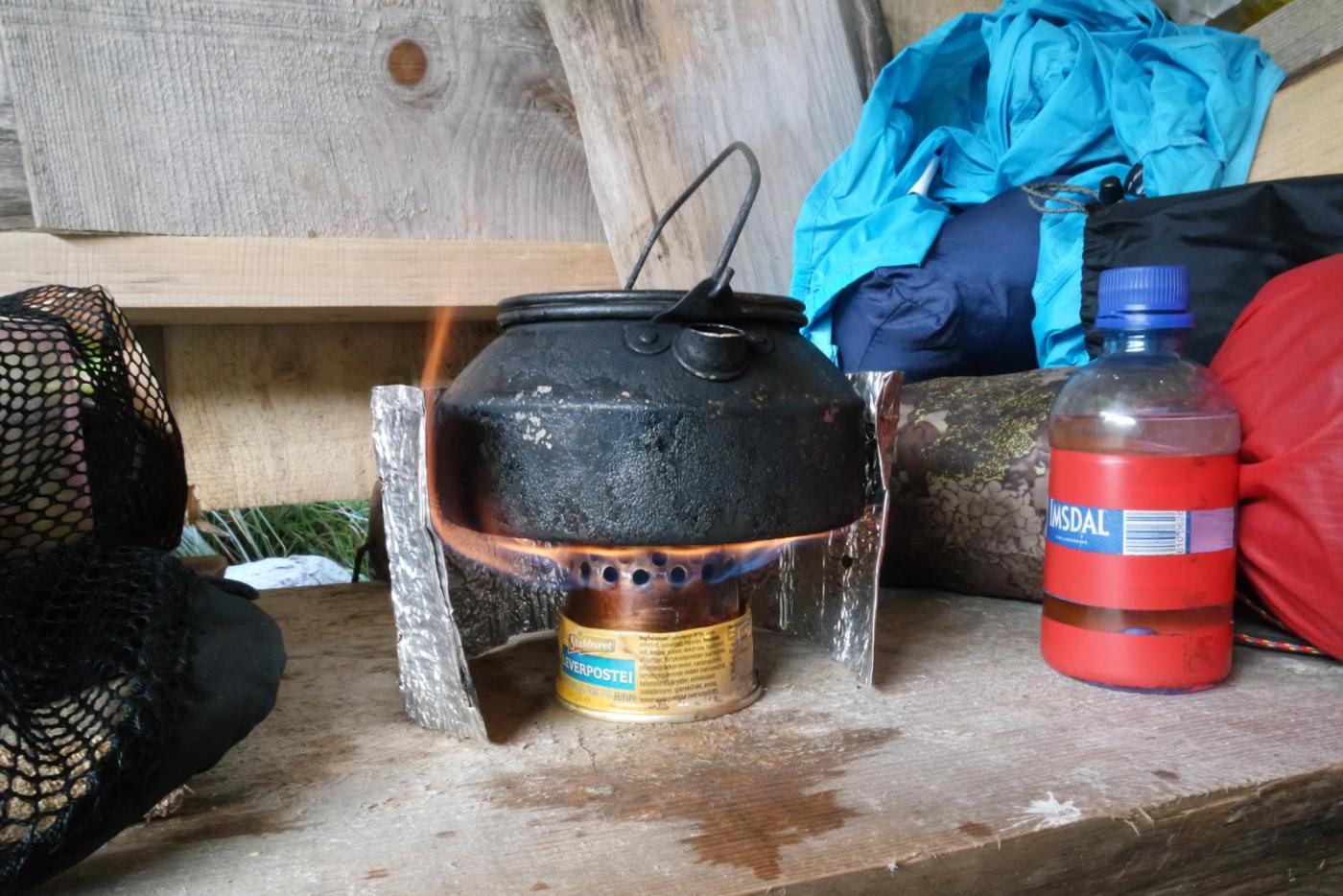 josteink Skrevet 14. januar 2017 Skrevet 14. januar 2017 Kan vera greit å ha kjøken som er tilpassa ulike tilhøve. Har parafinbrenner til vinter, lett gassbrenner til lengre turer og den eg bruker mest på helgeturer og dagsturer er ein heimelaga raudspritbrenner som veg kanskje 30 gram + raudsprit. Brenner er kattematboks, underlag er leverposteiboks og vindskjerm er frå eingongsgrill. Raudsprit er basert på fornybar energikilde (ikkje petroleumsprodukt) og dette er dermed ein svært miljøvennleg brenner. Varmar 1 l vatn raskare enn stormkjøken. Minuset er at brensel veg noko og at det må fyllast på dersom du skal koke masse graut. Men i volum og vekt så er denne heilt super.