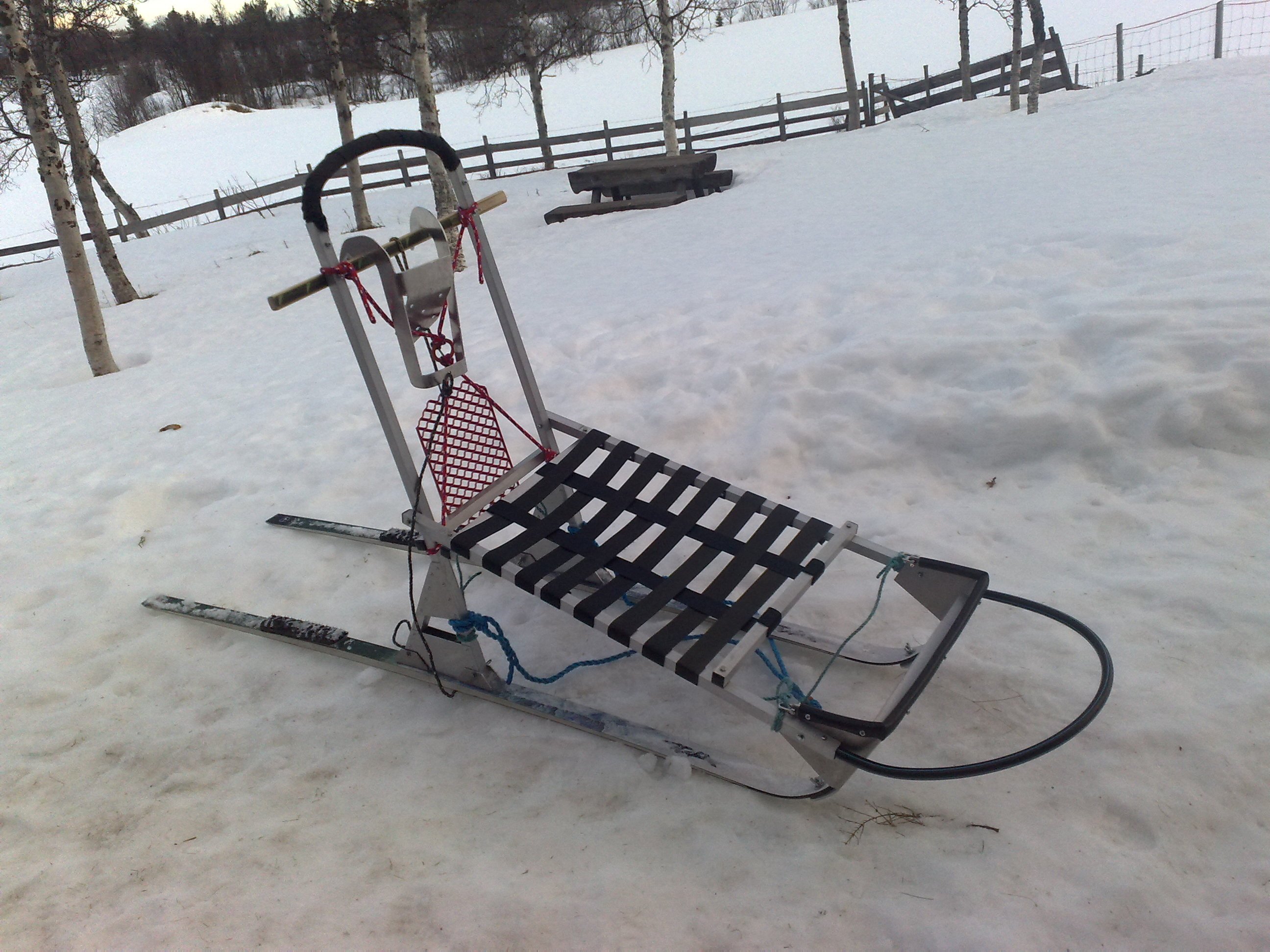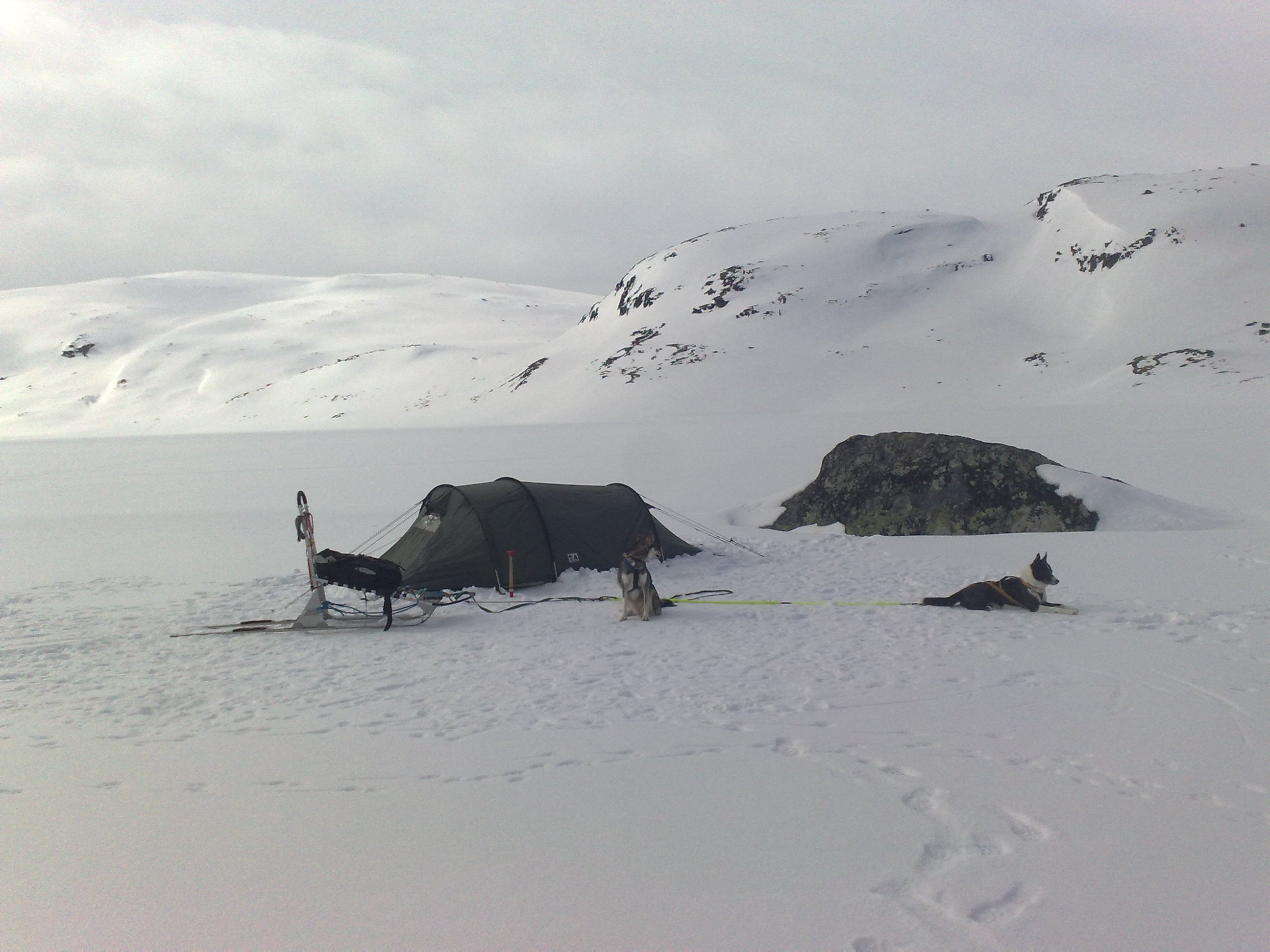 elgen Skrevet 19. januar 2024 Forfatter Skrevet 19. januar 2024 Hei Mine 2 gamle snille huskyer er nå 11 og 12 år og dermed pensjonister og svært late foran en slede! Så jeg har fått 2 ny huskyer. spannhunder i løpsklassen: 30-35 kg, supertrent og umåtelig sterke. De er meget snille, men også meget ville! Og bare en vei: fremover!! jeg har bare hatt dem siden høsten, og de lyder ikke noen kommandoer noe særlig. Ved H/V må de stå og tenke sig lenge om! Det virker ganske komisk, men er upraktisk. Så de vil formentlig IKKE stoppe på noen kommando, hvis jeg faller av sleden. Her må mye trening til! Derfor kjøre jeg nå med et bredt "masteklatrer" belte med en sikkerhetsline (bit klatretau), så lang at jeg ved oppankring kan gå de 3 - 4 m frem og klare liner, når surrehuene har rotet det til. Belte, fordi det tross alt bare er 2 hunder, som nok ikke kan trekke meg (100 kg klassen med klær) og en evt veltet slede. Jeg ville jo nok prøve å få en vanlig 2x2 oppspenning til å fungere. Det bør det også i ubrøytet lende. Ellers 2 i front og 1 + 1?? Jeg kjører en hjemmebygget sprintslede som teknisk er ganske lik Danler sleden (som er en bra slede). Danler har bunnplate, så den bedre kan kjøre i løs snø. Før jeg bygget studerte jeg (industrispionasje) mye RSS sprintsleder. Felles for disse sprintsleder er en "bro" foran, hvor meier/ski kan vippe om en bolt, så skiene kan kantes ved skråkjøring og sving. Jeg bruker et par gamle, lette tur/langrennsski 205 cm som meier. De har litt innsving, så det blir litt styring ve kanting. Jeg gikk for lett vekt ( ca. 10 kg) så jeg har ikke bunnplate og er derfor avhengig av et skuterspor eller tilsvarende. Det er hele tiden tenkt vekt som på sykkel. Så det er 0 bagasjeplass utover å legge en mindre sekk med reservedeler, potesokker, snacks, termos ekstra klær/votter mm. Jg har dog vært på 3 dages telttur med den, da hundene var spreke. Jeg har en "storslede" som jeg er ved å bygge om til "halvtoboggan" dvs med bunnplate ca. 5 cm over meiene. Den består bare av meier, bunnplate, oppstander. Bunnplaten er så ganske (unødvendig) tykk: 10 mm, fordi den visst har vært brukt til passasjer. Jeg skal senere bytte den til ca. 5-6 mm. Det blir noen kg å spare her, for plastmaterialet har ganske stor egenvekt. Jeg vil anbefale å se litt på andre sleder også fx Bjørkis, Oinakka, ( noe rimeligere) google hundeslede. En del brukte på Finn også, men noen der er vrak. "Finnmarksvetterne" har sikkert hjulpet Kasin?? Jeg skal lese om det! Elgen 1