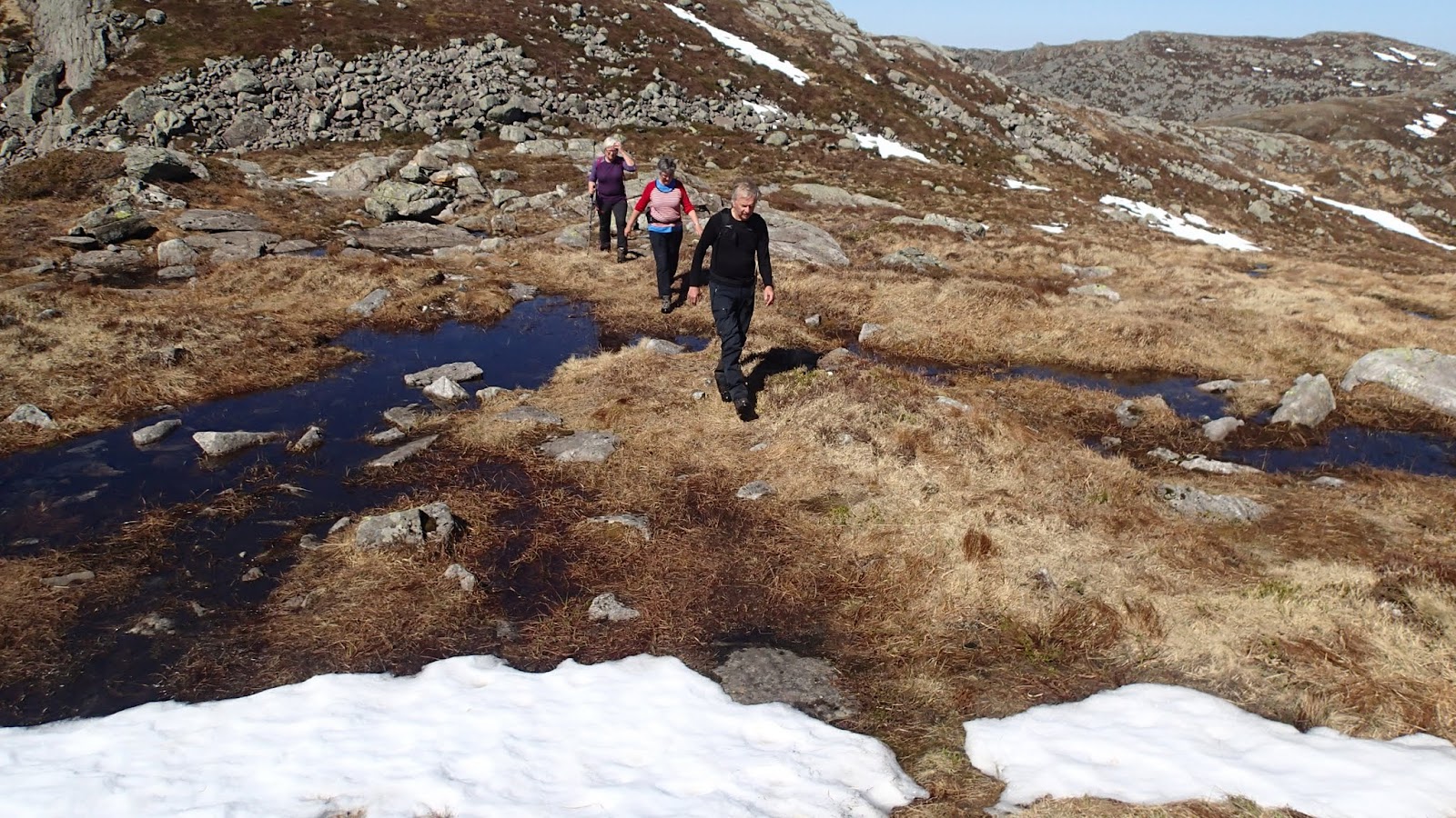 REJOHN Skrevet 8. mai 2017 Skrevet 8. mai 2017 Sammen med den gode gjengen. Denne dagen var det svoger, svigerinne, bestyrerinne og - meg, som skulle på tur. Tidlig søndags morgen, spurte Svoger og det ville være mulig å bli med på søndagsturen. Det var ikke bare mulig men svært kjekt at svoger og svigerinne ville være med. Vi skal sammen til alpene en uke i sommer. I følge Helge - reiseleder, bør vi være i grei form for å ha virkelig glede av oppholdet i alpene.Det betyr treningsturer. Siden bestyrerinnen fortsatt er i "fast arbeid" og ikke pensjonist, så må turene helst gå på søndagene. Det har blitt noen turer så langt denne våren.Alt lørdagskveld, etter en sjekk av værmeldingen, ble det kart at Vådlansnuten ville bli søndagens turmål.Værmeldingen var klar på at det ville bli en fin dag. På morgenen hjemme var det ikke like sikkert. Overskyet eller tåke var det som vi ble servert. Med bakgrunn i erfaring, mente vi alle at det ville være blå himmel i heia. Og det var vi fikk. På parkeringsplassen var det varmt og ikke en sky på himmelen.På grunn av andre forpliktelser, måtte vi avgårde tidlig. Svoger og frue stilte velvillig opp - tidlig.Tørt i bakken og lite vind, gjorde i hvert fall starten på dagen til omtrent perfekt. Det er kjekt å gå når alt stemmer. Fredelig, nesten bare lyd fra småfugler og bekken. Ingen andre, selv om det var en del biler på parkeringsplassen.Godt turfølge og passe fart. Det gir en god start.Nå er ikke turen opp til Vådlandsnuten av de lengste eller tyngste, men så avgjort en "søndagstur" på oppmot 4 timer. Det g ir ikke mye mer enn 2,5 kilometer i timen, men her er terrenget så pass "tungt" at det er greit nok.Første turen oppover, gir som regel en liten overraskelse når det gjelder snø. Nesten alltid på første turen, og gjerne på andre turen også, ligger det snø i stien. Spesielt øverst. Toppen er jo tross alt på 802 meter over havet. Slik var det også i år. Den øverst fonna, i den lille dalen mellom Vådlandsnutene, var på plass. Bratt som vanlig....Det var ikke mange utenom oss denne dagen på tur mot toppen. Vi møtte en håndfull - nok så nøyaktig. en av de vi traff, ansatt i Klepp Kommune, vår kommune, må være i mer enn bra form. Han hadde startet ved Madlandsvannet, og gått opp Tverromdalen, og da vi møtte ham ovenfor inndra Fisketjønn, hadde han ikke gått mer enn ca 3 - 4 timer. Sprekt gjort.Det skyet til utover dagen, og det kom noen små svarte skyer innover heia. Vi lurte på om det ville komme regn, men turen gikk uten nedbør. Det var noen øyeblikk med sol, hvor det var sommer, og hvor jeg savnet kortbuksa.Tidlig på 70 tallet tok jeg noen bilder fra en tur i samme området. Jeg tok noen nye bilder for sammenlikning. Den største endringen er selvsagt Fisketjønnbu som nå er vekk. Dette var en mye benyttet hytte på 50 og 60 tallet. Det var kø utenfor Turistforeningen for å sikre billetter til hytta i helgene.Om vinteren var det snø i Madland. Det var utfartsområdet for store deler av regionen. Folksomt var bare fornavnet. Det var kø av biler ned til gårdene på Madland.Bare historie i dag, men det er håp om at Madlandsheia igjen blir et utfartssted. I hvert fall virker det som om det blir mer og mer folk. Og flere tar turen rundt Rolighetsdalen og Hanklatjørna enn før. Det hjelper å T-merke stiene ser det ut til.Les hele artikkelen 5 Siter