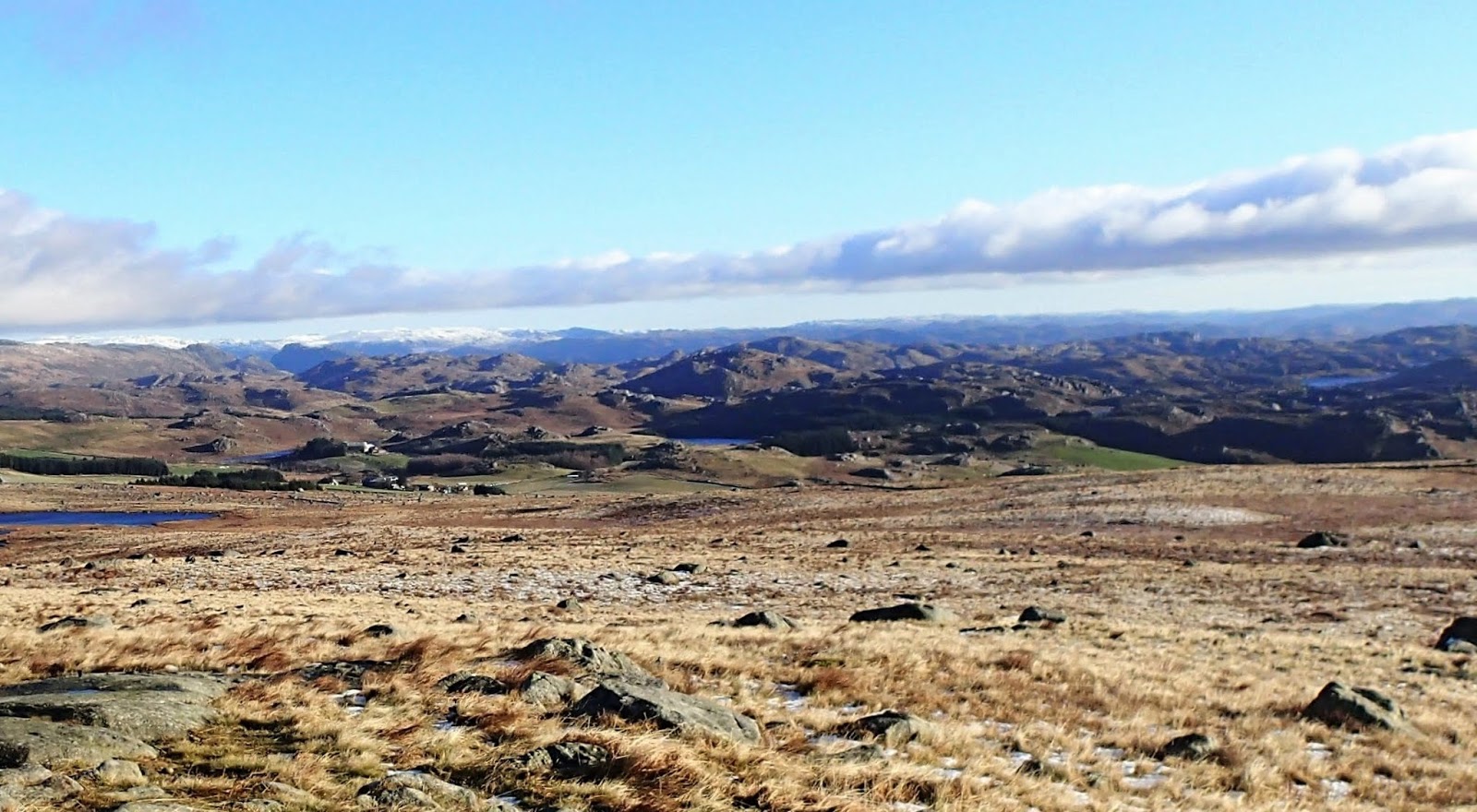 REJOHN Skrevet 13. november 2017 Skrevet 13. november 2017 En fin tur med Bestyrerinnen. Alt på lørdag var det klart at vi - bestyrerinnen og jeg - skulle på tur søndag. Værmeldingen var god, uten regn, og helst sol store deler av dagen.Hva som ikke var like klart, var hvor vi skulle ta ut. Oppe i høyden ville det være snø og vinter. Langs stranden var jeg på lørdagen.Vi ble enige om at det måtte være mulig å gå rundturen på høgjæren. Skulle det være for mye is og snø, kunne vi jo kjøre ned til stranden og ta en tur langs sjøen.Hvor mye is og snø er "for mye"? Det var en hel del på parkeringsplassen ved Holmavatn og så avgjort ikke mindre det første stykket mot Steinkjerringå. Nå er det egentlig ikke noe problem å komme fram selv om det er både snø og is. Det tar bare lengre tid. Denne dagen hadde vi tid.Selv om det var nesten hvitt, så var ikke myr og mark frosset. Tråkket vi feil var det langt til bunn av myra. Vi ble godt skitne oppover buksebeina.Merkelig nok, med tanke på at sola skinte, så var det ikke mange spor mot Steinkjerringå. Det er her v i som oftest treffer folk. Ofte omtrent et 17.mai tog - uten flagg og faner...Rett etter start, bare et lite stykke oppover lia, så bestyrerinnen en stor fugl, og spurte hva det var. Den flakset mot vinden og det var ikke umidelbart klart hva det var, men da den kom seilende nedover, kunne vi se at det var en ørn, mørk med litt lyst på vingene. Den seilte ned mot enda en ørn. Det er kjekt å få oppleve slike ting, selv om det er blit mer vanlig etter hvert. Vi tok igjen mor og datter på 9-10, og så ikke andre folk før helt ut mot statuen. Til gjengjeld kom det mange folk i mot på vår vei mot Synesvarden Her var det langt mer folk enn vanlig.Det blåste ganske friskt, med temperatur ned under 4-5 grader var det helt greit å ha på vinterklær. De fleste som kom i mot hadde hetta godt på og tett rundt ansiktet. Men noen hadde lave sko, joggesko. Ikke helt det rette denne dagen. Det var ganske enkelt ikke mulig å komme fram tørrskodd med lave sko...Vi stoppet opp på toppen av Synesvarden. Det var klar sikt og det var mulig å se langt innover heia, og tilsvarende langt til havs. Klar kald luft, gir gode bilder.Vi snakket med en del av de som kom mot oss. De fleste bemerket at det ville være sorpe myr og våt sti på vår vei videre. Med andre ord var det slik hele veien rundt.Noen hadde gjort forsøk på å rette på forholdene. Det var laget nye gangveier på noen av de dypeste gjørmehullene både mot Steinkjerringå og mellom Synesvarden og Holmavatn. Skikkelig greit, for det er ikke mye igjen av stien som ble anlagt for noen år siden.Det er kjekt å være med bestyrerinnen på tur. Det har etter hvert blitt en del turer sammen, og jeg håper det blir fler. Dagens tur fikk meg likevel til å tenke på hvordan tingene utvikler seg. Med kneet ute av lage, blir det kortere og færre turer. Det har ikke bestyrerinnen noe ansvar for, og det er helt greit å ta på tur selv om den ikke er like lang og tøff som tidligere.Jeg håper likevel at tingene går seg til og at det til neste år igjen blir mulig med noen "lang"turer. Jeg savner virkelig muligheten til å ta på tur når været og viljen er på plass. Les hele artikkelen 3 Siter