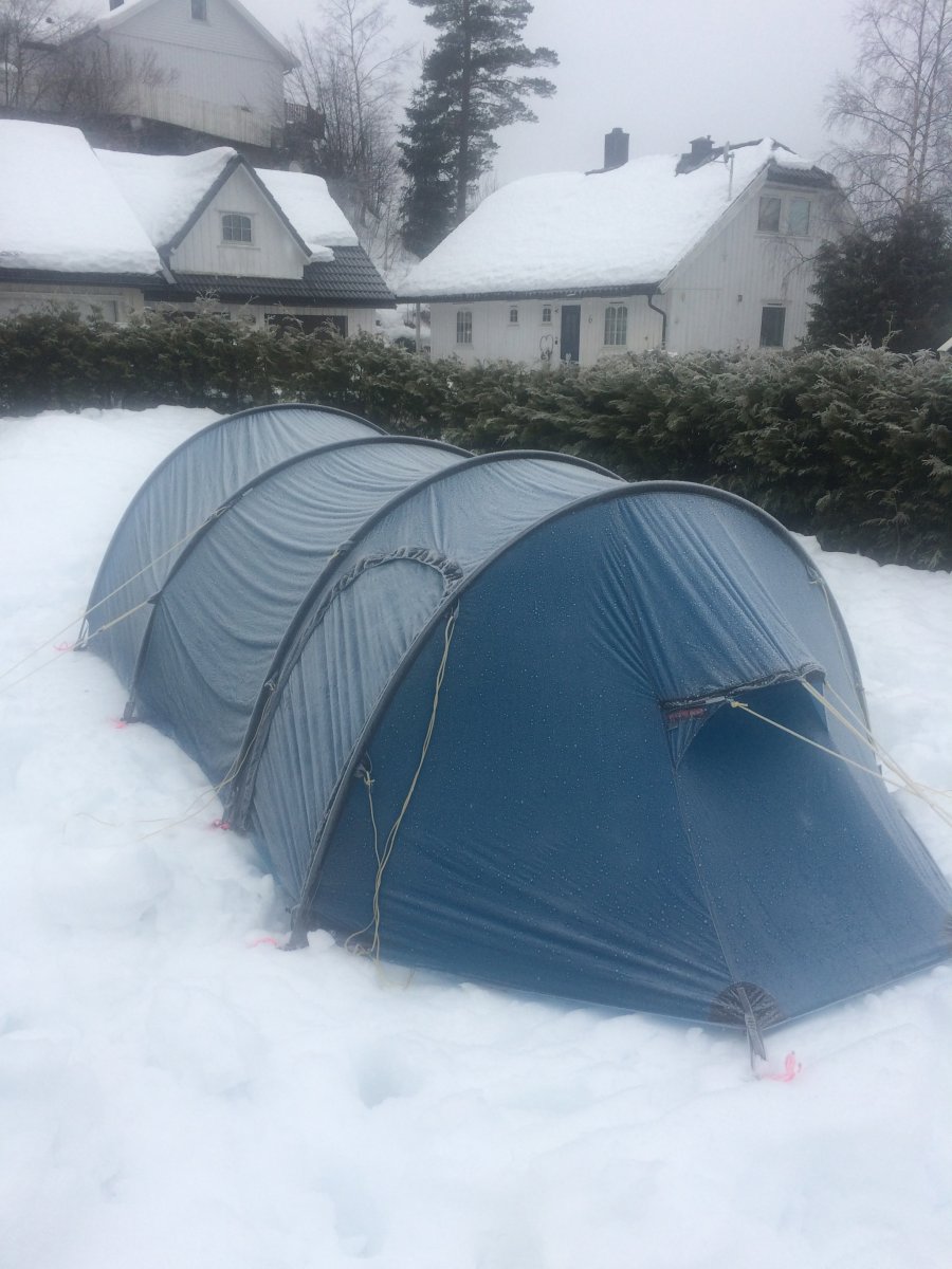 Tips til et dryler av et telt.