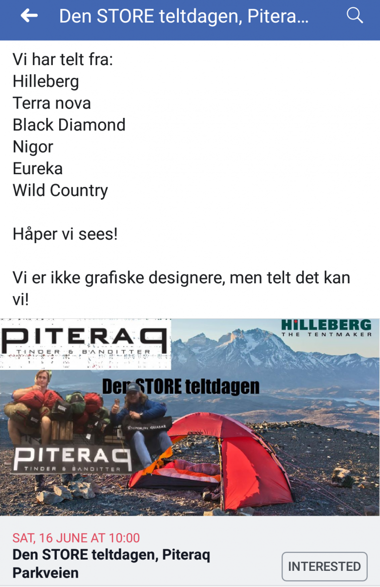 Terka Skrevet 14. juni 2018 Skrevet 14. juni 2018 Tinder og Banditter har 20-25% på Hilleberg førstkommende lørdag i Oslo. Verdt en kaffe og teltprat med dem om du er i området. 1