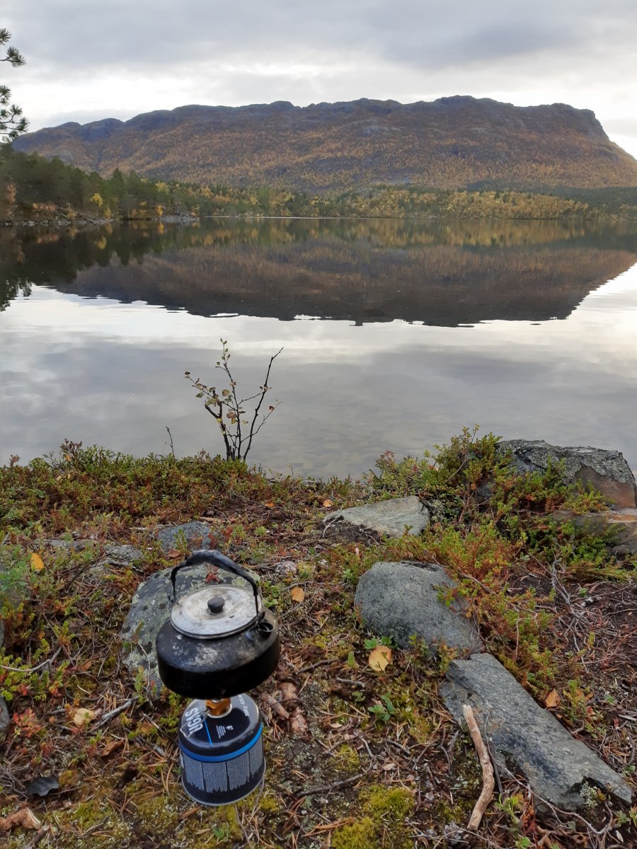Anders P Skrevet 4. oktober 2019 Skrevet 4. oktober 2019 Eg bur i Finnmark for tida og var på jobbreise til Alta. Alta har to hotell og av ein eller annan grunn kanskje ubevisst og kanskje bevisst så var eg seint ute og alle hotella var difor fulle. Å bu på hotell er jo gøy ei stund, men etterkvart er hotell og hotellas luksus slik som med penger og andre ting at ein må ha meir av det for at ein skal få same effekt. Så eg har blitt litt lei. Sidan hotellrom uansett ikkje lenger var aktuelt kunne eg ha budd på ein campingplass eller gjestgiveri eller noko i den duren. Men det freista heller ikkje. Løsningen på det heile var å bu i telt. Eg tok med meg mitt nyinnkjøpte knallrøde Hilleberg Saitaris telt og budde eit lite stykka utanfor Alta, nemleg i Kvenvik. Her ser dykk kor Kvenvik ligg i forhold til Alta: https://norgeskart.no/#!?project=norgeskart&layers=1002&zoom=10&lat=7780126.65&lon=812359.58&markerLat=7778360.10330394&markerLon=809662.1575330137&panel=searchOptionsPanel&sok=Kvenvik Og her ser dykk litt meir presist kor eg budde: https://norgeskart.no/#!?project=norgeskart&layers=1002&zoom=13&lat=7777741.28&lon=810722.61&markerLat=7778360.10330394&markerLon=809662.1575330137&panel=searchOptionsPanel&sok=Kvenvik Eg budde midt mellom Kvenvannet og Kvenvikvannet. Kurset varte i to dager, ein mandag og ein tirsdag. Eg tok båt frå Hammerfest til Alta med båt på søndags kveld. Og tok så taxi til Kvenvik. Der var det bekmørkt og eg gjekk to-tre kilometer på skogvei. Fann så ein fin rasteplass ved eit vann, ein meter ifrå vegen og slo opp det ganske store teltet mitt. Dagen etter tok eg turen til Alta med taxi, og etter kurset drog eg tilbake igjen til min lille bolig og steikte pølser og såg på naturen og tenkte djupe tanker. Dag 2 gjorde eg akkurat det same. Så drog eg heim til Hammerfest om natta og var framme i Hammerfest i halv tre tida. Dette var eit lite eventyr og eg syntes det var ei meir minneverdig oppleving enn om eg hadde budd på hotell, for ikkje å snakke om gjestgiveri/campinghytte med felles bad etc. Elles la eg også merke til at 1) eg kan bære veldig mykje vekt ein dag eit begrensa antall kilometer og 2) eit større telt føles mindre kummerleg ut, spesielt i kulde. Det store teltet er jo ikkje varmere pr. se, men det at det var litt meir boltreplass i det teltet enn i Aktoen gjorde at eg trivdes betydeleg betre. Eg kjem til å legge med nokon bilete i ein post under viss det skulle vere av interesse. 8