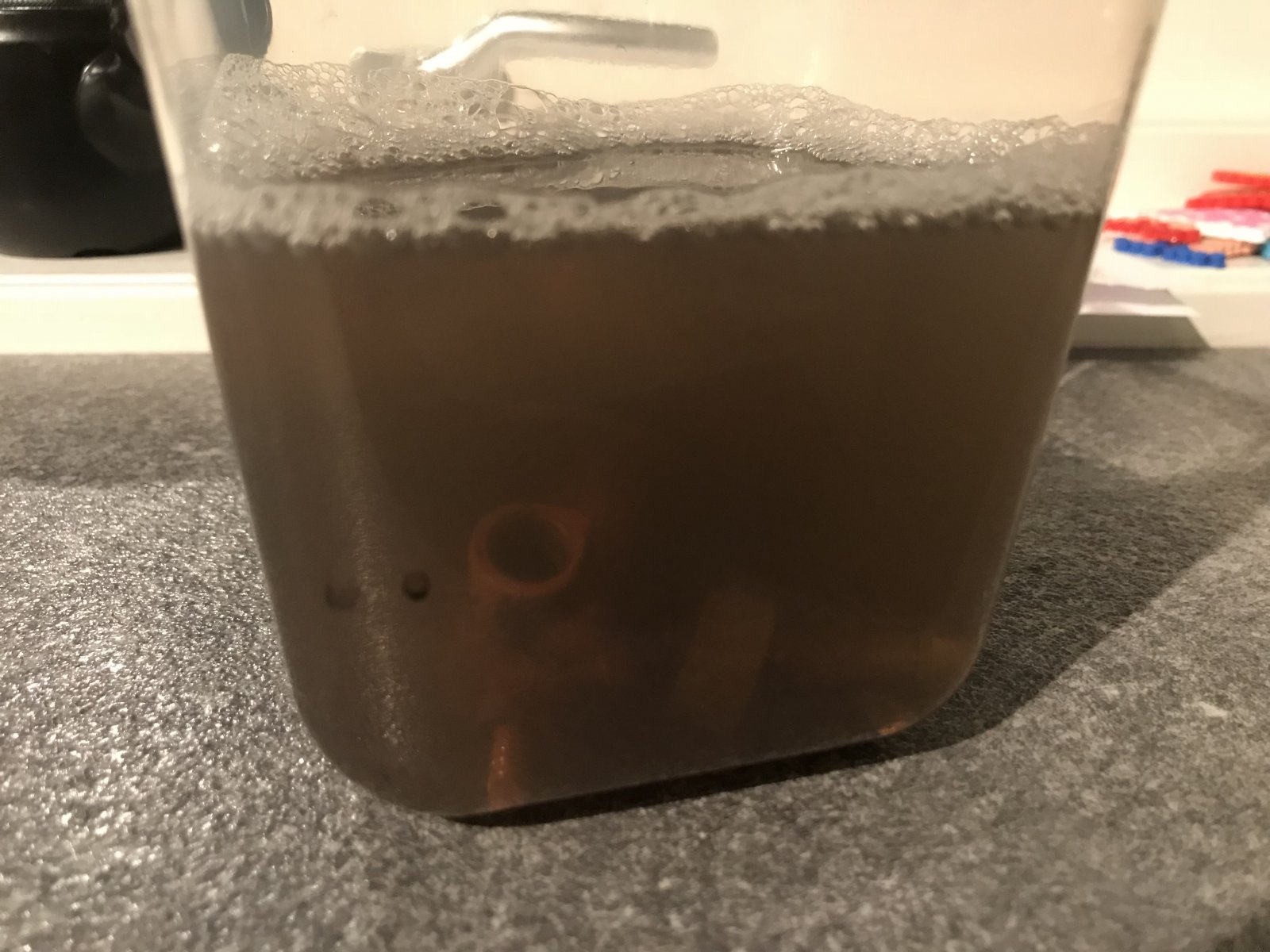 Her er bilde av brenneren som tilsynelatende var ren og pen, nedi blandingen som faktisk løser opp sot! 30 minutter: