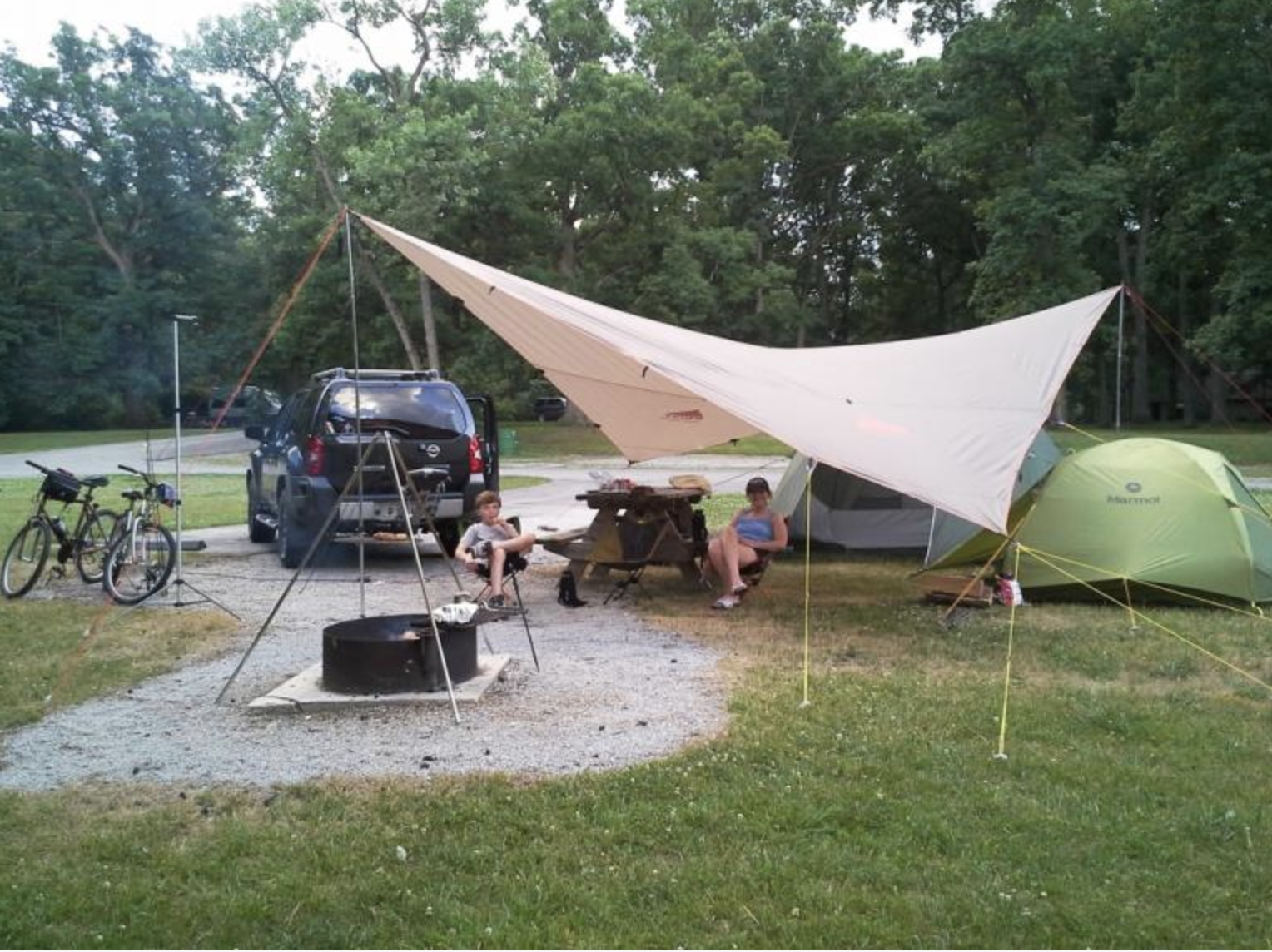 Ikigai Skrevet 10. juni 2020 Skrevet 10. juni 2020 Hei. Må si det hørtes ut som en trivelig sommerferie! Jeg bruker en Hilleberg Tarp 10 UL som jeg så langt er meget fornøyd med. Kjøpte den først og fremst inn som alternativ til markise/awning på en lengre biltur. Når jeg valgte størrelse så gikk jeg for 10 (3,5 x 2,9m), kanskje mest fordi den da ikke ville føltes for stor å bruke på tur alene (slik at den ikke bare ble liggende i boden etterpå). Det jeg liker med Hilleberg-tarpene er at duken er av god kvalitet og det følger med barduner med tilsvarende strammere som på teltene. Da er det bare å plugge ned og justere i etterkant. Nå vet jeg ikke hvor mange dere er, men det er mulig at Tarp 20, eller en tarp av lignende størrelse av et bedre valg for dere. Finnes også helt sikkert noe rimeligere enn Hilleberg der ute. Det jeg liker med Tarp er at det ikke finnes noen fasit på hvordan den settes opp, og det kan justeres ut fra behov. Jo mer beskyttelse jeg ønsker fra været jo lavere blir den satt opp, og med mer vinkler slik at vannet får rent av. Er det fint vær, lite vind og målet er at den skal gi skygge så kan den festes høyere med mindre vinkler (gir større overflate). Gjerne korriger meg, men antar at det formålet kan være litt av alt? Beskytte mot sol, men også regn om det skulle komme en regnskur, og at du ønsker å sette tarpen opp én gang og så ikke behøve å gjøre noe mer med den? Jeg har sett at mange trekker tarpen langt over selve teltet. Personlig ser jeg ikke noe poeng i det da teltet allerede tåler vann. Så det første jeg ville tenkt på er å maksimere areal tarpen dekker utenfor teltet. Kan gjerne være overlapp med inngangen. Mulig det bråker litt ekstra hvis det regner på natten og større vanndråper fra tarpen triller ned på teltduken, men det er ikke noe jeg ville prioritert. Det går nok fint å feste tarpen til teltet, men jeg ville funnet en annen løsning så teltet og tarpen ikke gnager mot hverandre og slik at det du får ordentlig spenn på tarpen uten å belaste teltet. Personlig ville jeg gått for en A-frame løsning med en forhøyet side. A-frame blir som et tradisjonelt saltak, med to høye punkter i hver ende (parallelt med teltet) og to sider som går ned (et mot teltet og ett utover). På siden som går bort fra teltet så kan den forhøyes for å gjøre det enkelt å gå inn og ut uten å krype. Noe ala dette bildet. Bare se for deg at den bakerste stangen der er borte, og at det er der teltet står. Behøver heller ikke å være så høyt. Skjermbildet er fra en video av en Hilleberg 20 i Japan, hvor de forøvrig kan glamping (https://www.youtube.com/watch?v=owBBktbaJcQ). Jeg har to Hilleberg tarp-stenger som gir en maks høyde på 210 cm, men justerbar ned til 124cm. Her kan du bruke nesten hva som helst. Har du en stokk/pinne eller lignende så bare surrer du bardunen rundt stokken før du fester den. Er det vekt i stokken så krever det mer av pluggen, så lavere vekt er bedre. Et annet tips er å ha med f.eks. justerbare skistaver eller lignende. Når du skal feste bardunene så blir det mer plass under tarpen jo lengre borte bardunene er festet. Men hvis du ikke har så altfor mye plass ved leirplassen så kan du trikse dette til med å feste bardunen rundt en skistav eller lignende slik at du får et høyt punkt nært tarpen og kan feste pluggene tettere på. Ellers er det bare å være kreativ. Et alternativ til A-frame kan være å feste tarpen i hjørnene mellom to stenger. Da får du stort areal som dekker godt mot sol, men kanskje noe mindre beskyttelse for regn. Lykke til! 2