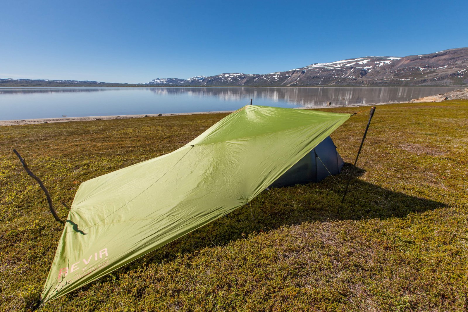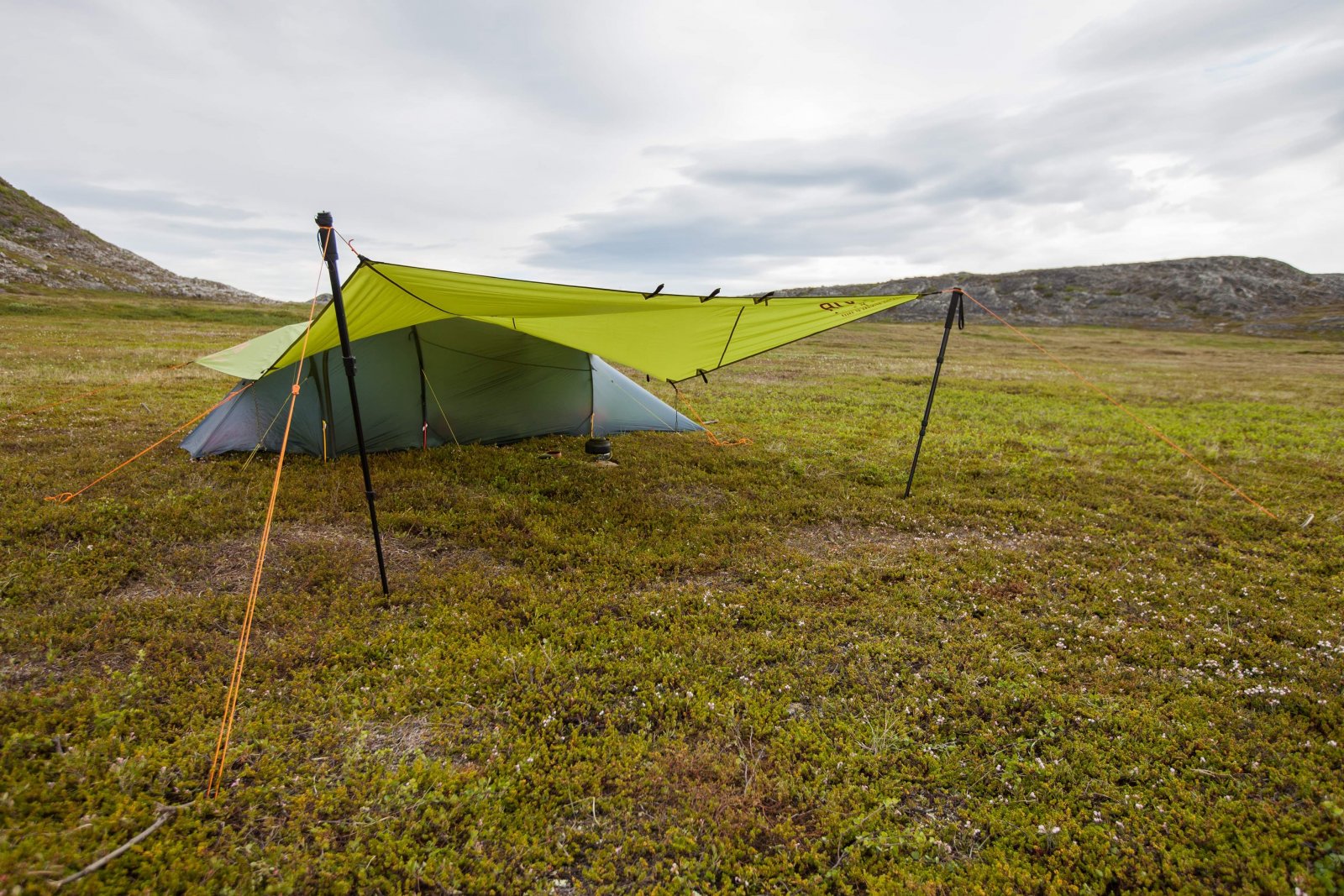 +Espen Ørud Skrevet 15. juni 2020 Skrevet 15. juni 2020 Jeg hadde denne tråden i bakhodet og i helgen fikk vi nytte av forskjellige måter å rigge tarp på i forbindelse med telt så derfor tok jeg noen bilder. Det var spådd mye sol i helgen og siden vi befinner oss i Nord-Finnmark så er det gjerne sol døgnet rundt. Derfor dro vi med tarmen for å lage skygge for teltet og dermed sikre noen ekstra timer svettefri søvn. Pga myggen er det gjerne lite hensiktsmessig med åpent telt og da blir det fort varmt i innerteltet. Tarpskygge sikrer noen timer ekstra søvn om det planlegges og settes i riktig retning... Utover søndagen skulle det vise seg å dukke opp litt uanmeldt regn så da rigget vi om til regnmodus. Gåstaver er glimrende til å benytte som stenger, men siden jeg skulle ta noe bilder hadde jwg med et ettbeins fotostativ. Med tanke på tarpen tok jeg med ett ekstra da de er kanskje lette ettersom vi ikke visste om det var stokker tilgjengelig på plassen. Av erfaring så ttekkes vanlige plugger opp av bakken om det blir mye vindbelastning. Derfor spikret vi noen ekstra lange og grove plugger av trevirke funnet på stedet og disse ble behørig banket ned: 2