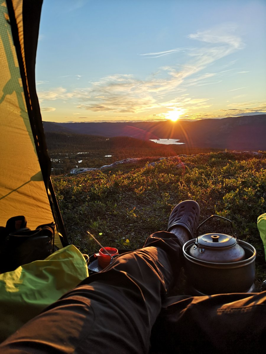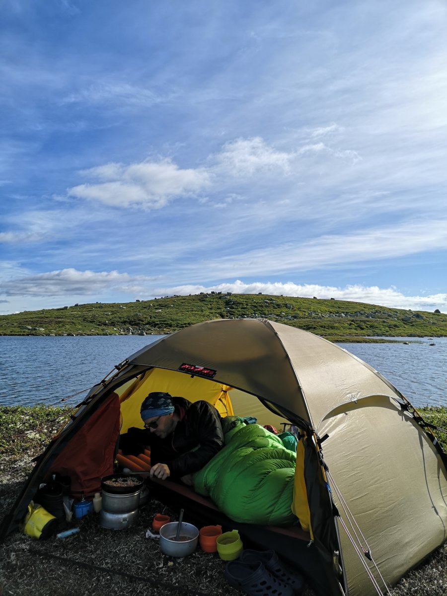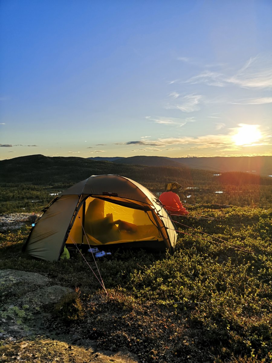 Populært innlegg +Bjellesau Skrevet 14. juli 2020 Populært innlegg Skrevet 14. juli 2020 Sørbølfjellet i Flå er Hardangervidda i miniatyr fortalte den trivelige taxisjåføren som kjørte oss fra Flå sentrum og opp til Røde kors hytta på Veneli. Onsdag 08.07 klokka 19:00 starter jeg og kona årets første fjelltur, som skal følge deler av Vassfarstien fra Veneli, over Sørbølfjellet og ned til Gulsvik. Omtrent 30 km fordelt på 5 dager. Et kraftig overtråkk for 4 uker siden gjør at turen må gå i Lasaron-tempo med fiskestang og kryssord. Med støttebandasje rundt venstre pote vandrer vi i vennlig fjellskog med myrull og summende mygg rundt oss. Over Veslefjellet bestemmer vi oss for å krysse myrene og følge stien over tregrensa før vi slår leir. Mer vind, mindre mygg og nydelig utsikt til solnedgangen. En sterk kandidat til fotokonkurransen "crocs i solnedgang" Neste dag våkner vi til blå himmel og deilig vær. 200 høydemeter skal nedlegges før vi er oppe på platået. På vei oppover skyer det raskt over og vinden stilner helt. Mygg og fluer er på oss så snart vi stopper opp, så vi går uten pause til vi kommer til et sjarmerende lite tjern på vel 1200 meter. 4 kilometer og begge er klar for lunsj. På grunn av mygg og noen lumske skyer setter vi opp teltet på en flat høyde ved tjernet. Etter en matbit blir vi bare liggende der og ender opp med å slå leir for dagen. Etter litt trøstespising av tørket frukt blir det en tur rundt til forskjellige nabovann med fiskestanga. Som regel er dagsetappene mine mye lenger, og da blir det lite tid og energi til fisking. Så egentlig ganske fint dette: Denne natten drømmer jeg så levende at jeg oppdager et hull like ved ventilen på Exped liggeunderlaget. Og selvsagt våkner jeg på morgenkvisten med ræva på bakken. Etter noen desperate minutter med visuell inspeksjon må jeg etter frokost frem med såpe og vann. Hullet lokaliseres på det siste området jeg såper inn. Lim og lapp. Tørke tørke såpe... Og så kommer de lumske skyene igjen Så lumske at regntrekket må på: Men regnet uteblir på mirakuløst vis og vi fisker oss fra vann til vann. Og i vann 1221 ved hytta Harehopp blir det endelig fangst. Mye vak og napp. Mister 2 fisk, så det blir bare 1 som havner i panna sammen med sopprisotto. Etter Harehopp-hytta blir det mer og mer stein i terrenget. Jeg kjenner den dårlige ankelen blir sliten over steinfeltene og er veldig forsiktig her. Har ikke lyst til å vrikke ankelen på nytt. Vi ender opp ved tjern 1160. Mye rennende vann og flat og fin leirplass. Det blir egg og bacon til frokost neste morgen. Jeg har tørket egg i dehydtratoren min, kjørt det til pulver i kjøkkenmaskinen og er spent på om det blir noe eggerøre å skrive hjem om...Overraskende god, men ikke helt som ferske egg. For å unngå en alt for lang siste etappe på søndagen så ser jeg at vi i alle fall må gå til Fekjaløken ved 963 i dag. Da har vi i det minste en plan for dagen, i motsetning til de 2 foregående der vi uten mål og mening virkelig fant fjellroen. Det er et mektig og flott landskap når vi nærmer oss Ørneflag. I det nydelig været bestemmer vi oss for en avstikker til toppen av Ørneflag. Lett stigning og etter 20 minutter er vi ved toppvarden. Tilbake på stien igjen runder vi Ørneflag. På østsiden er fjellet bratt og knudrete i motsetning til den grønne bølgende nord-vest siden. Det er et storslått og lettgått terreng fra Ørneflag og ned til Fekjaløken. Og akkurat der tregrensa starter står en staselig fjellfuru, som har vokst seg mye større enn alle de andre. Det er ikke tvil om hvor teltet skal stå. Her er det super utsikt over til Norefjell. Vi sover veldig godt sammen med det gamle treet og det svake bruset fra elva. Sørbølfjellet har vært et hyggelig bekjentskap, og ligger bra til om en skal reise fra Oslo. Med kollektivt er det knappe 2 timer med tog eller buss. Så får en velge om en skal gå opp på fjellet for egen maskin, eller ta taxi som vi gjorde. Jeg betalte rundt 450 kr. for turen. Det er bomvei opp, og jeg er litt usikker på parkeringsmuligheter. Nesten ikke noe snø der. Nesten ikke noen folk der. Siste dag blir en ren transportetappe nedover grusveier og hyttefelt, og nede i Gulsvik ligger Hallingporten kro, der vi avslutter med middag. Etterhvert føler jeg på en måte at jeg kjenner meg igjen her. Plutselig husker jeg en episode av Åndenes makt, der Lilli Bendriss renset opp hele Hallingporten. Hun har tydeligvis gjort en god jobb, for her var det ingen skygger lenger... Vis rapporten i Turkartet Vis større kart 14