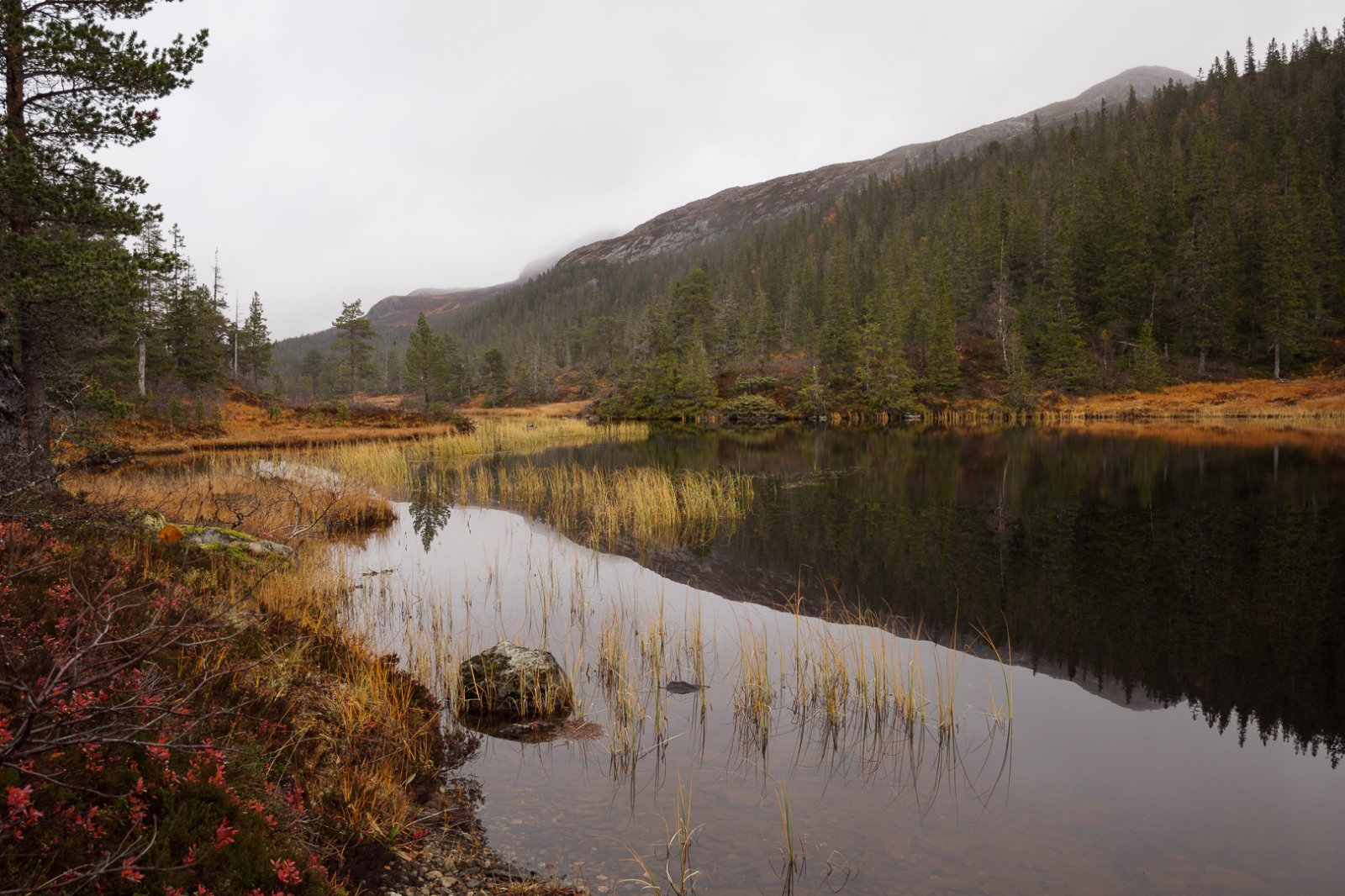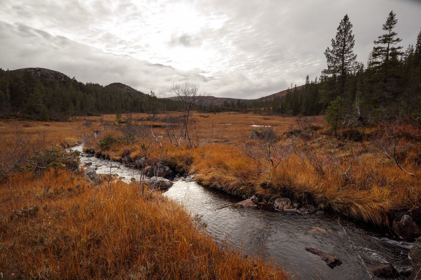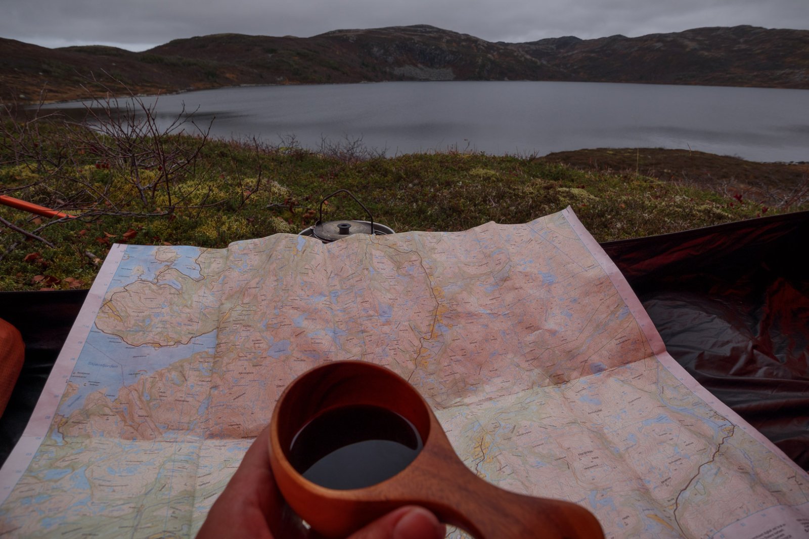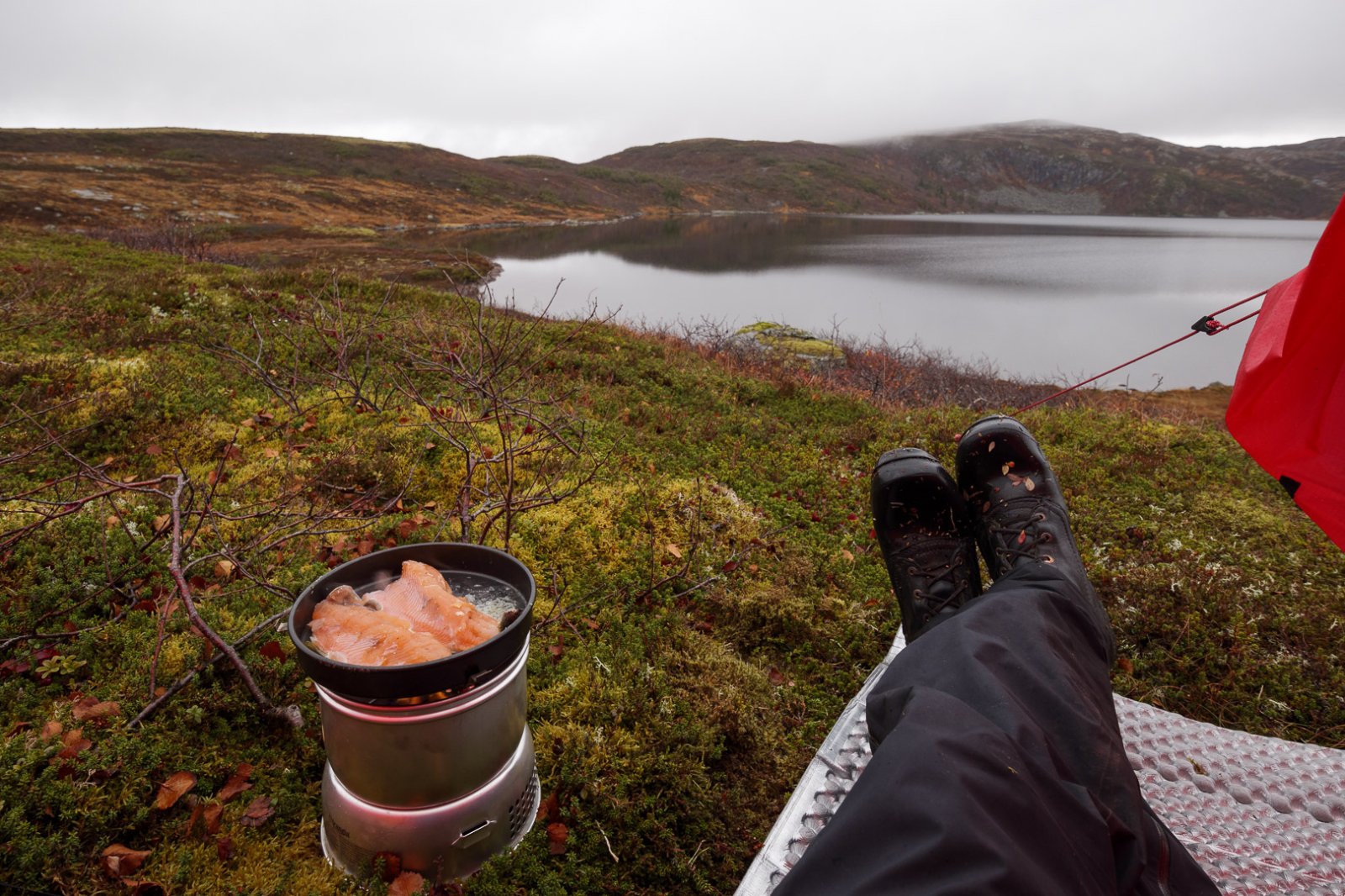 Populært innlegg +ketilring Skrevet 21. oktober 2020 Populært innlegg Skrevet 21. oktober 2020 Årets høsttur ble en liten rundtur i fjellområdene mellom Sørdalen og Stordalen i Åfjord. Vi kjøpte en liten hytte øverst i Sørdalen i fjor høst, og turen ble startet og avsluttet her. Det ble ikke så mye tid til å utforske områdene nord for hytta i sommer (ble Børgefjell i stedet) så målet var å traske litt rundt og sjekke terreng og fiskevann, og kanskje ta en tur opp på Dåapma og Finnvollheia dersom været tillot det. Det gjorde det imidlertid ikke; det tradisjonelle trønderske høstværet med lavt skydekke og regn slo til som vanlig, så turen ble ikke fullt så lang som planlagt. Det ble to overnattinger i fjellet og to på hytta. Dette er en liten bildereportasje fra turen. Dag 1 Relativt pent vær denne første dagen faktisk. Bruker formiddagen til å pakke sekken, og legger i vei nordover i rolig tempo. Første pause ved bua vest for Gurpenjaevrie for å justere litt på oppakning og knyting på støvlene. Deretter fortsetter turen opp forbi Blankvatnet og gjennom steinura der, før det er tid for leirslagning ved Kastbotnvatnet. Til middag prøver jeg en av disse Summit To Eat pakkene som XXL selger. Jeg har ikke smakt disse før. Den er ingen høydare - alt for salt - men blir litt bedre med tyttebær. Deretter blir det å slappe av med kaffe og kartlesing utover kvelden mens mørket senker seg. Dag 2 Neste morgen ligger ligger tåka tjukk over vannet og høydedragene rundt, så da blir det litt tid til fiske mens jeg venter på at den skal lette. Det blir napp på første kastet, men den glipper helt inne ved land. Det blir napp på andre kastet også, en finfin ørrent (sikkert samme fisken), og den sitter litt bedre og berges i land. Jeg tar en 4-5 kast til for syns skyld, men jeg er egentlig fornøyd. Noen som tørr å anslå hva denne ørreten kan veie? Litt utpå formiddagen når fisken er fortært og skylaget har lettet litt legger jeg i vei nedover mot Stordalen, og følger Stordalselva østover opp mot Teksjøen. Landskapet skifter mellom store åpne myrsletter, tett gammelskog og litt ulendte bergformasjoner som elva bukter seg igjennom. Jeg finner en teltplass øst for Teksjøen i området der Finndalselva snirkler seg gjennom myrlandskapet. Vestsiden av elva tilhører Åfjord, mens østsida ligger i Steinkjer. Dag 3 Skydekket henger like tjukt over tretoppene denne dagen også, så tur opp til Finnvollheia droppes. Har vært der en gang tidligere i 50 meter sikt, og ser ikke noen grunn til å gjenta den turen. Det blir kaffe, frokost og tannpuss, før jeg legger i vei sørover igjen nedover Reinsjødalen i retning Gurben. Det er helt vindstille og vannene nedover dalen ligger speilblanke og idylliske. Jeg har god tid og rekker et lite kaffebål før jeg tar fatt på den siste mila. Jeg nærmer meg Skansen hyttefelt og det ser ut til å være mye folk på hyttene denne helgen. Jeg kan telle omlag 20 biler nede på parkeringsplassen. Den gamle furua drar jeg kjensel på! Da avsluttes denne høstturen med en rolig kveld på hytta, med litt tørking av klær og utstyr, og en liten oppsummering av ruta over kartet og litt iskalde forfriskninger. Vis rapporten i Turkartet Vis større kart 20 3