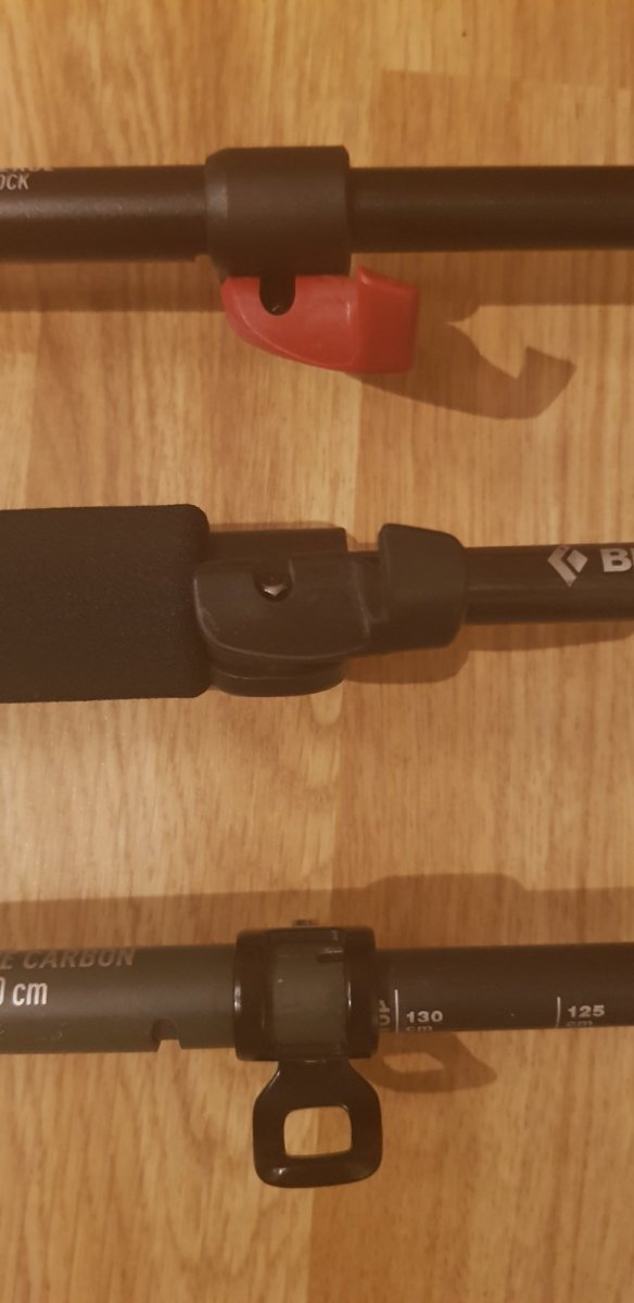 Terka Skrevet 6. februar 2021 Forfatter Skrevet 6. februar 2021 (endret) Stavene mine har FlickLock® (plastlås) og FlickLock® Pro (alu). Jeg har aldri opplevd at dem har åpna utilsiktet. Har måttet etterjustere FlickLock® Pro en gang før at staven ikke skal skli sammen med press ovenfra. Etter det har de funka 100% Jeg liker denne type lås mye bedre en de som ligger innvendig hvor man vrir rørene for å låse (De er ikke alltid like villige til å låse godt). BD har også et par andre varianter av "Pro"-låsen. Øverste stav er Traverse i aluminium (barnas), midterste er ukjent modell med aluminium i overrør og kompositt i nedre del, nederste er Alpine Carbon Cork (gåstav) med alle rør i karbon. (2 øverste har FlickLock®, nederste har FlickLock® Pro lås) Jeg har satt Åsnes reservetrinse på mine staver siden de bærer godt og flekser når man går/bøyer staven (tuppen på staven vippes ikke ut av snøen). Disse passer rett på BD staver. Lett å bytte trinser ved ulik bruk, tar dem av "gåstavene" ved barmarksbruk i fjellet. Ang. det å knekke staver så har jeg både knekt 2delt alustav i fall og karbonstav under hjelp av person opp fra grop under tre. Men det er lenge siden, opplever de jeg har nå som holdbare (men de har ikke vært igjennom større "smeller "da). Endret 6. februar 2021 av Terka 1