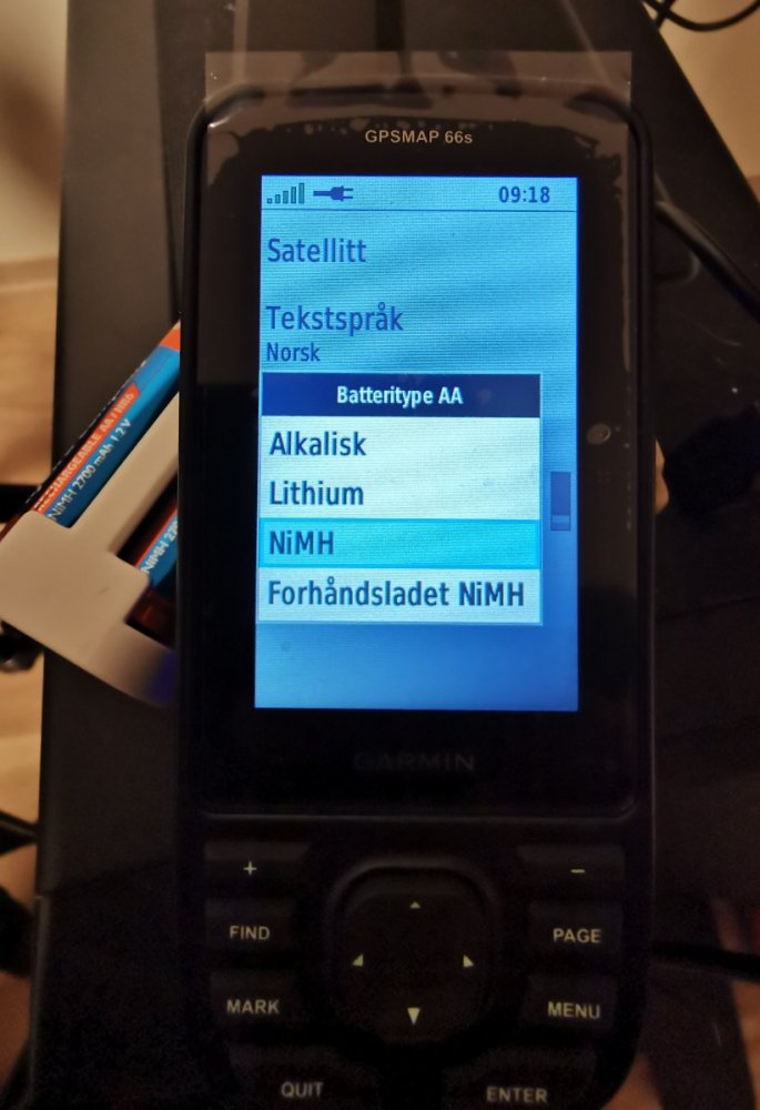 på andre garminenheter kan man velge om det er Alkalisk, Litium eller NiMh batterier som står i. Finnes det ett slikt valg i menyen din?
