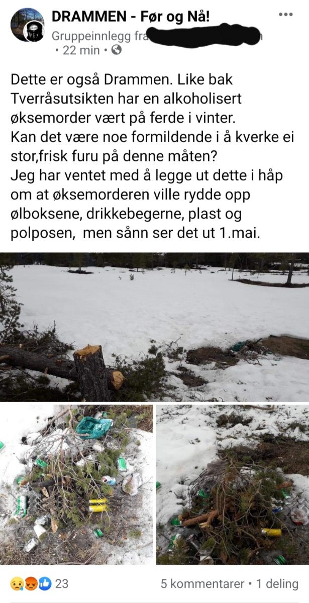 Litt kjapt ja, men på alle de siste turene jeg har vært på i nærmarka, så er det ungdoms"festing" i marka som legger fra seg mest spor hva gjelder søppel og hodeløs hogst av trær.