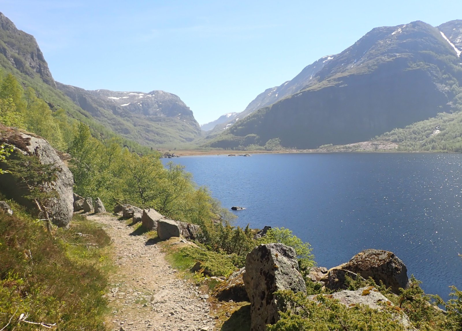 REJOHN Skrevet 31. mai 2021 Skrevet 31. mai 2021 En flott tur i en fantastisk natur. Norge er full av fantastiske plasser. Flotte daler, fine strender, fjell og vidder – og hei. Rogaland er godt forsynt med steder der naturen må gjøre inntrykk på folk. Prekestolen og Kjerragbolten er mest kjent, men det er svært mange andre plasser som også fortjener oppmerksomhet fra turistene. For egen del synes jeg – selvsagt – at Blåfjellenden er en usedvanlig flott plass, men det er andre steder jeg også kunne tenke meg å sende turister og turgåere. En god del plasser faktisk. Et slik sted er Viglesdalen. Inn av Nes i Årdal. En virkelig flott dal, og en spennende tur innover med fosser bruer og ikke minst den flotte drifteveien. Det er ikke så ofte jeg tar denne turen, men jeg kikker alltid etter Bergfruen (Saxifraga cotyledon) ett stykke opp i dalen. Den er nesten i seg selv en god grunn for turen. Det er nok ikke bare meg som har oppdaget denne perlen av en dal. Parkeringsplassen er utvidet, men det kan jo også henge sammen med at turistforeningen har bygget ny hytte med ganske mange plasser. For mer enn hundre år siden var svenske «slusker» i gang med å bygge veien. Omtrent som «Sjerpaer» gjør i dag. Flotte trapper og godt å gå. Enkelte plasser er det lagt opp murer for å få fram veien. Litt sørgelig at slitasje har gjort at en del av den fine veien er rast ut, og det er blitt en steinur nedover enkelte plasser. Fossene i dalen, er egentlig bare en skygge av seg selv. Lyse utbyggingen på 50 tallet reduserte vannføringen i elva ganske mye, og det er bare i snøsmeltingen at fossene buldrer skikkelig. Hiafossen er likevel verdt å få med seg. Mellom Hiavatnet og Viglesdalsvatnet er veien lagt over bru. Fint opplødd steinbru, med eller uten tre bukkene bruse. Et obligatorisk sted for foto. Veien i dalen oppover går mye på blankt berg eller inne i småskog. Over kanten mot Viglesdalsvatnet blir det med fjell. Bratt fjell, som ruver over veien. Innover mot Viglesdalen er det mange flotte motiver, og på denne turen ble det helst postkortmotiver, med gammel vei, blå himmel og blått vann – og fjell med snø. Kyrkesteinene omtrent midtveis langs vannet, er litt «skumle». Historien her er at det rodde folk inn mellom steinene og de ble aldre sett igjen. I dårlig vær – selvsagt. Innover går veien over et rassted. Her kommer det ned steiner omtrent hvert år, og det er folk oppe og ordner veien over dette stykket. Det er flatt inne i dalen, og det har vært drevet gård siden vikingtiden omtrent, men selv med driftevei var det ikke grunnlag for drift i vår tid. Stavanger turistforening har hatt hytte i Viglesdalen siden 1922. Stedet har vært inngangsporten til heia innover mot Nilsebu og heietraktene mot både nord og øst. Mange valgte å ta ned til Årdal som avslutning på turen i heia, eller de kom helt fra Haukeliseter. Båt fra Årdal til byen var tingen – biler og vei fantes ikke. Nå har Turistforeningen tre hytter der oppe, med plass til mange gjester. Siden det er paddeflatt, er det et populært sted å telte. Det var mange som kom i mot meg da jeg gikk oppover. Store og tunge sekker var vanlig. I det flotte været hadde de sikkert hatt det kjekt. Det står to timer på turen opp – og det samme ned, men 5 timer tilsammen. De to timene er «gamle» timer. Folk gikk fortere før, og da var to timer det vanlige folk brukte – med tung sekk. I dag er det ikke så mange som sliter seg opp, og ned bakker og lier, og i hvert fall ikke hver dag. Det går litt senere med «folk flest». Jeg fikk en skikkelig flott tur, både opp og ned. Mange andre hadde også tatt turen till Viglesdalen denne helga, og jeg traff mange som var på vei nedover og hadde følge at stykke med noen som også var på dagstur. En grei tur. 9