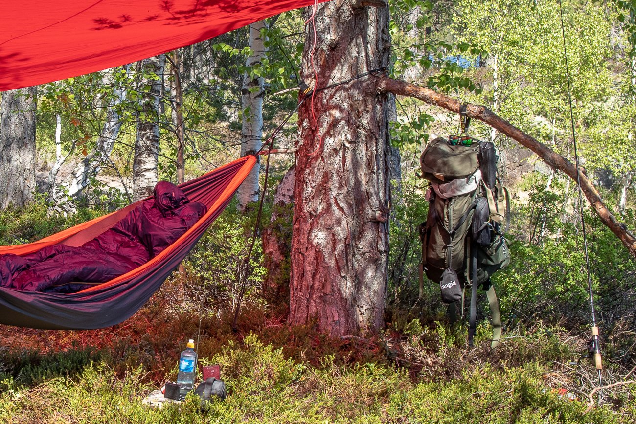 Oppbevaring av utstyr på tur med hengekøye
