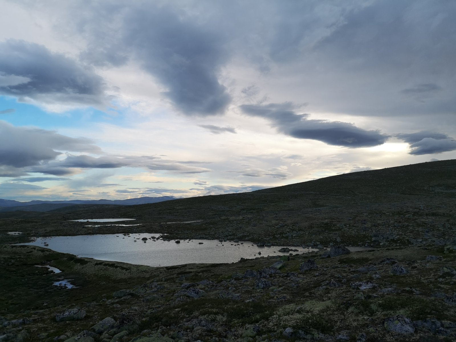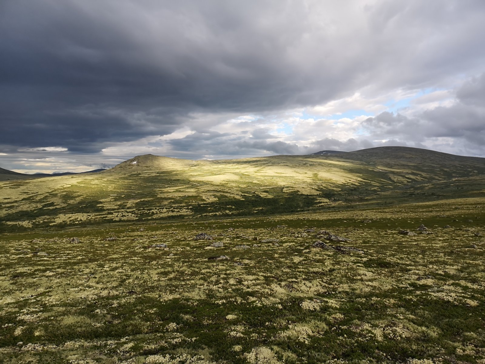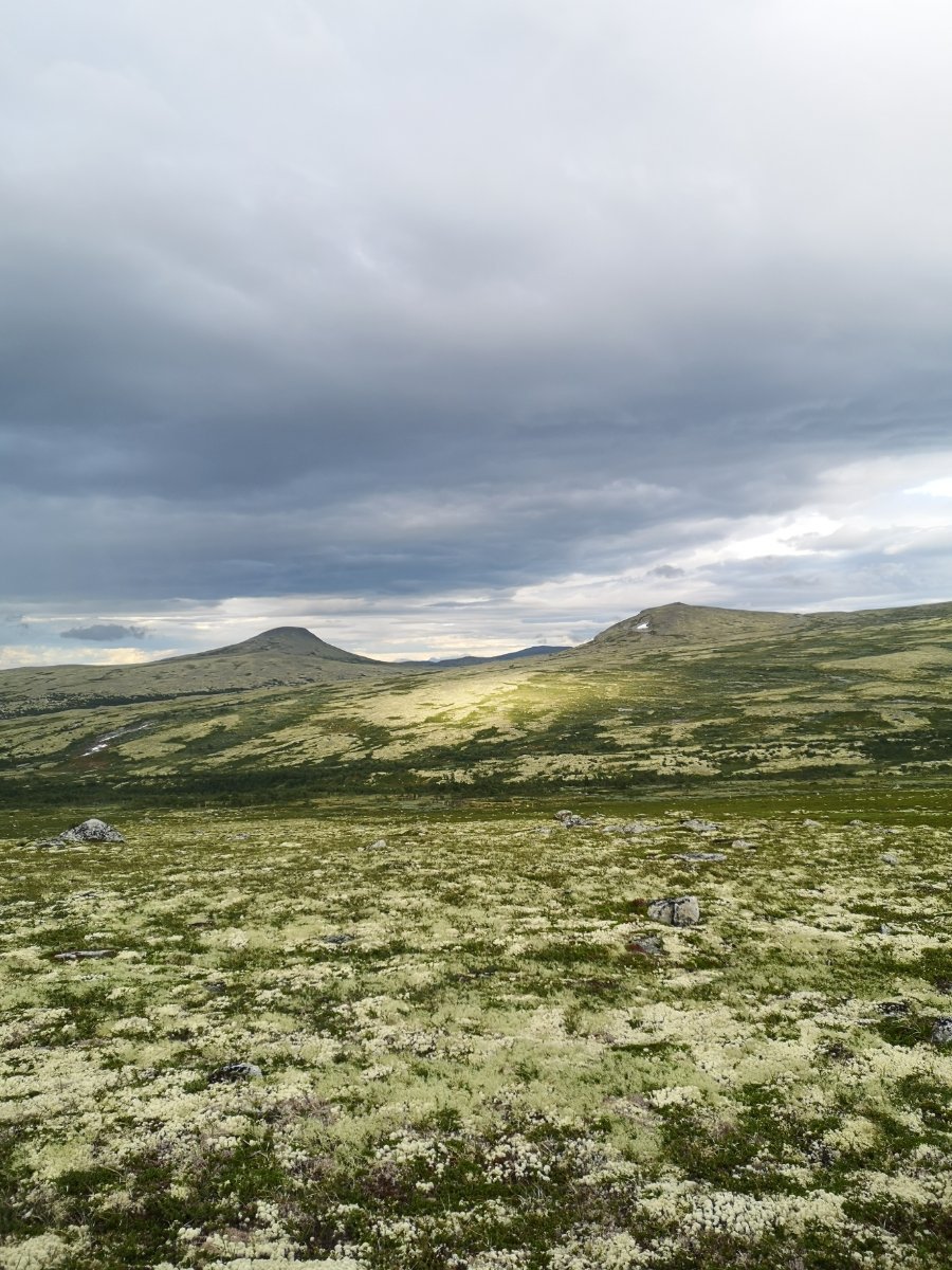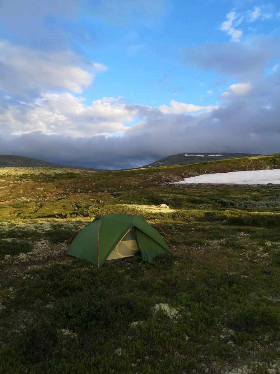 Populært innlegg +Bjellesau Skrevet 14. juli 2021 Populært innlegg Skrevet 14. juli 2021 7/7 klokka 19:30 starter jeg sammen med min eldste og yngste datter en liten tur i Alvdalfjellene. De er 18 og 13 år og har vært med på turer før, men ønsket seg rolige og korte dagsetapper denne gangen. Planen er 2 overnattinger i telt med start og retur fra Dølbekksætran. De første 2 kilometerne går langs grusvei. Været vet ikke helt hvilken vei det skal gå, med vekselvis sol og mørke, truende skyer. Det er et påfallende og karakteristisk grønt lav som ligger som et pledd over de myke bølgende fjellene. Etter en stund tar vi av grusveien og inn på T-merket sti, og holder øynene åpne etter leirplass. Det er en stor og god bekk i Kjelkedalen med snøfonner som fortsatt klorer seg fast. Her slår vi leir. Neste dag fortsetter vi sørvestover mot Korsberghytta og Kvislåtjønn. Været er lettere enn i går med frisk vind som holder alt av fluer og annen faenskap unna. Deilig landskap å vandre i. Humøret er i øvre register. Ved sørenden av Kvislåtjønn blir det lunsjpause. Bak nærmeste åskam kikker Storsølnkletten hodet opp. Herifra skal vi over på umerkede stier. Vi skal følge østsiden av Storgrønhøgda før vi skjærer over elva og opp til Aumskardtjønnan. I begynnelsen ser vi rester av utviskede røde T-er. Her har det nok gått en merket løype før. Stien blir etterhvert ganske utydelig. Og plutselig, uten å tenke noe særlig over det, har vi en god stund fulgt noen sauetråkk. Alt for langt oppe. Tror vi. Vi roter oss nedover. Det er mye blaut myr her som vi må gå rundt i store buer. Tilslutt må kompasset og kartet fram. Jeg skulle nok satt en kurs før vi gikk over på umerket sti. Min erfaring er at umerket sti på kartet kan være alt fra UTmerket sti til ingen sti. Det er utrolig som tiden flyr når man surrer og knoter. Nå tar vi ingen sjanser. Kompasskurs settes rett mot Aumskardtjønnan der teltet reises i en fei. Far koker middag, jentene graver latrine. Det blir potetmos og kjøttboller. Etter middag blir det litt kryssord etterfulgt av en episode med nedlastet havfrueserie. Da er jeg oppdatert på hva minstejenta følger med på. Torsdagsgodteri blir det også: Bounty og saltsild. Ahhhh. Og så sniker skumringen seg over øvre Aumskardtjønn. Neste dag setter jeg Kompasskurs ved avmarsj. Finleser kartet. Men oppe ved Rundsteinhøa er stien selvsagt veldig tydelig med varder hver femte meter. Deilig og lettgått terreng med fantastisk utsikt. Geiteryggen ser ut som en rykende vulkan i det fjerne: Før vi kommer ned til tregrensa tar vi lunsj med makaroni i ostesaus toppet med salami. Det er fortsatt godt drag i lufta som holder klegg og fluer unna. Så lenge det varer i alle fall. Nede i bjørkeskogen er det lunt. Og der er det bare å holde jevnt trav for å riste av seg bevingede gjester. Da vi kommer ned til Dølbekksætran blir det en kattevask på noen og et bad i bekken på andre. Alvdal vestfjell er et nytt bekjentskap for meg, men her frister det å komme tilbake for en lengre tur. Vis rapporten i Turkartet Vis større kart 11