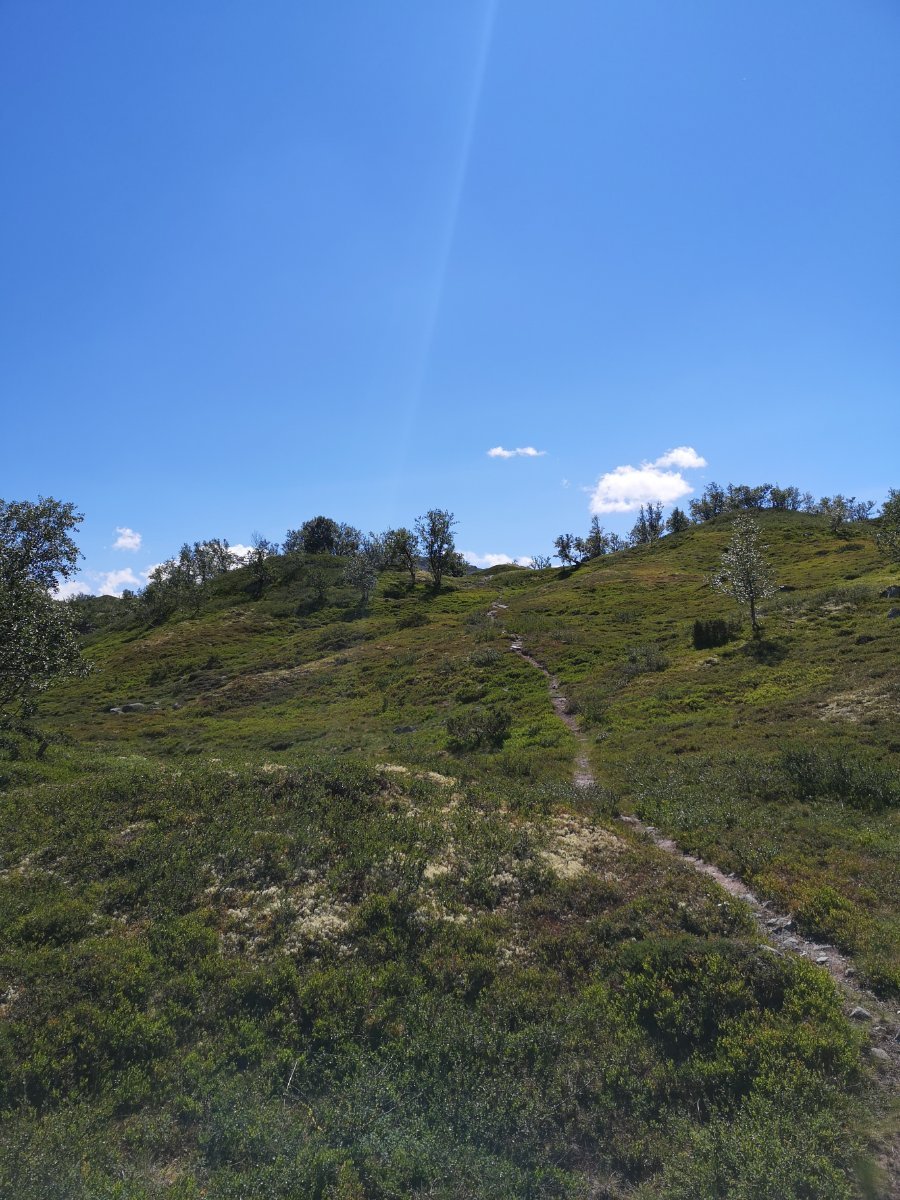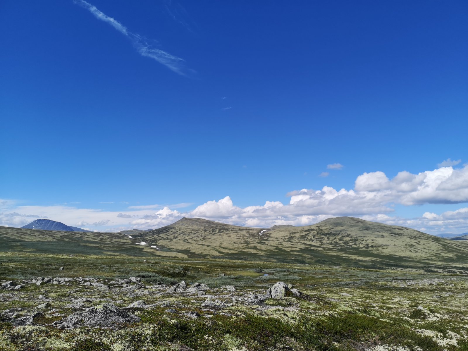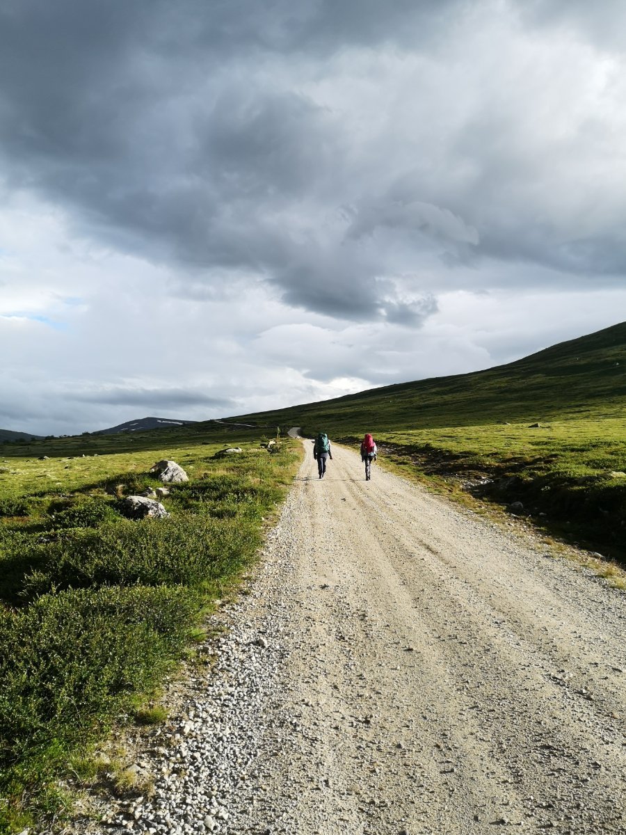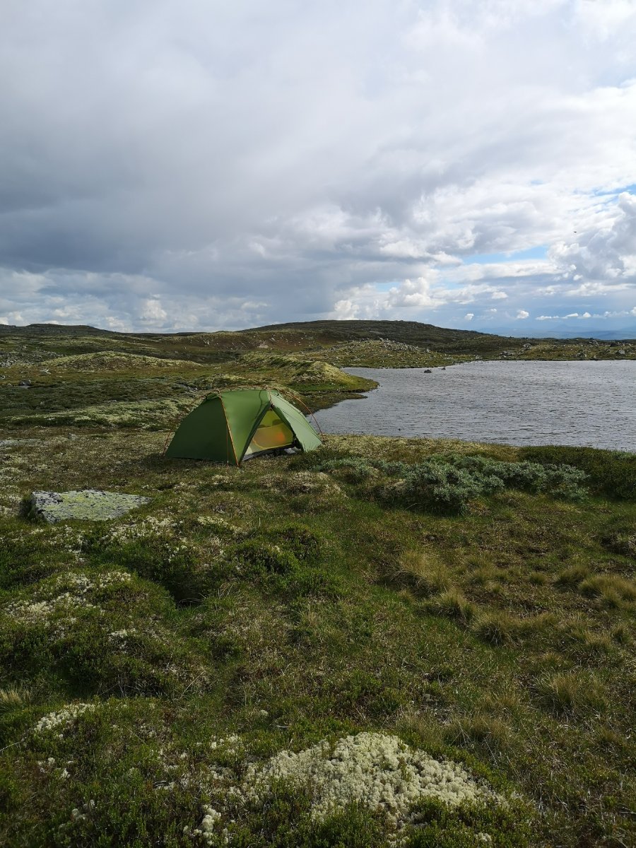Populært innlegg +Bjellesau Skrevet 14. juli 2021 Populært innlegg Skrevet 14. juli 2021 7/7 klokka 19:30 starter jeg sammen med min eldste og yngste datter en liten tur i Alvdalfjellene. De er 18 og 13 år og har vært med på turer før, men ønsket seg rolige og korte dagsetapper denne gangen. Planen er 2 overnattinger i telt med start og retur fra Dølbekksætran. De første 2 kilometerne går langs grusvei. Været vet ikke helt hvilken vei det skal gå, med vekselvis sol og mørke, truende skyer. Det er et påfallende og karakteristisk grønt lav som ligger som et pledd over de myke bølgende fjellene. Etter en stund tar vi av grusveien og inn på T-merket sti, og holder øynene åpne etter leirplass. Det er en stor og god bekk i Kjelkedalen med snøfonner som fortsatt klorer seg fast. Her slår vi leir. Neste dag fortsetter vi sørvestover mot Korsberghytta og Kvislåtjønn. Været er lettere enn i går med frisk vind som holder alt av fluer og annen faenskap unna. Deilig landskap å vandre i. Humøret er i øvre register. Ved sørenden av Kvislåtjønn blir det lunsjpause. Bak nærmeste åskam kikker Storsølnkletten hodet opp. Herifra skal vi over på umerkede stier. Vi skal følge østsiden av Storgrønhøgda før vi skjærer over elva og opp til Aumskardtjønnan. I begynnelsen ser vi rester av utviskede røde T-er. Her har det nok gått en merket løype før. Stien blir etterhvert ganske utydelig. Og plutselig, uten å tenke noe særlig over det, har vi en god stund fulgt noen sauetråkk. Alt for langt oppe. Tror vi. Vi roter oss nedover. Det er mye blaut myr her som vi må gå rundt i store buer. Tilslutt må kompasset og kartet fram. Jeg skulle nok satt en kurs før vi gikk over på umerket sti. Min erfaring er at umerket sti på kartet kan være alt fra UTmerket sti til ingen sti. Det er utrolig som tiden flyr når man surrer og knoter. Nå tar vi ingen sjanser. Kompasskurs settes rett mot Aumskardtjønnan der teltet reises i en fei. Far koker middag, jentene graver latrine. Det blir potetmos og kjøttboller. Etter middag blir det litt kryssord etterfulgt av en episode med nedlastet havfrueserie. Da er jeg oppdatert på hva minstejenta følger med på. Torsdagsgodteri blir det også: Bounty og saltsild. Ahhhh. Og så sniker skumringen seg over øvre Aumskardtjønn. Neste dag setter jeg Kompasskurs ved avmarsj. Finleser kartet. Men oppe ved Rundsteinhøa er stien selvsagt veldig tydelig med varder hver femte meter. Deilig og lettgått terreng med fantastisk utsikt. Geiteryggen ser ut som en rykende vulkan i det fjerne: Før vi kommer ned til tregrensa tar vi lunsj med makaroni i ostesaus toppet med salami. Det er fortsatt godt drag i lufta som holder klegg og fluer unna. Så lenge det varer i alle fall. Nede i bjørkeskogen er det lunt. Og der er det bare å holde jevnt trav for å riste av seg bevingede gjester. Da vi kommer ned til Dølbekksætran blir det en kattevask på noen og et bad i bekken på andre. Alvdal vestfjell er et nytt bekjentskap for meg, men her frister det å komme tilbake for en lengre tur. Vis rapporten i Turkartet Vis større kart 11