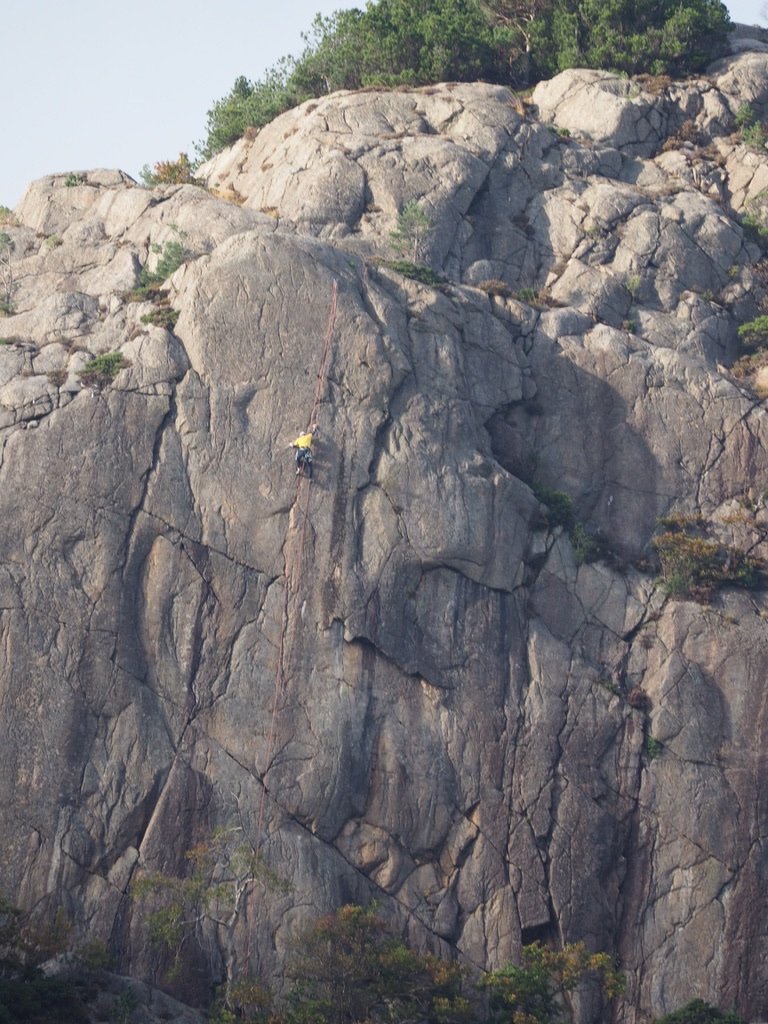 Man vet ikke alltid kvaliteten eller verdien av ett bilde med en gang.Ett knipsebilde kan etterpå vise seg være ett unikt bilde om det er tatt med en telefon eller ett kamera. Jeg ser ofte etter en historie når jeg tar ett bilde. Og har forlengst oppdaget at ett kamera gir bedre muligheter enn en telefon.Den eneste fordelen med telefonen er at den alltid er der.Det er ikke alltid jeg har ett kamera med meg.Men er jeg på tur, er kameraet også med. Som i går da meg og kona tok oss en tur opp til Dalevatn utenfor Sandnes og oppdaget en klatrer på vei opp Ramnafjell. Mobilen hadde ikke gitt meg mye å ta med hjem her.