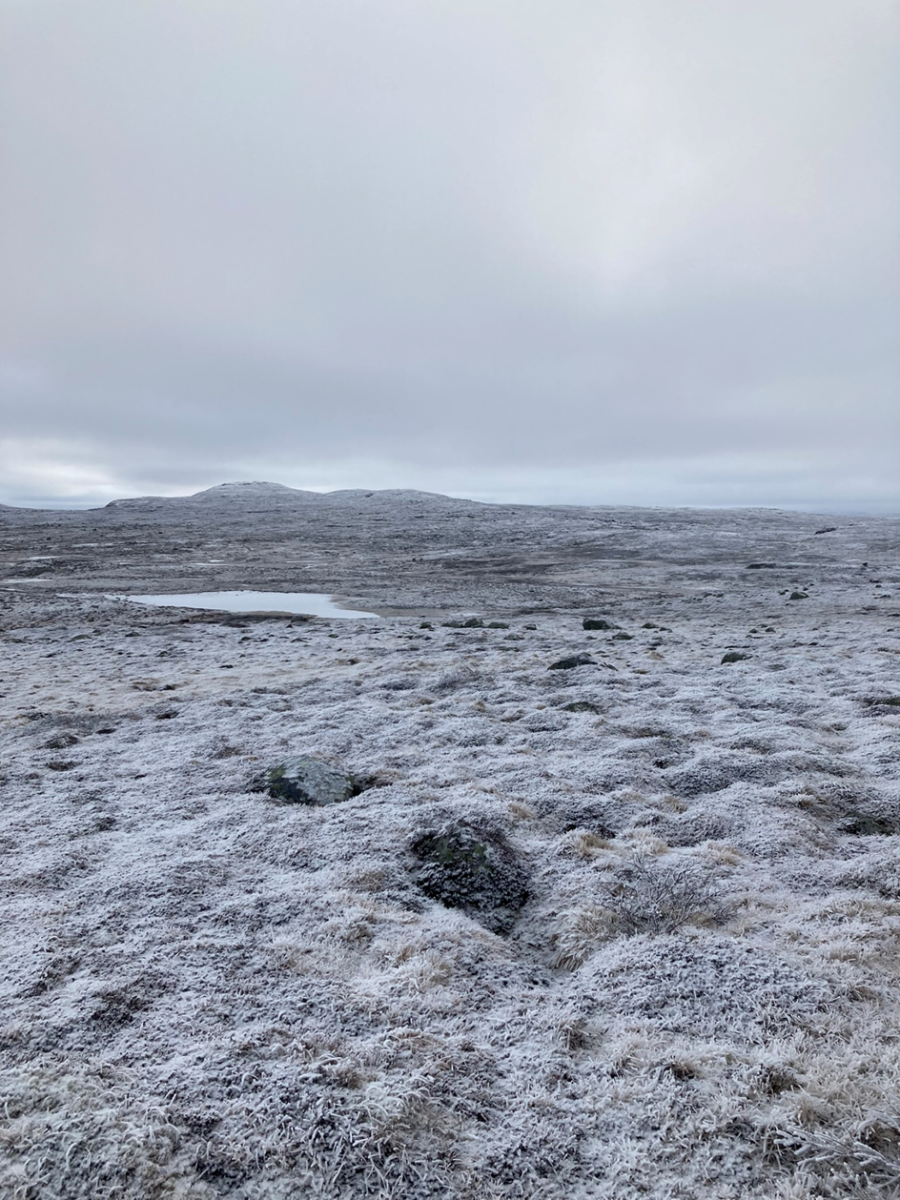 Litt opp i fjellskrenten. Kun spor etter rådyr så langt..