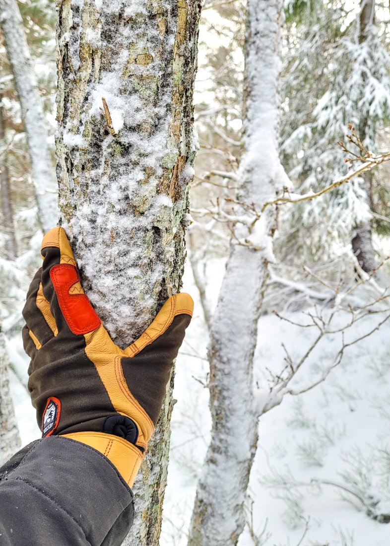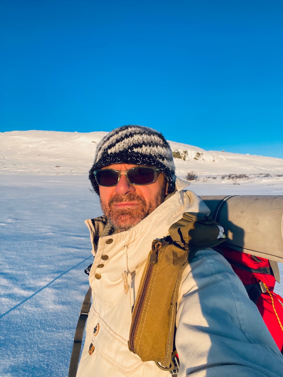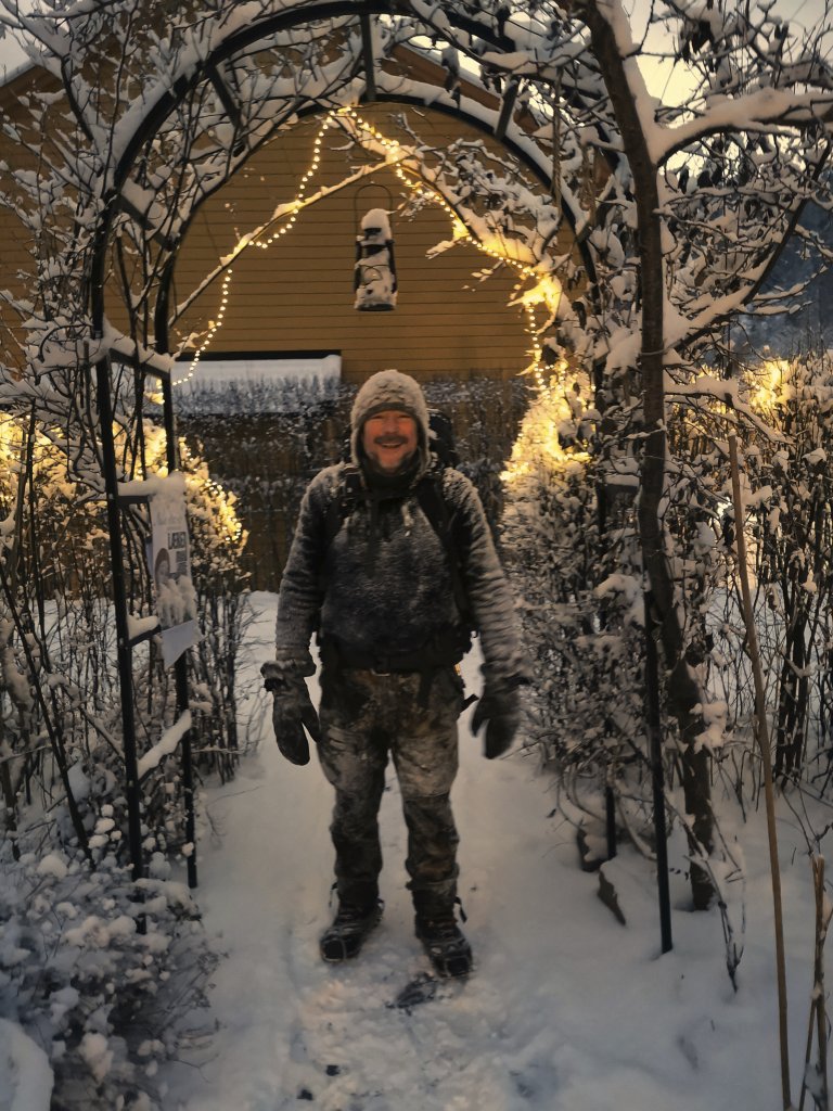 Etter bålkosen blir det off pist bushing i ulendt og bratt terreng med skog full av snøtunge trær. Da ser man gjerne sånn ut når man kommer hjem:
