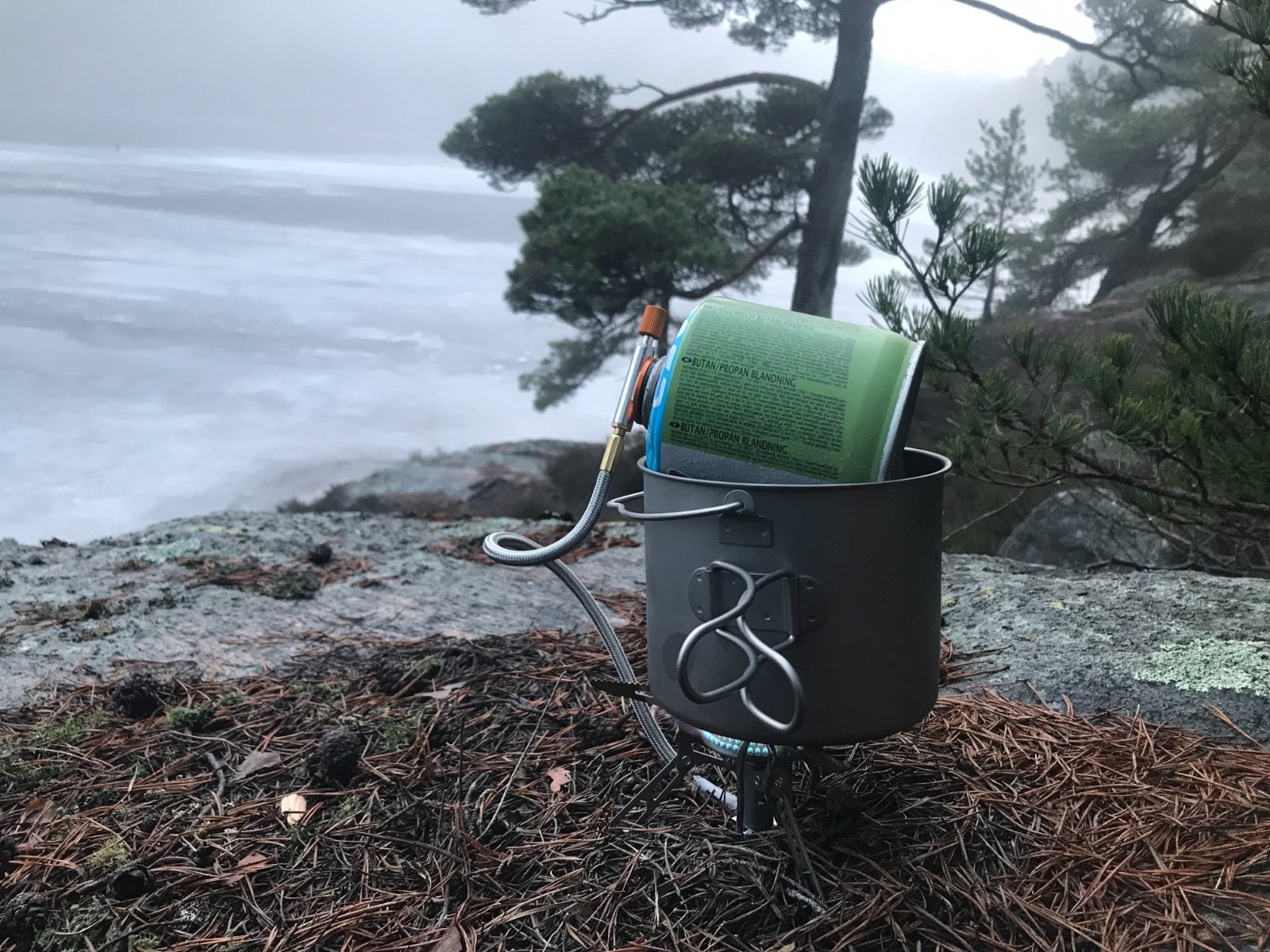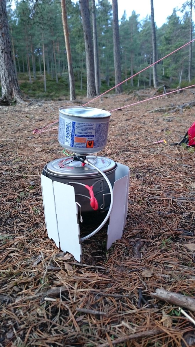 Om målet var å pakke lett, lite og med begrenset kokkelering så ville jeg nok brukt den toppmonterte gassbrenneren min (Primus Firestick Ti) istedenfor.