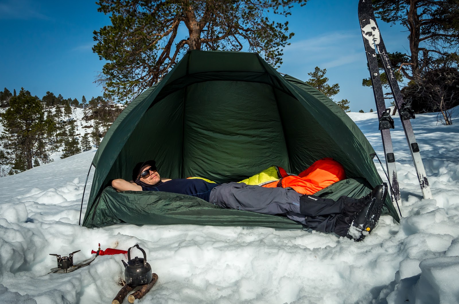 Anders Eriksen Skrevet 1. mai 2018 Skrevet 1. mai 2018 Endelig vår! Det har virkelig vært noen flotte dager her på Sunnmøre den siste tiden, og jeg kan merke på hele kroppen at sommeren begynner å nærme seg. På sånne dager er det ikke vanskelig å motivere seg for å dra på tur. Siden jeg ikke nådde helt opp til Svartevatnet på marsturen, bestemte jeg like så godt å prøve igjen denne måneden. Siden det var meldt sommertemperaturer kunne jeg droppe den gedigne vinterposen, og heller pakke med en lettere dunpose. Dermed var sekken allerede to kg lettere. Men det beste av alt, den digre, tunge og ubehagelige 130 liters sekken kunne droppes til fordel for en 65 liters sekk. Man kan bli rørt av mindre. Å gå fra tungt vinteroppakning til lettere sommerutstyr er bare en herlig følelse.Chillaxing på Emblemsfjellet.Om selve turen er det egentlig ikke så mye å si. Været var flott, og det var ingen problem å komme seg helt opp til Svartevatnet på den våte, men kompakte snøen. Jeg gravde ei svær bålgrop som aldri ble tatt i bruk. Jeg orket rett og slett ikke å samle sammen brensel, primusen gjorde jobben. Det som ble et problem, var at jeg fikk to solide gnagsår som egentlig gjorde turen rimelig ubehagelig. Men det er aldri så galt at det ikke er godt for noe. Når jeg kom hjem og var rimelig mørbanka på føttene, kunne jeg kjøre på med en egenkomponert spabehandling. Denne bestod av fotbad i grønnsåpevann, kald IPA og fotballkamp. Etter ei sånn luksusbehandling forsvant gnagsårene sporenstreks, det skal jeg love deg.Flotte forhold på vei oppover.Enkel og grei krypinn.Greit å våkne til dette.Utsikt mot Sunnmørsalpene.Leirplassen på avstand.Svartevatnet. Isbor hadde jeg selvsagt ikke med. Tabbe.Det er vår på fjellet. Da var jaggu aprilturen også i boks. Nå håper jeg at maituren kan bli på barmark, med fisking på isfritt fjellvatn. Har en liten plan om hvor dette kan bli, men ingenting er avgjort enda. Nå skal beina få kvile seg noen dager før jeg tar på fjellskoa igjen, og det spørs om det ikke må bli noen spabehandlinger (ala Eriksen) til, før jeg er heeeeeelt klar. Skål!Se hele artikkelen