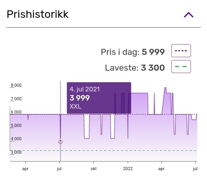 +ingen87 Skrevet 6. juli 2022 Skrevet 6. juli 2022 KjartanE skrev (10 timer siden): Digresjon: Ser mange som selger ubrukte telt de har kjøpt «billig» på tilbud, de havner på Finn et par dager etter at XXL er tilbake til fullpris. I fjor sommer var jeg på utkikk etter Helsport Ringstind. Da lå det ingen på Finn.no. Plutselig dukket 1-mannutgaven opp på XXL-reward-søndagstilbud til 3999,-, som jeg tilfeldigvis ramla over (nyhetsbrev). Uka etter lå det opptil flere ute til 5000,-. Tydelig at noen spekulerer i å kjøpe utstyr på tilbud, for så å selge mellom tilbudspris og veilpris.