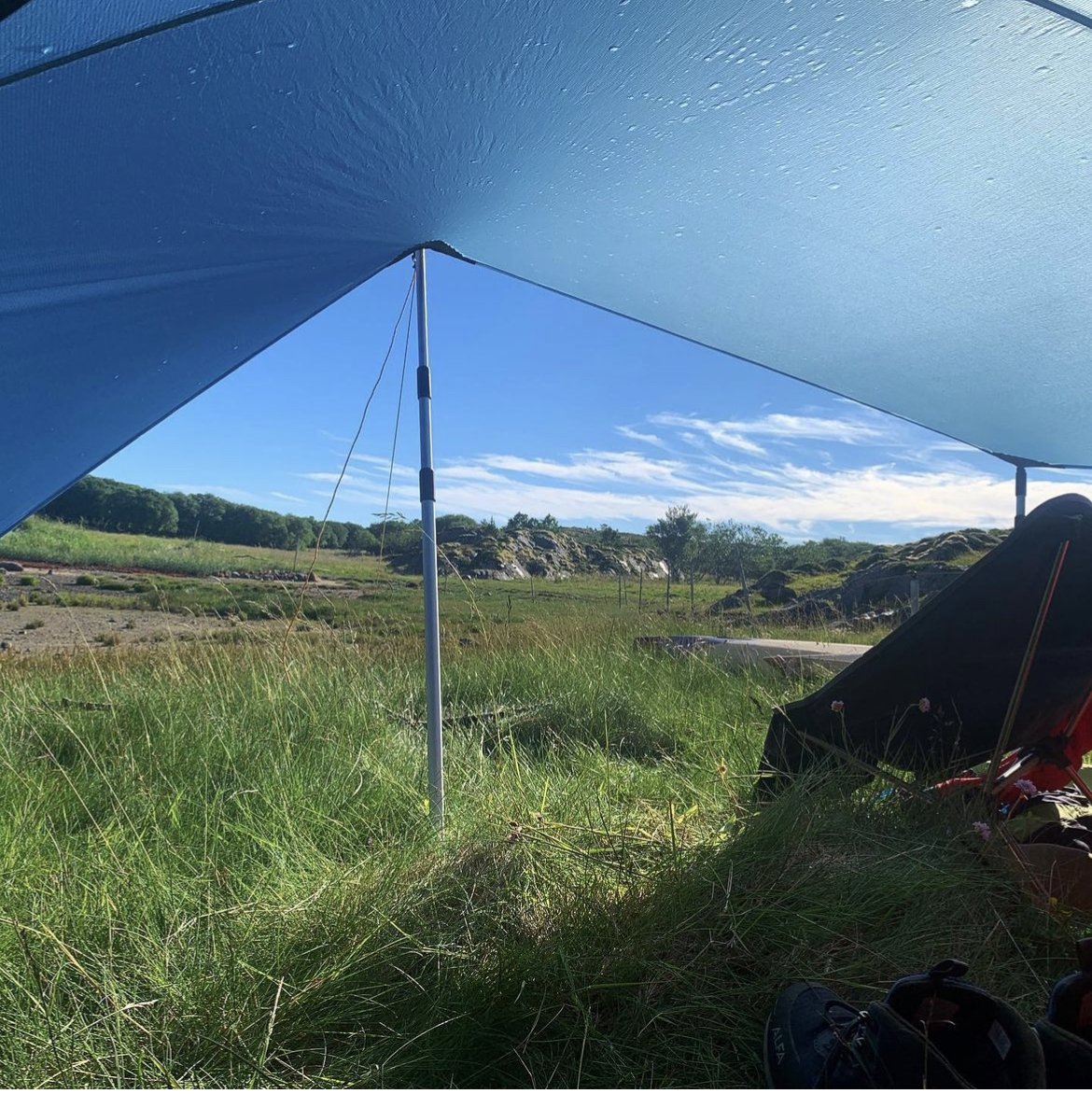 På soloturer vil jeg helt slippe tarp og heller ha et romslig telt. De fleste langturene er også over tregrensa, så begrenset med muligheter for oppsetting. På turer med packraft brukes årene til oppsett hvis tarpen er med, og hvis vi er +2 på tur er tarpen gull som sosial arena.