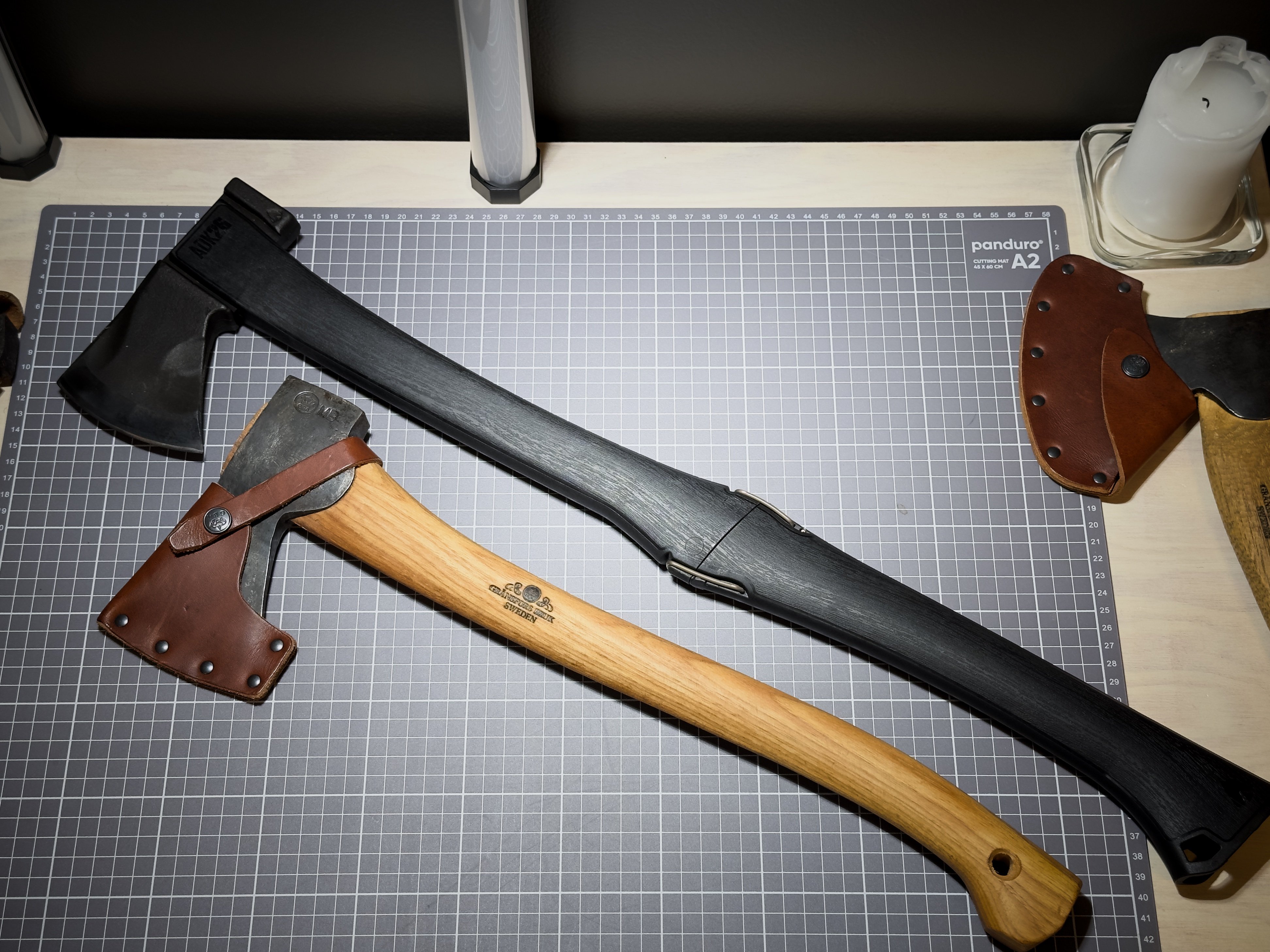+tshansen Skrevet 3. februar 2024 Skrevet 3. februar 2024 https://agawagear.com/products/adk26 Jeg lar meg lett imponere av nytenkende design og gode løsninger. Men noen ganger er ofte tanken bedre enn hva man får i praksis. Der finnes riktig nok noen unntak! Den nyeste øksen fra Agawa Gear i Canada er et perfekt eksempel på dette. En typisk Hatchet som man enkelt gjør om til en god skogsøks. Den tåler hysteriske mengder juling og setter kanskje den nye standarden for hva jeg vil kalle en god alt i ett øks. Øksen kommer i et futteral som minner meg veldig om cordura som jeg ofte ser i motorsykkel klær. Begge deler passer godt inn i futteralet og holder de to bitene på plass når du legger øksen i sekken eller fester den på utsiden. Skinn beskytteren er av høy kvalitet, men føles noe trang, å jeg er redd jeg skal den opp hver gang jeg presser den på. Mulig dette går seg til over tid, eller at jeg er for godt vant med Gränsfors Bruks øksene mine. Den kommer skarp og god rett fra butikk. Som Hatchet, minner den mer om carving axe fra Gränsfors. Både i størrelse, vekt og balanse. Noe jeg virkelig liker. Øksen er også felt inn i selve stålet, som gjør at den funger veldig godt til å kløyve ved. Når jeg klipser på det ekstra skaftet blir den på størrelse med Skogsøksen til Gränsfors. I bildet ser du den sammenlignet med lille skogsøksen. (en av mine soleklare favoritter) Jeg må si at jeg er veldig imponert over første inntrykket av denne øksen. Jeg har jo som sikkert mange andre, litt betenkeligheter med de klipsene som holder de to skaftene sammen, men x antall filmer på YouTube har gitt meg en litt mer betryggende følelse. Jeg blir nok å ha med meg denne på alt av turer framover å se hvordan den fungerer i praksis oppimot de mange andre øksene jeg har, og om den faktisk kan erstatte to av mine mest bruke økser så langt. 3