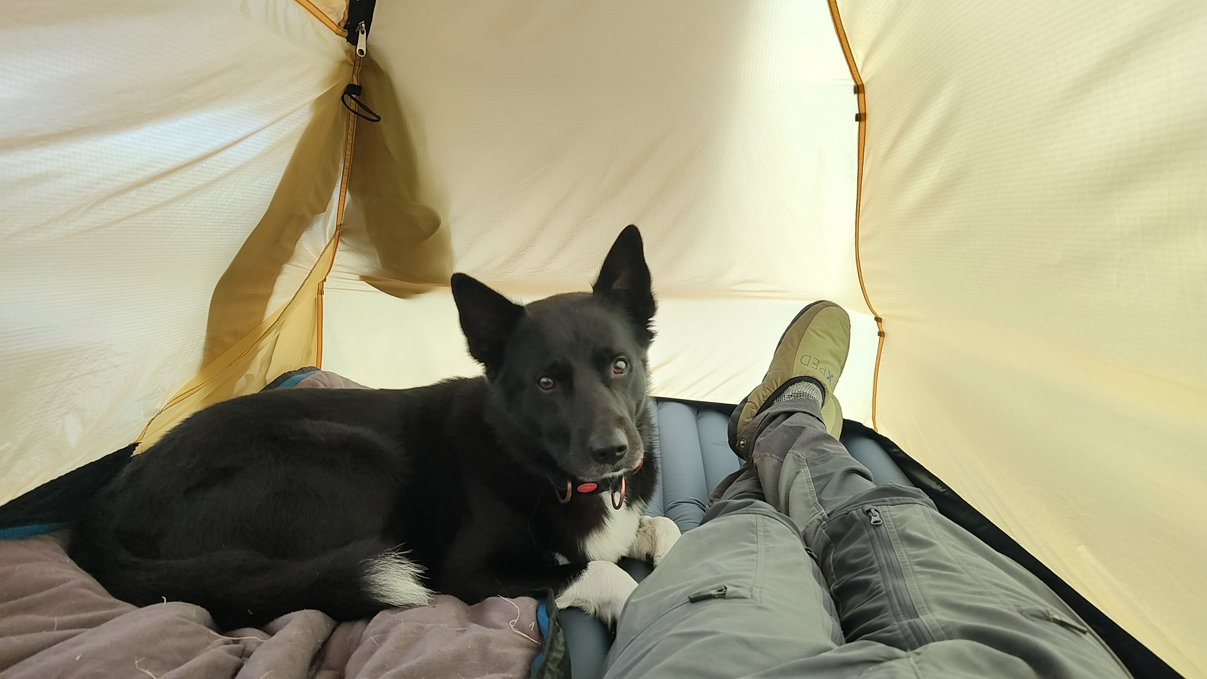 uteturen Skrevet 23. april 2025 Skrevet 23. april 2025 (endret) fjellræv skrev (1 time siden): Har du flere bilder av Unna med hunder? Er litt spent på plassen egentlig. Hvor oppbevarer du kløven f. eks? Om du går med kløv såklart. Koda på bildene er 25kg og har det fint i Unnae sammen med meg. Jeg bruker stort sett medium underlag, så jeg bruker da omtrent halve bredden av teltet. Det er litt knot når det regner, men han bruker stort sett regndekken på de dagene, så har ikke hatt totalt gjennomvåt pose selv enda. Bildene er forøvrig fra regnværstur. Jeg lar som oftest kløven ligge ute i det lille forteltet man har. Regner det skikkelig så slår jeg stort sett opp tarp over teltet og foran inngangen og da har man god plass til det meste. Endret 23. april 2025 av uteturen Lagt til tekst. 2
